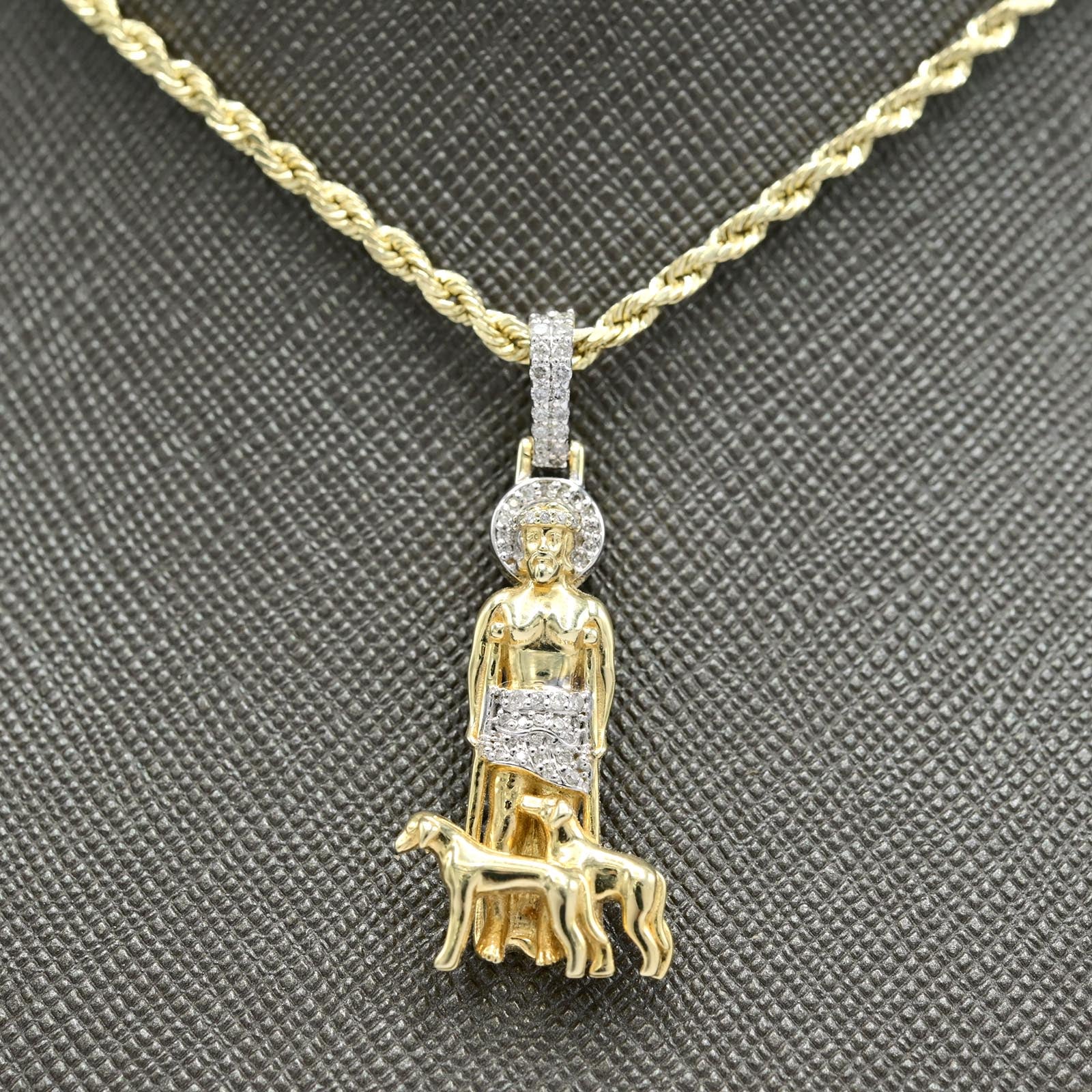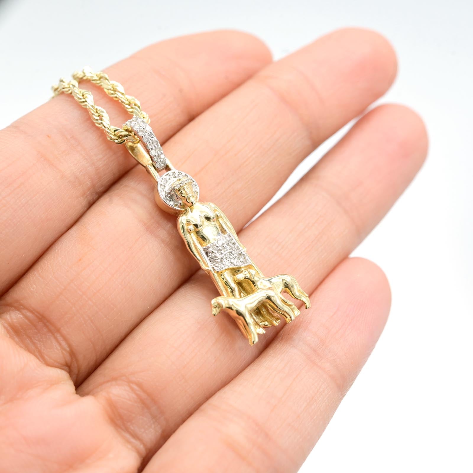 10k Yellow Gold 0.18 CTW Diamond Jesus w/ Two Goats Pendant 4.6g Religious Charm.