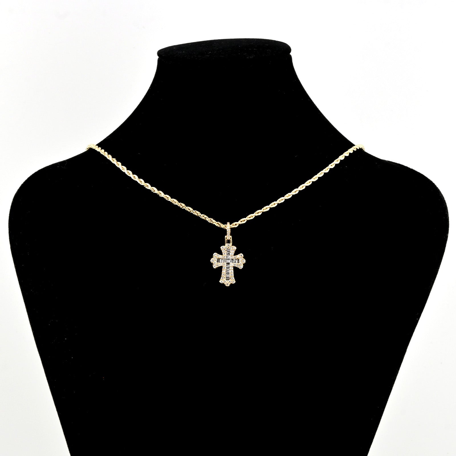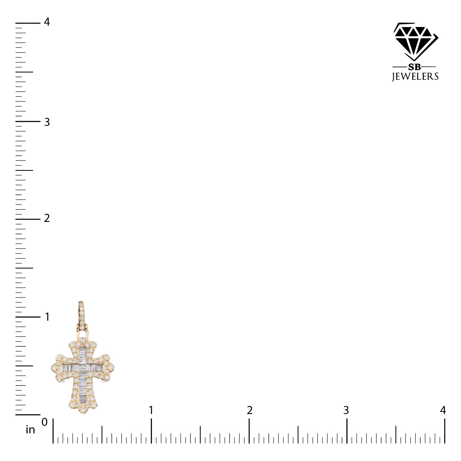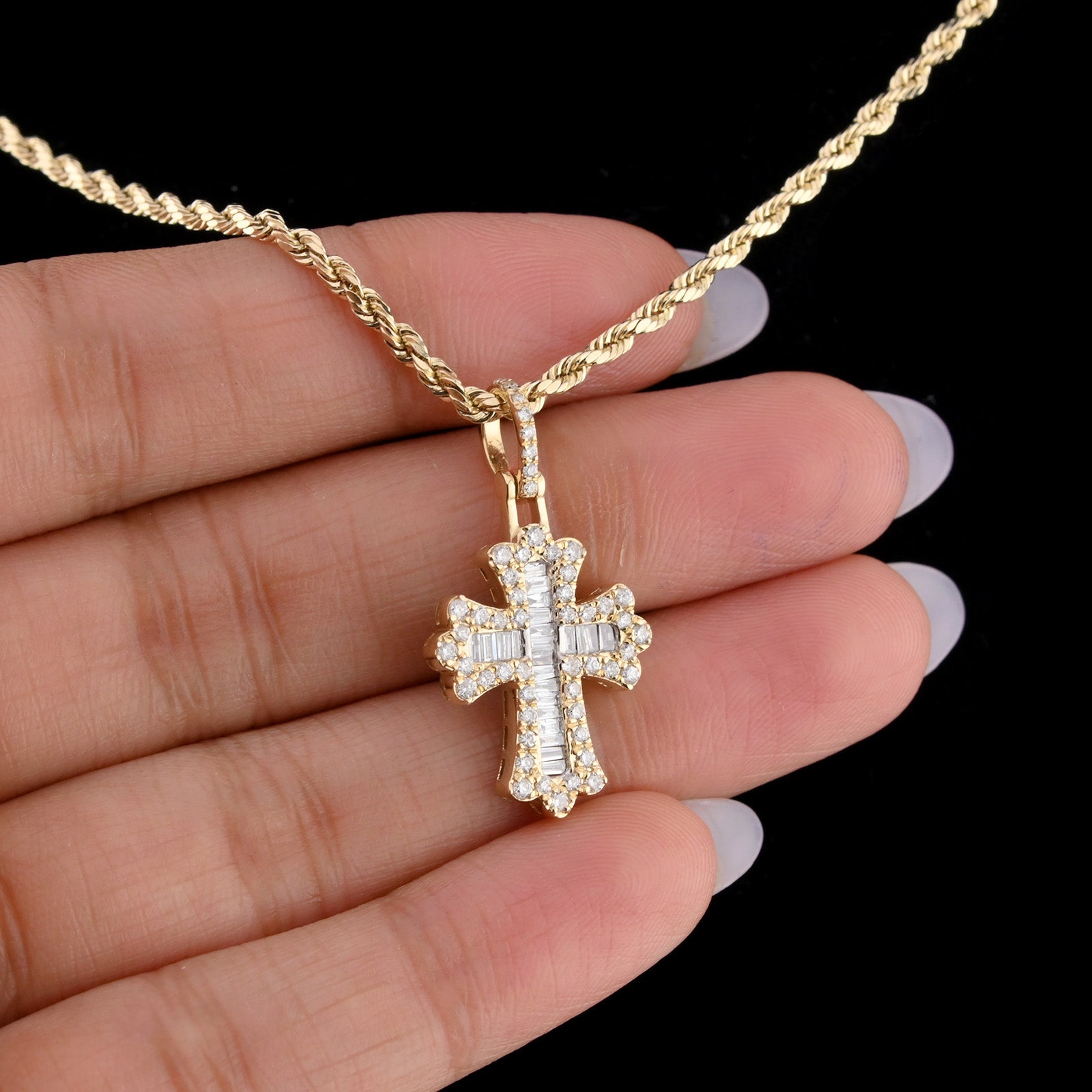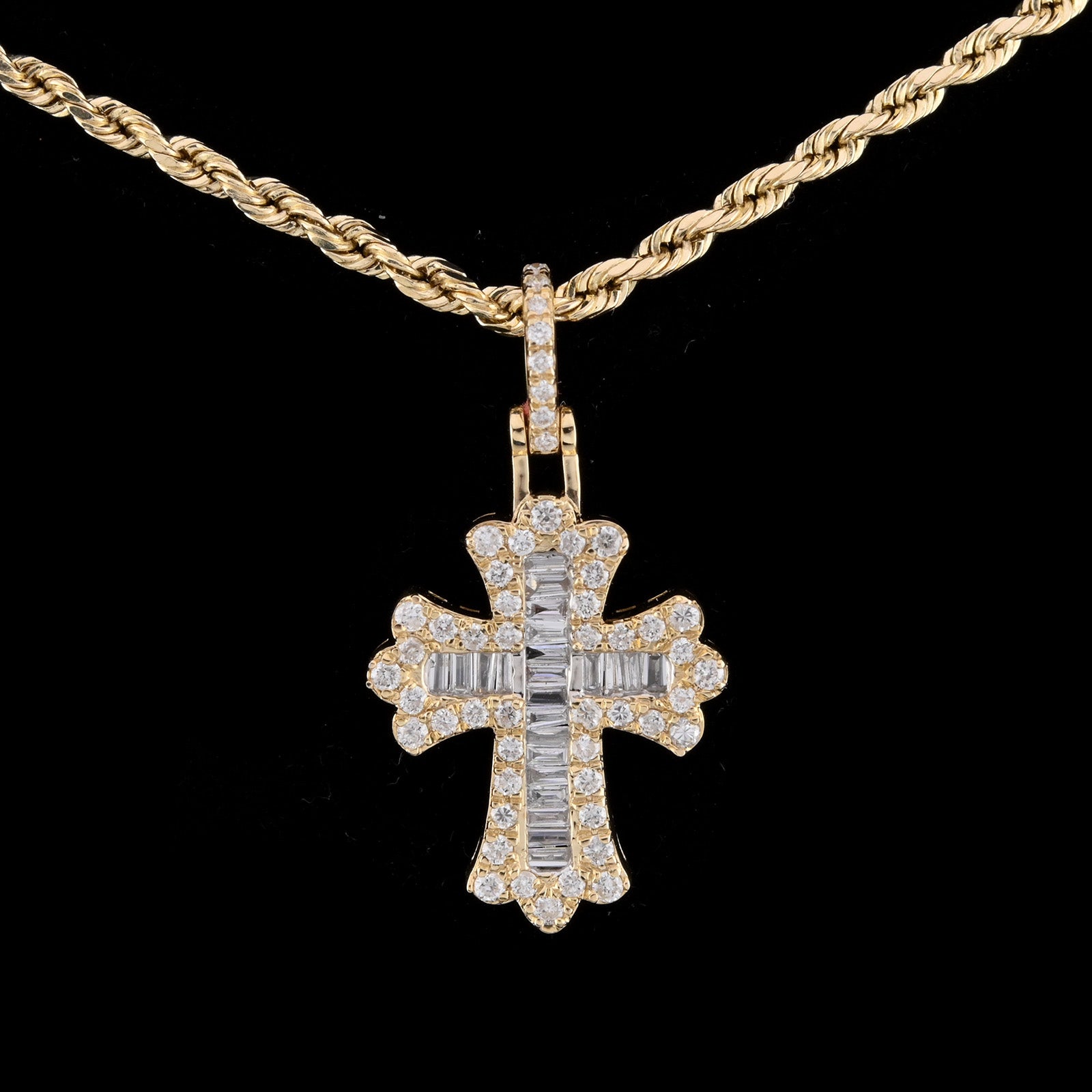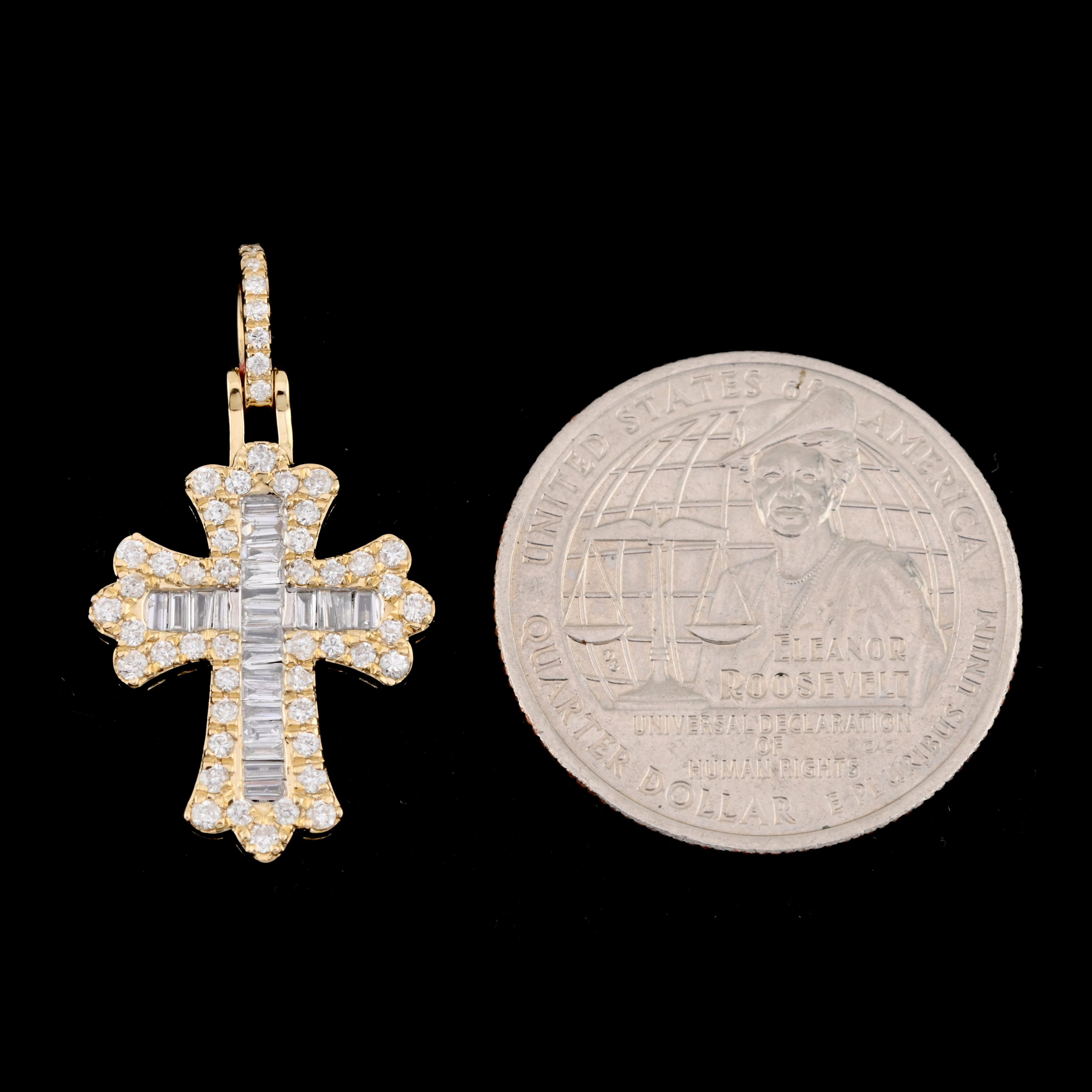 10k Yellow Gold 0.61CT Round/Baguette Diamond Cross Pendant 2.2g Religious Charm.