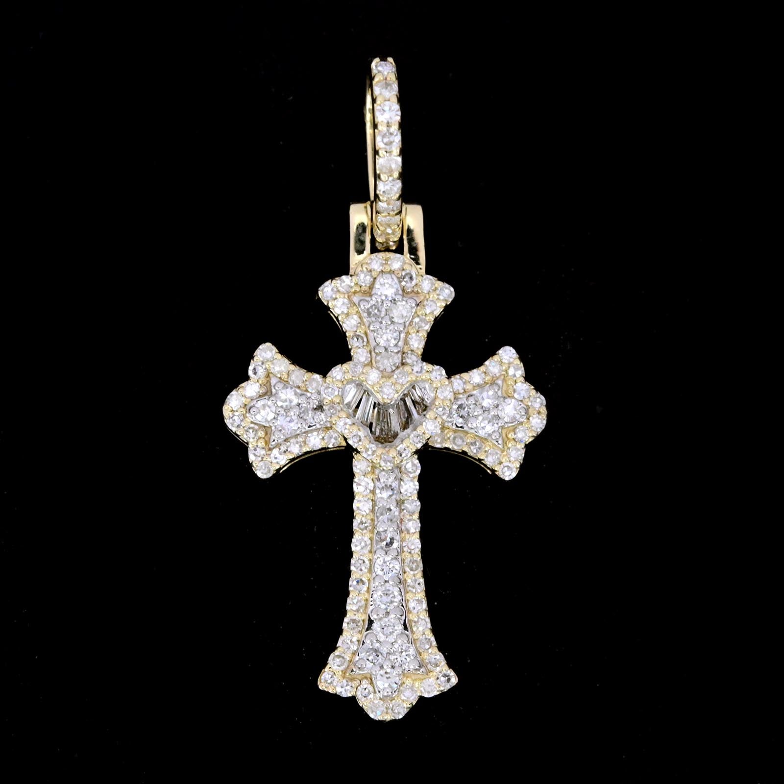 10k Yellow Gold 0.75CT Baguette/Round Diamond Cross Heart Pendant 3.4g Men Charm.