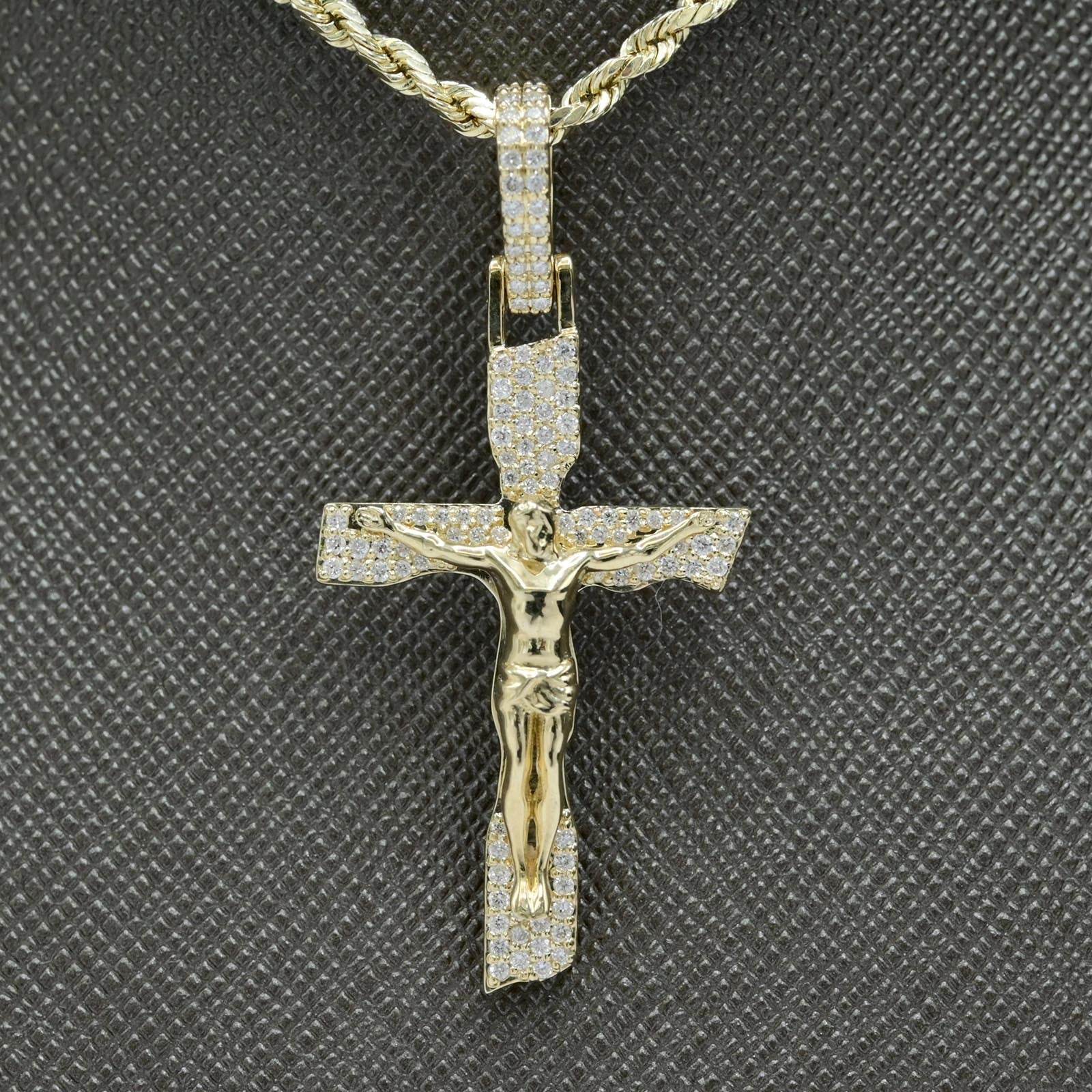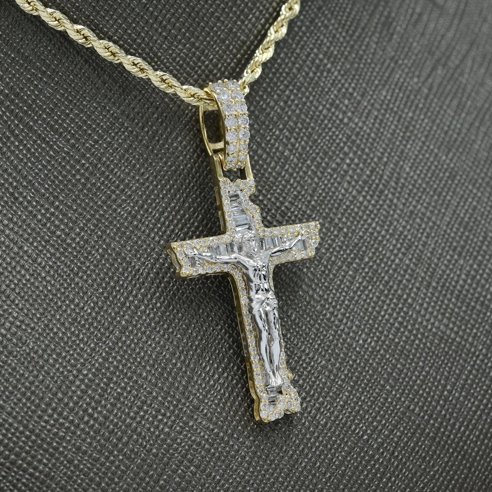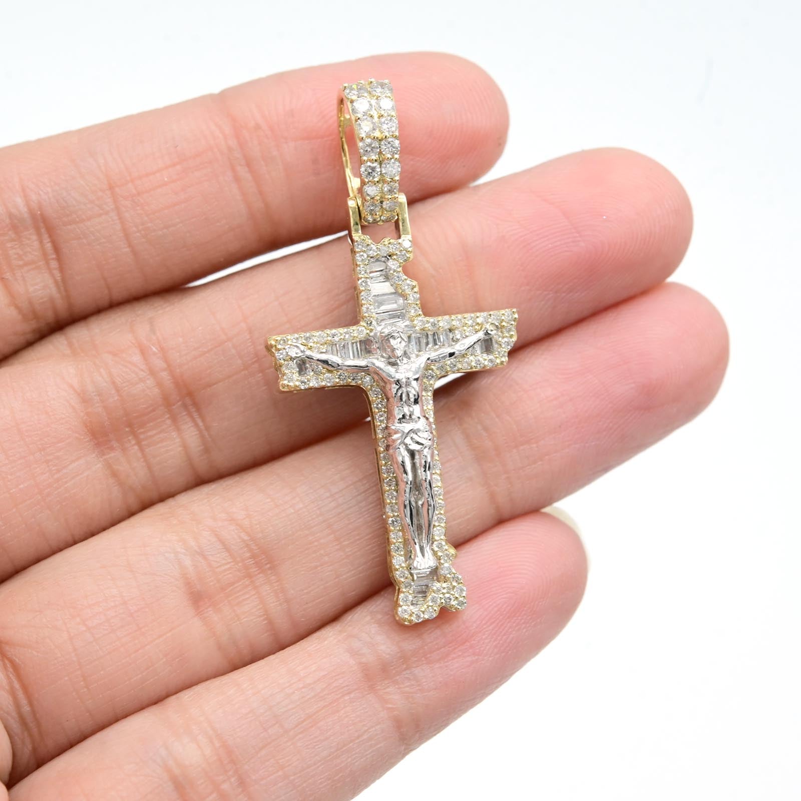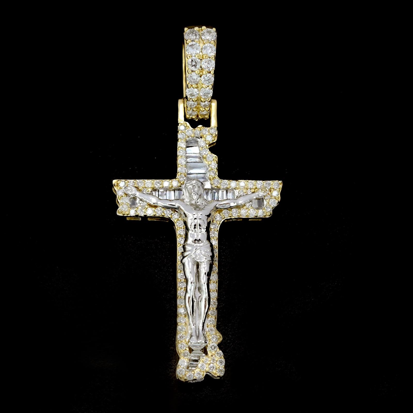 10k TwoTone Gold 0.75CT Round/Baguette Diamond Cross w/ Jesus Pendant 4.8g Charm.