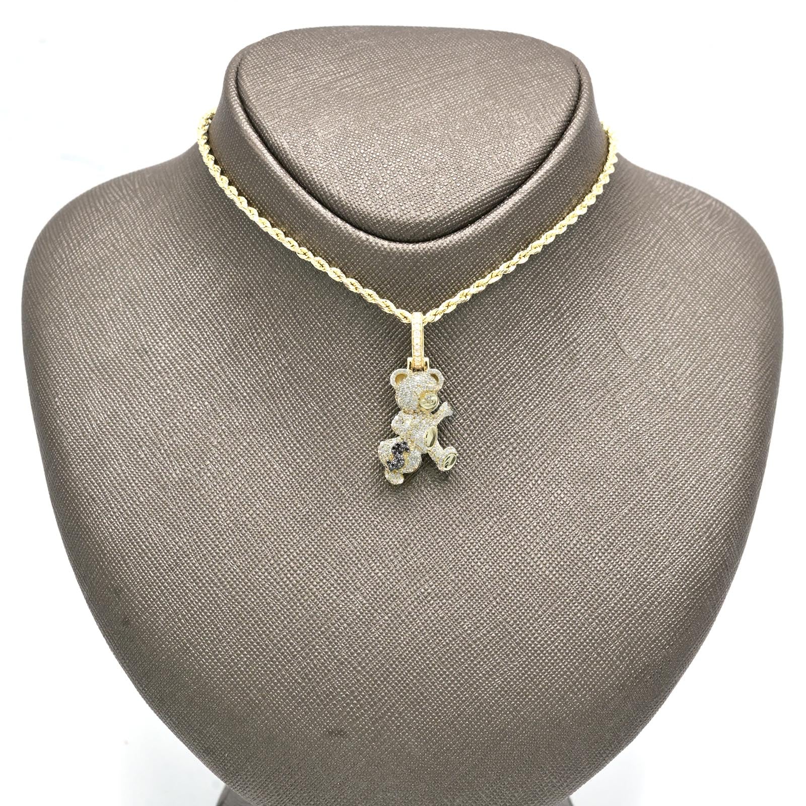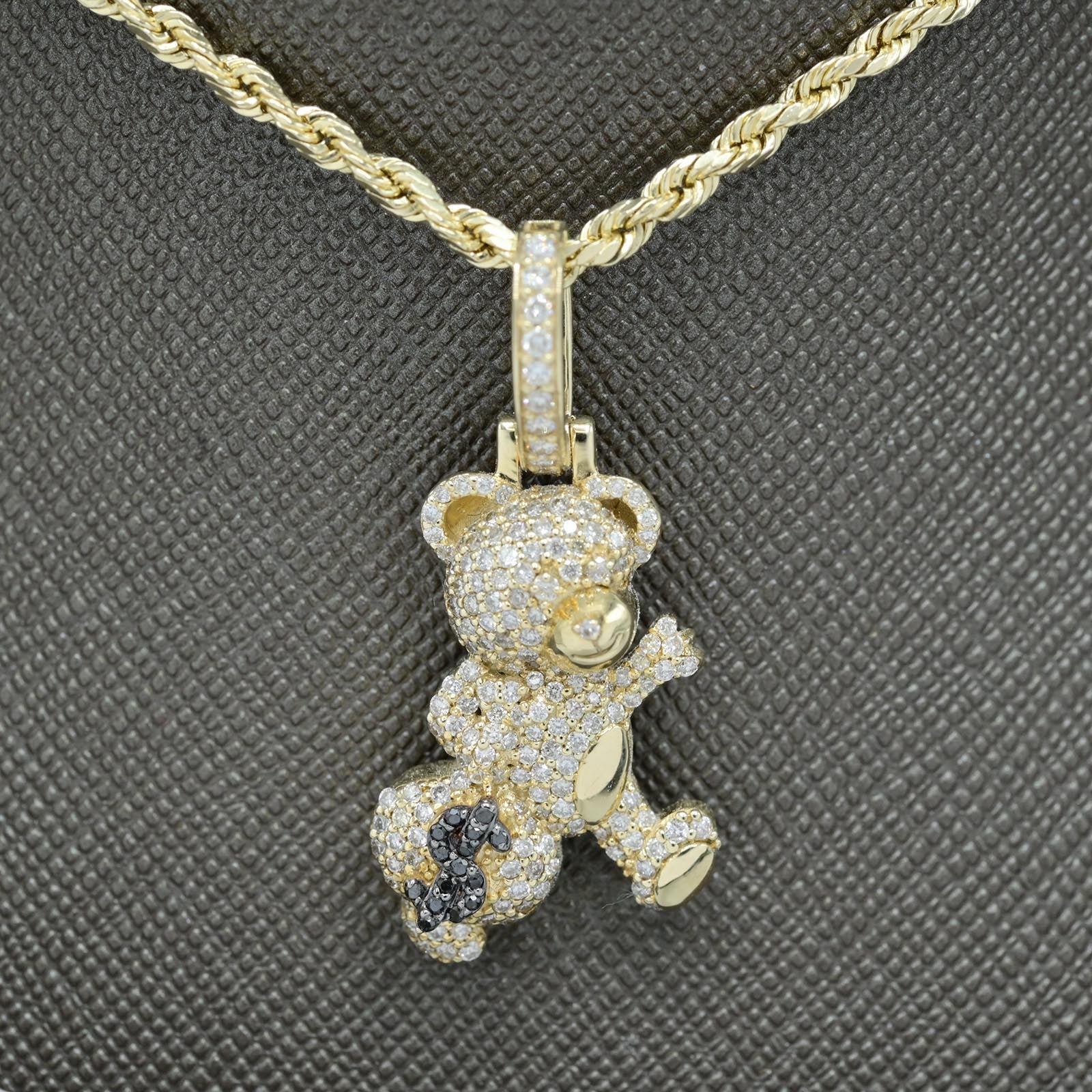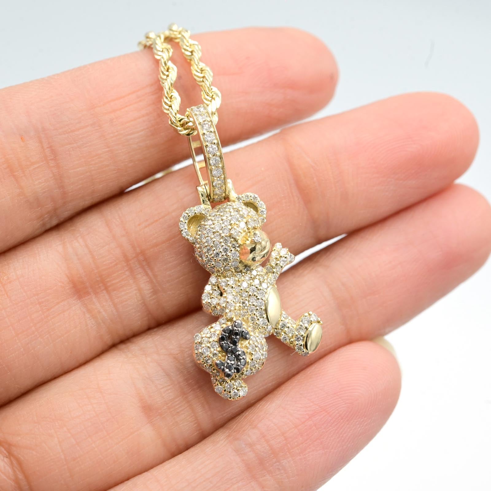 10k Yellow Gold 0.8CTW Diamond Teddy Bear w/ Dollar Money Bag Pendant 4.3g Charm.