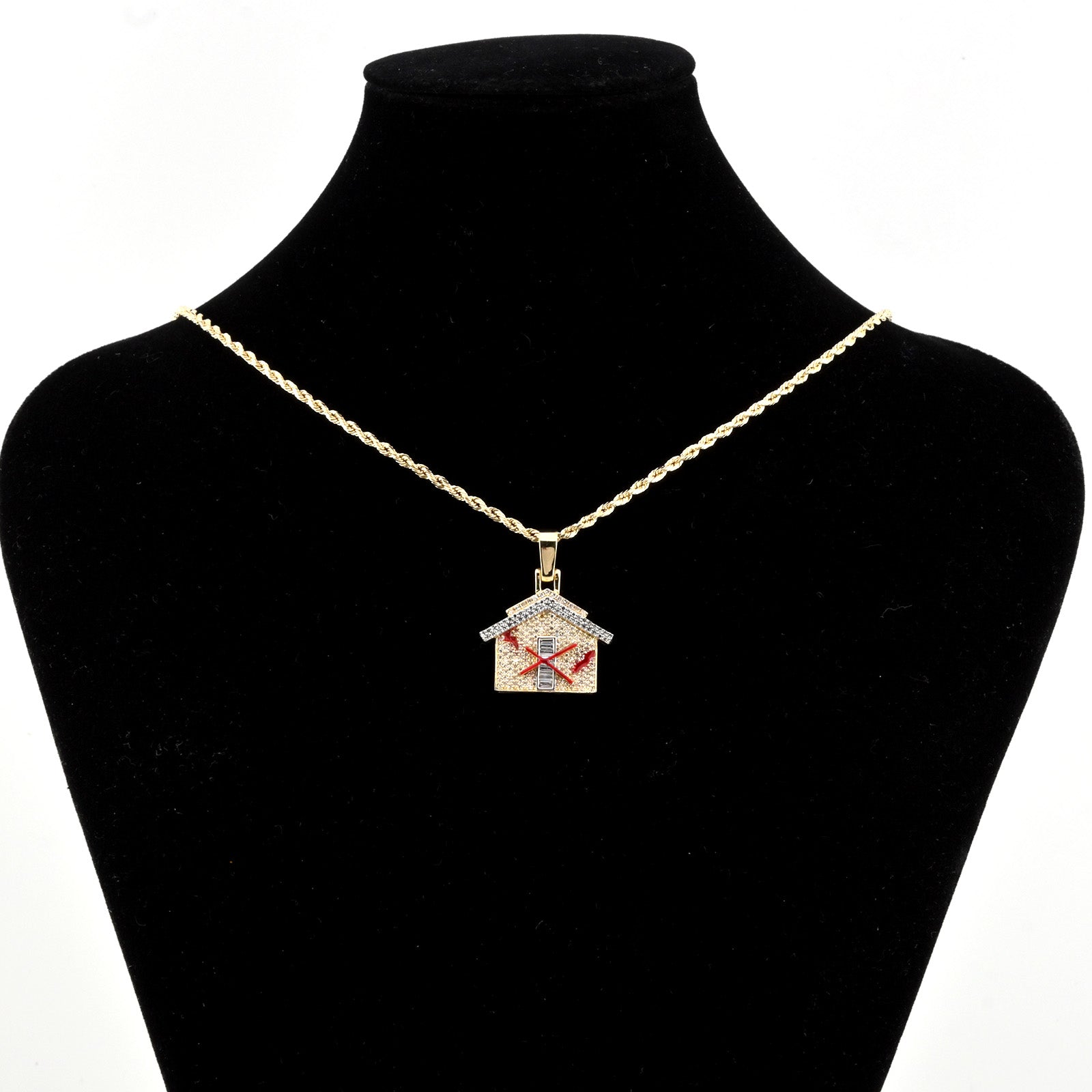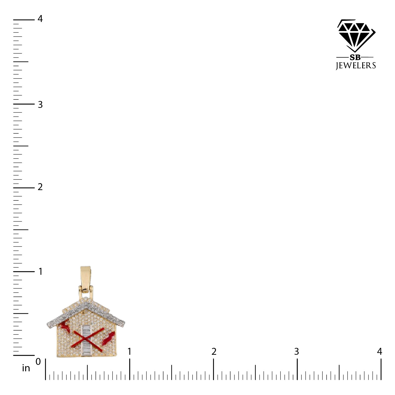 10k Yellow Gold 0.9CT Natural Round/Baguette Diamond Trap House Pendant Charm.