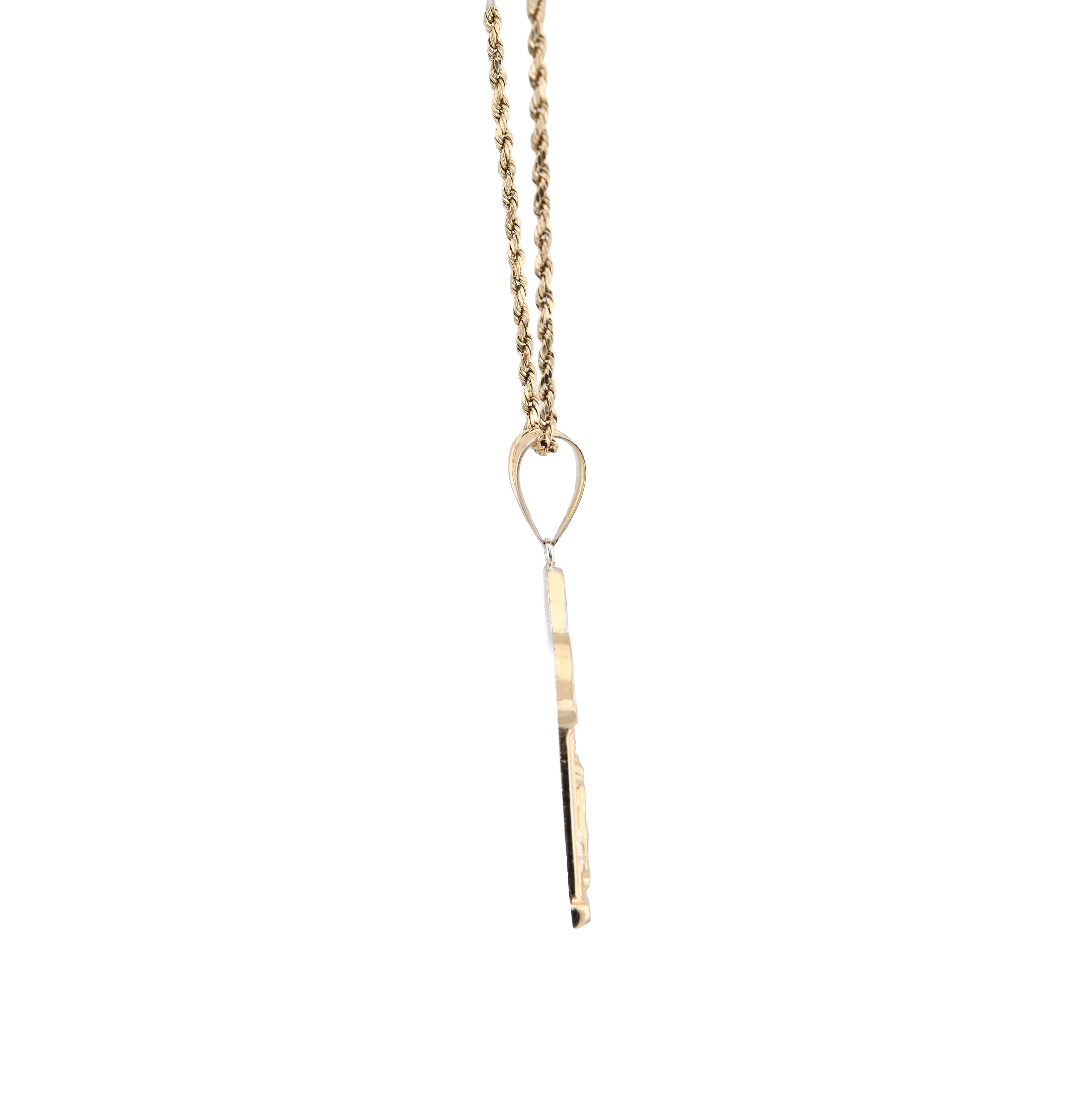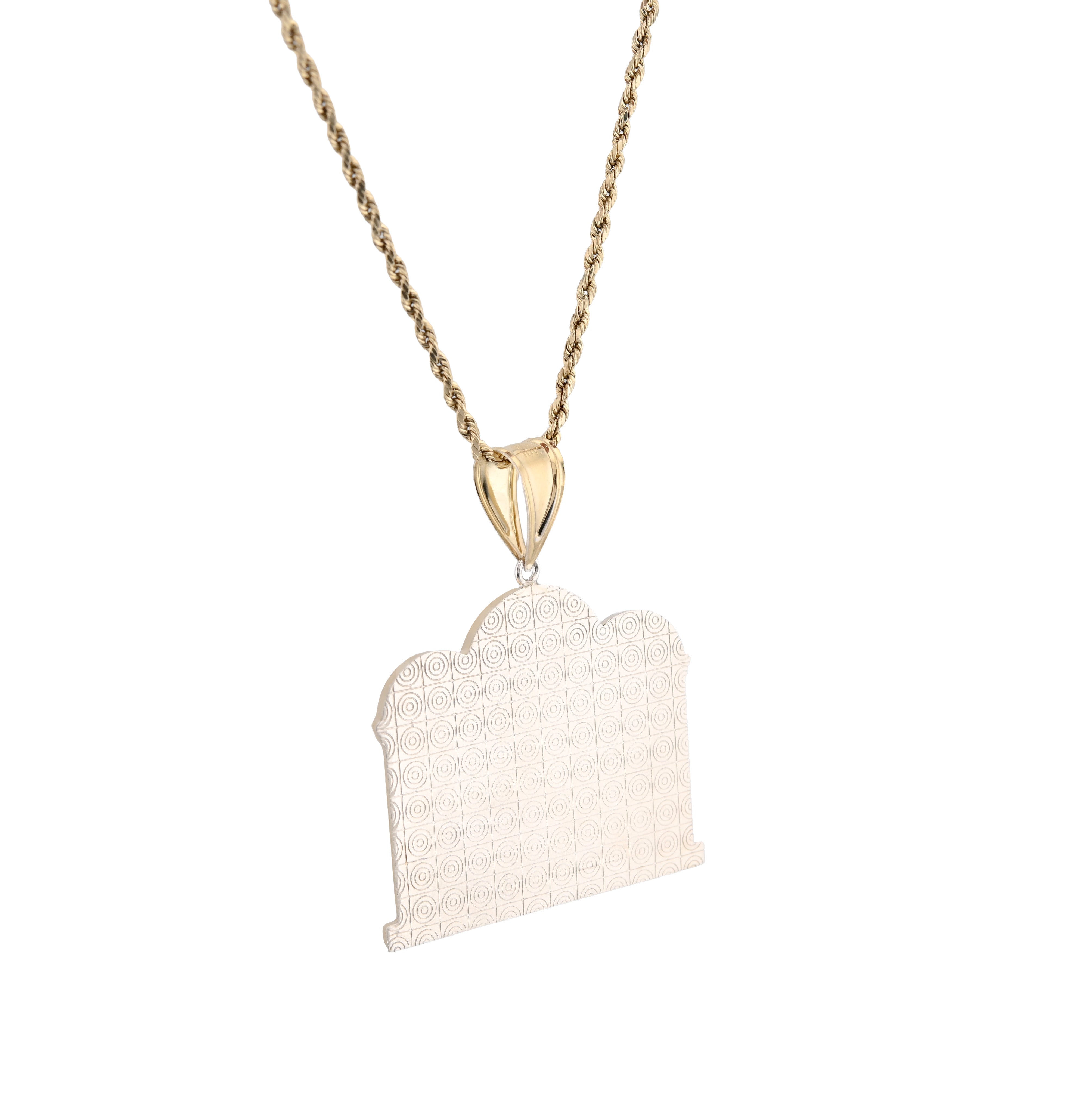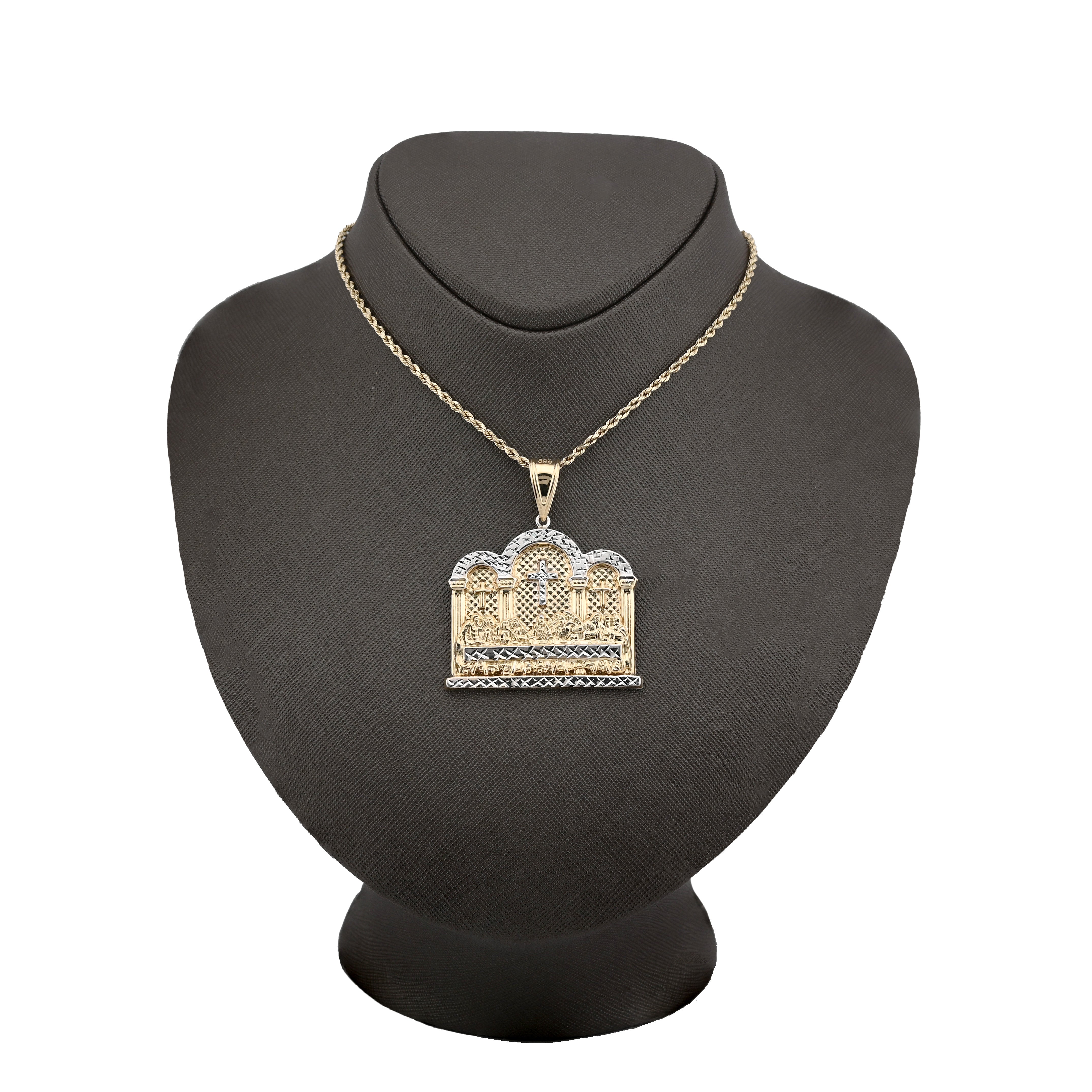 Elevate your spiritual expression with this exquisite pendant featuring diamond-cut detailing on the Last Supper scene. Forged from 925 sterling silver with 1/10th 10k gold bonding in a refined two-tone palette, the faceted surface catches light beautifully, creating dynamic visual interest. Weighing 8.2 grams, this substantial piece delivers impressive presence while remaining comfortable for extended wear. The intricate diamond-cut technique enhances the Apostles composition with remarkable depth and luminosity. An exceptional choice for discerning men who appreciate both artistic mastery and profound religious symbolism in their jewelry collection.
