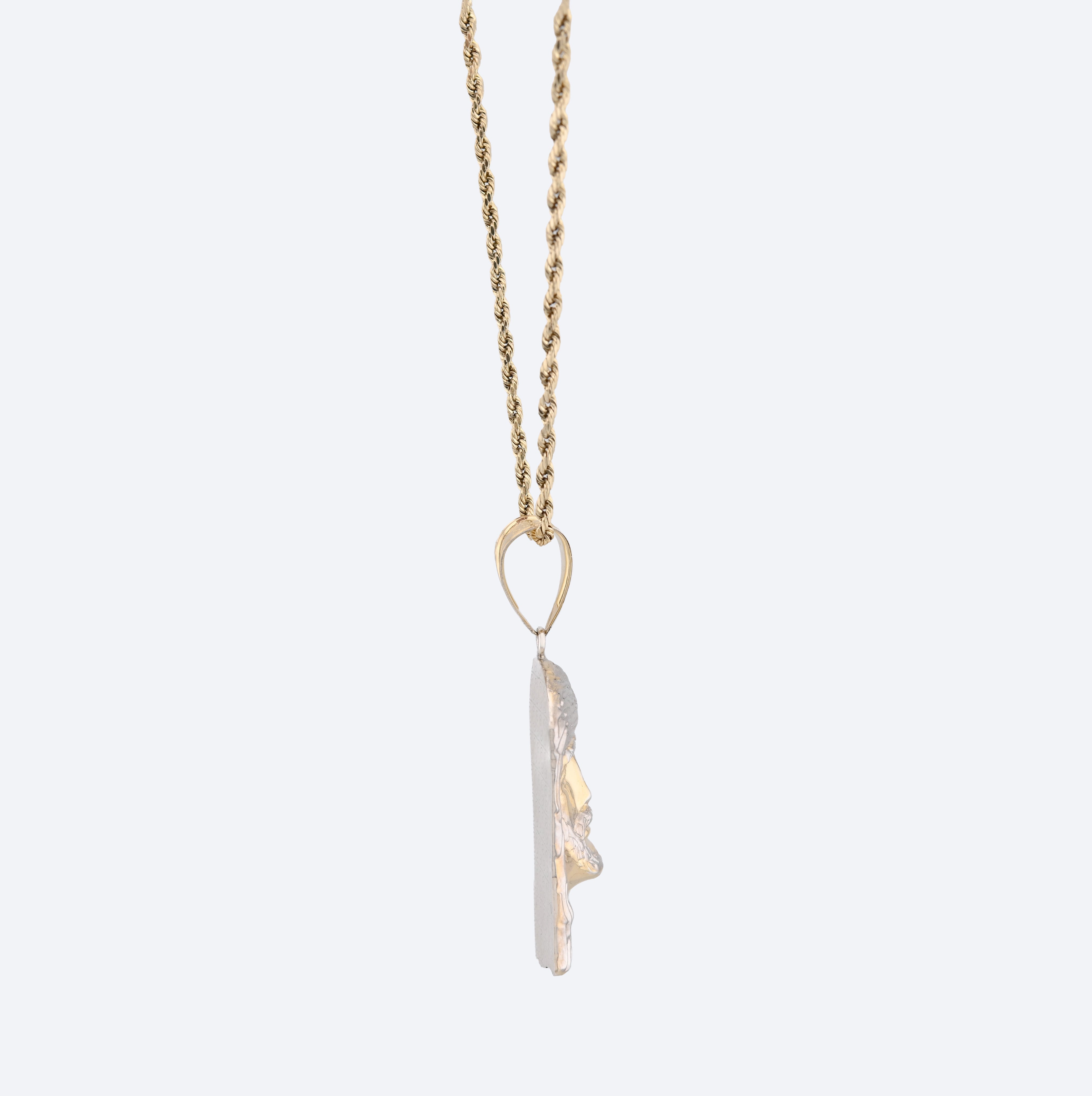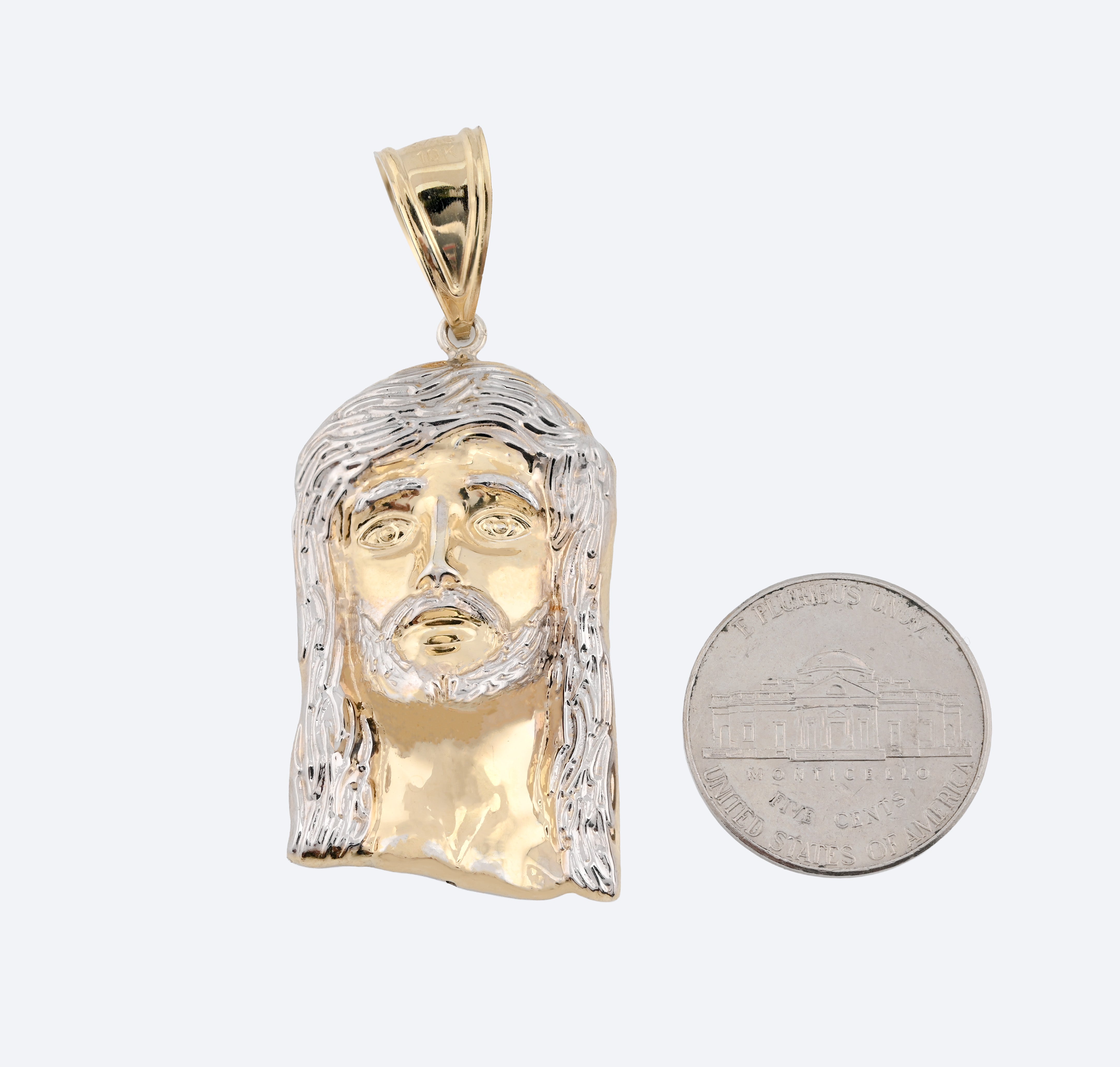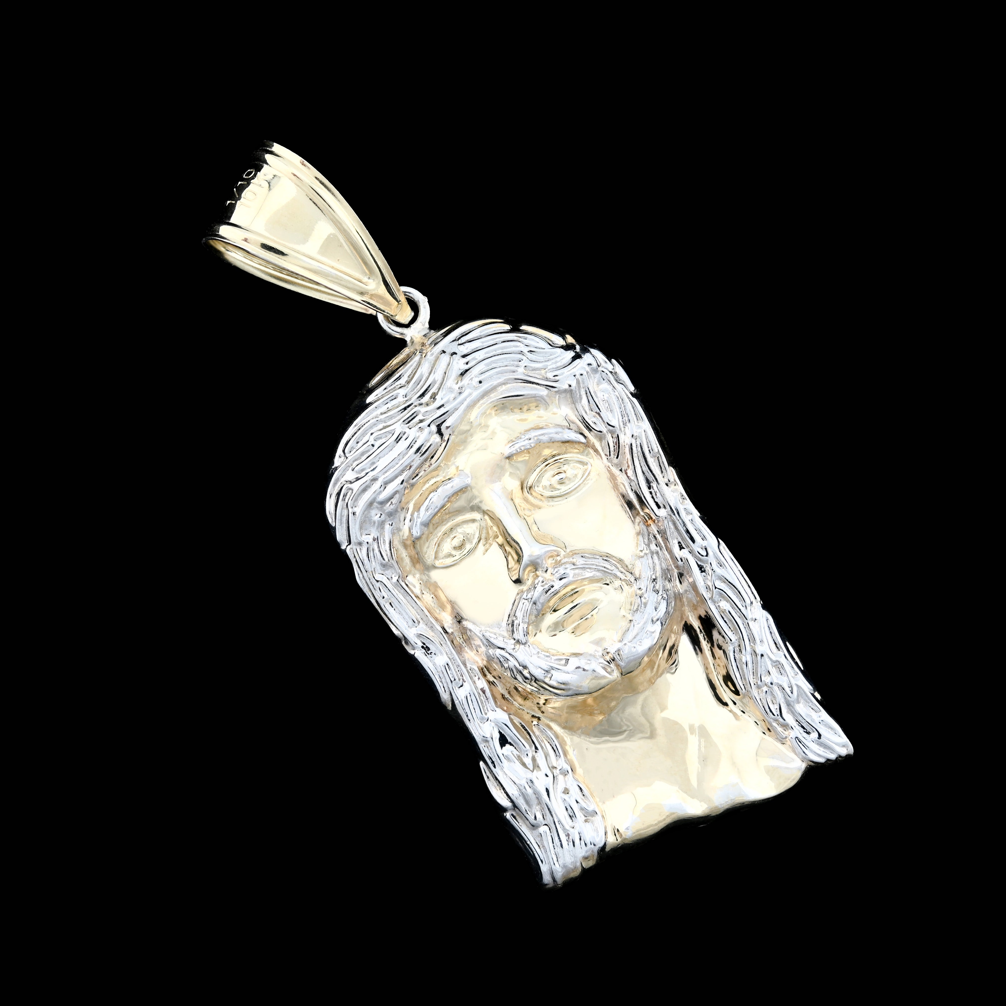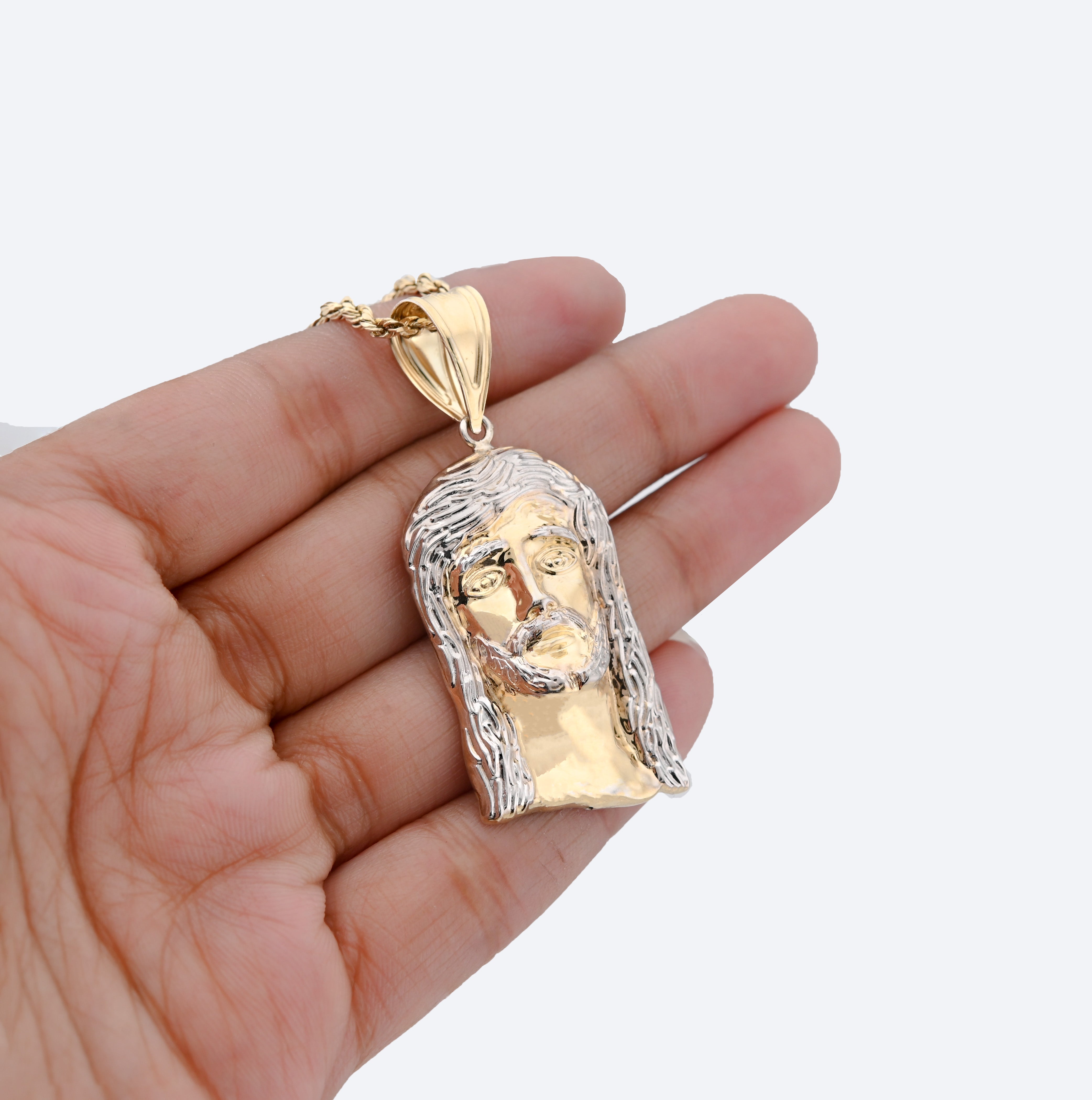 Honor your faith with this distinguished Jesus head pendant rendered in refined detail. Constructed from 925 sterling silver with 1/10th 10k gold bonding, the two-tone design creates visual sophistication and lasting quality. At 4.3 grams, the piece achieves an excellent balance between substantial presence and comfortable wearability for continuous devotion. The carefully crafted facial features demonstrate exceptional artistry, capturing serene spirituality with remarkable precision. Designed specifically for men seeking meaningful religious jewelry, this pendant serves as a powerful daily reminder of faith while maintaining understated elegance suitable for any setting or occasion.
