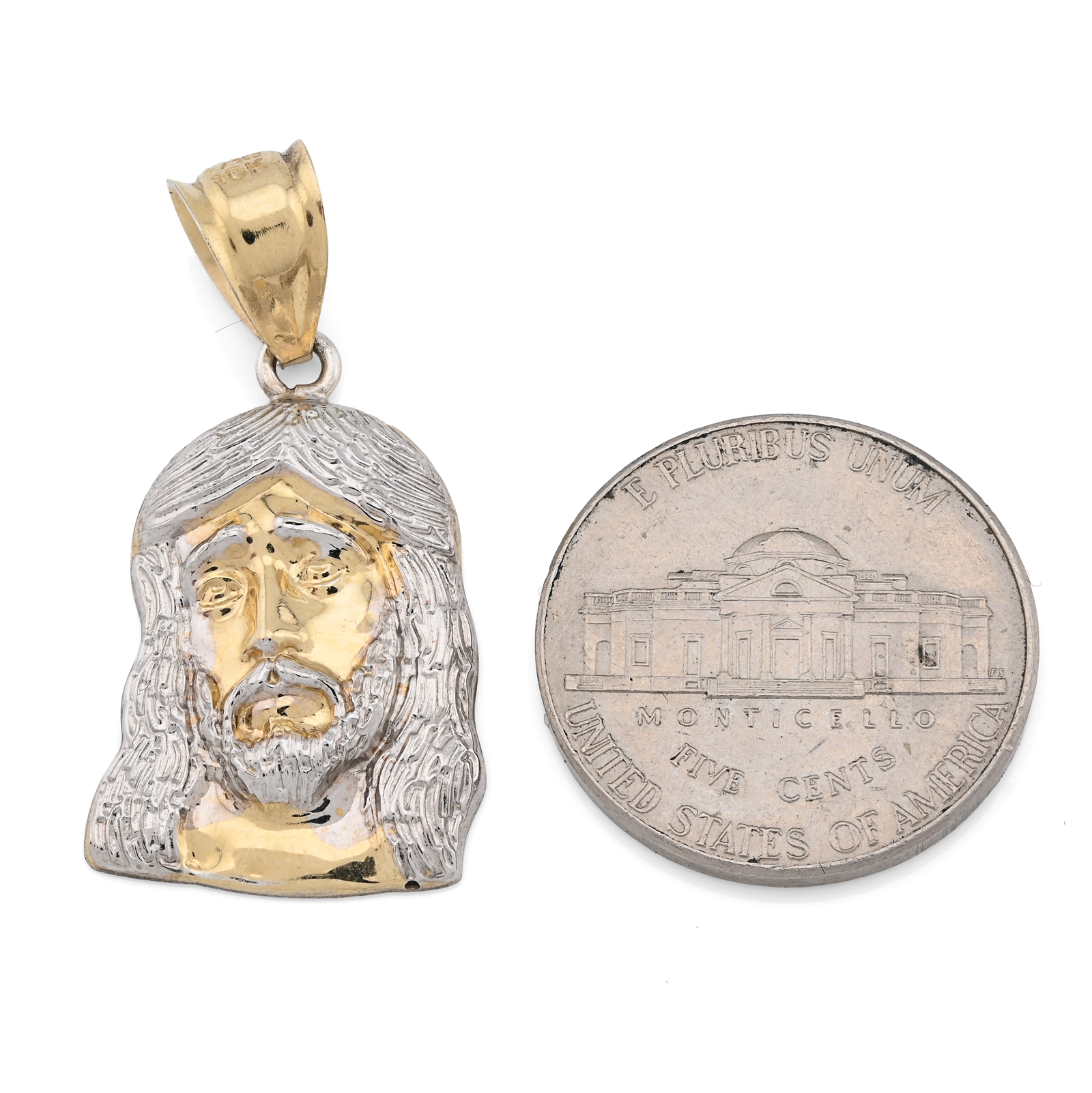 Express your faith with understated elegance through this delicate Jesus head pendant. Crafted from 925 sterling silver with 1/10th 10k gold bonding in a sophisticated two-tone finish, this minimalist piece prioritizes spiritual significance over ostentatious display. Weighing merely 1.8 grams, the featherweight charm excels as a layering piece or subtle daily devotional accessory. The refined portraiture captures serene spirituality with artistic precision despite its diminutive size. Ideal for those who prefer quiet conviction and refined aesthetics, this exceptional pendant allows you to honor your beliefs with grace and sophistication while maintaining an understated personal presence.