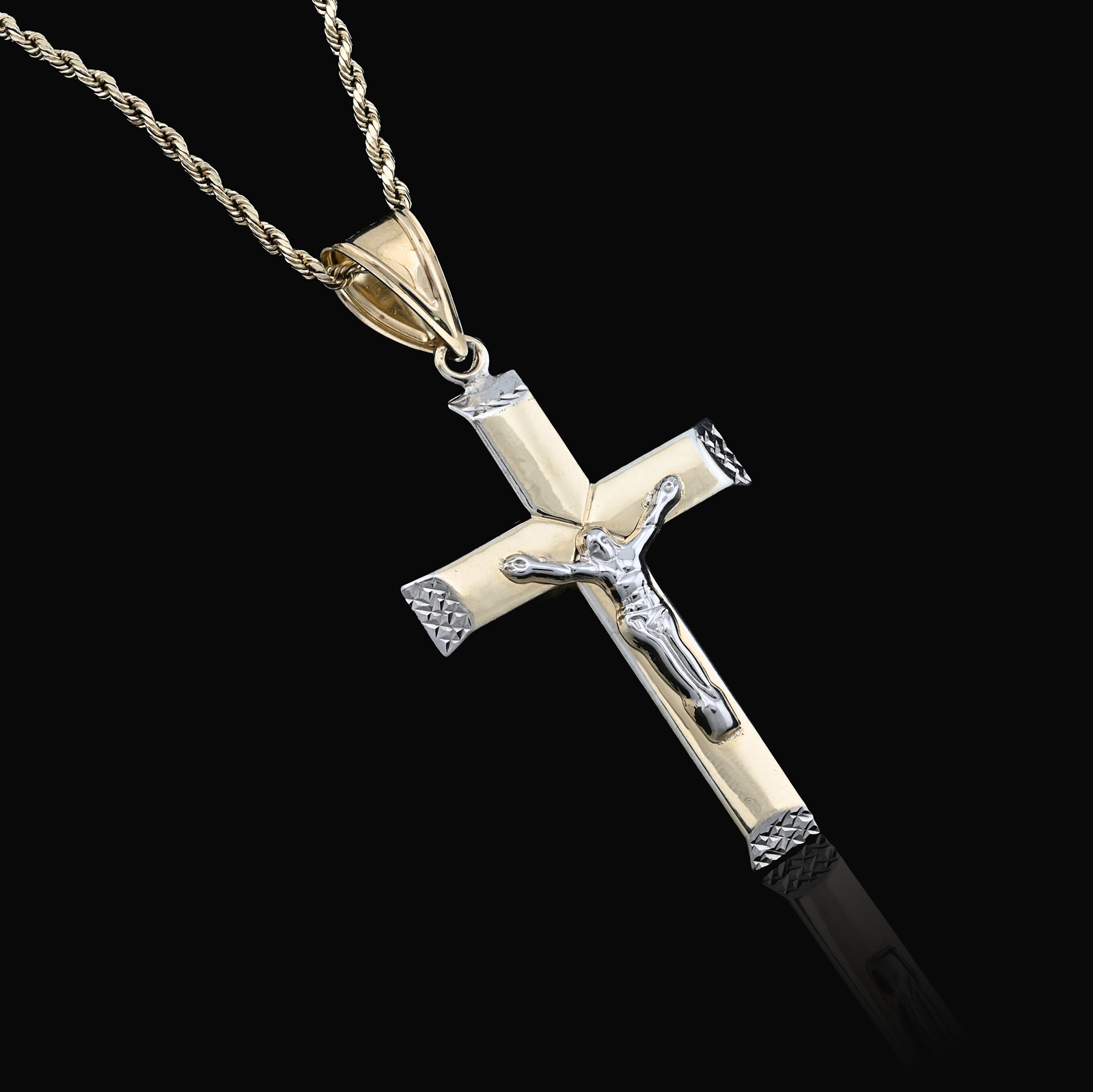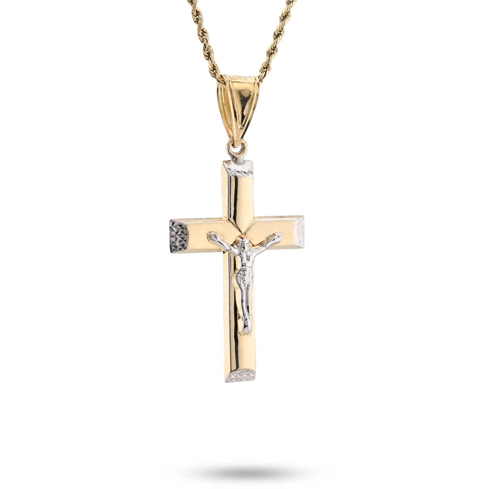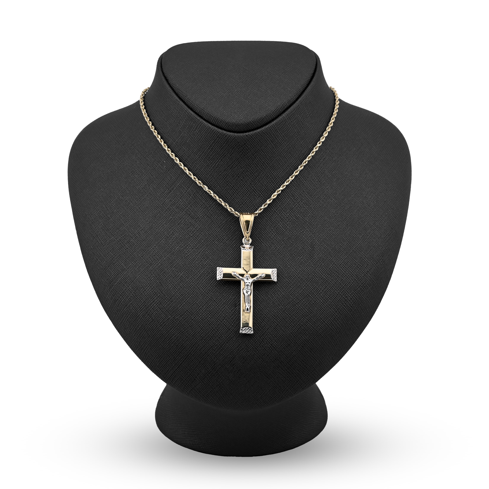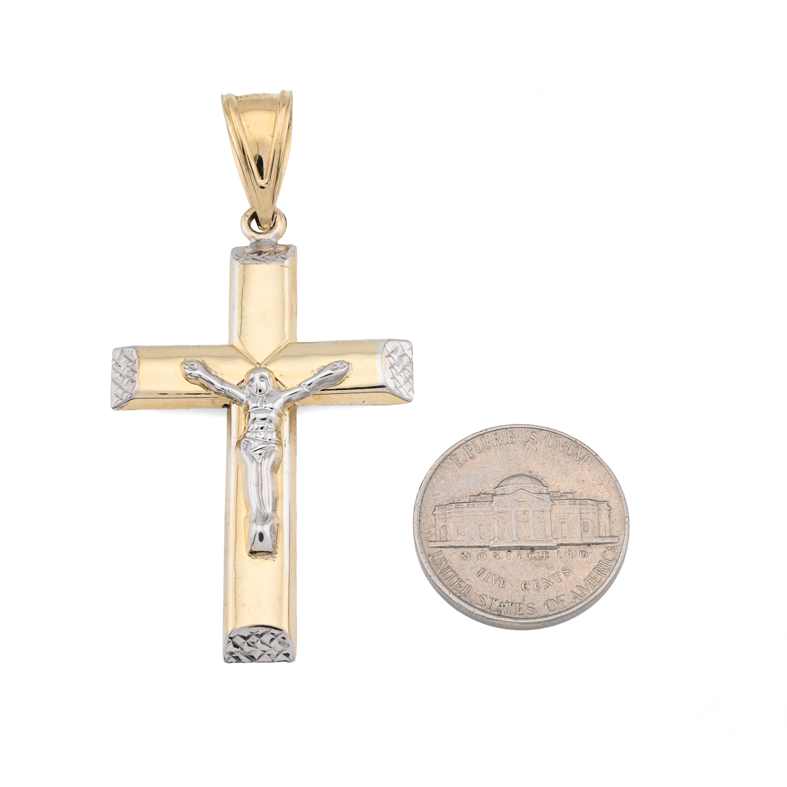 Express timeless faith with this refined cross crucifix pendant embodying spiritual conviction. Forged from 925 sterling silver with 1/10th 10k gold bonding in a sophisticated two-tone palette, the classic design transcends trends while maintaining contemporary appeal. At 3.3 grams, the piece achieves ideal proportions for comfortable all-day devotion without excessive weight. The clean lines and balanced proportions reflect traditional religious artistry with modern sensibility. Versatile enough for any occasion, this distinguished pendant serves as a powerful personal statement of belief while complementing diverse personal styles. An exceptional choice for those seeking enduring spiritual jewelry that combines timeless symbolism with refined craftsmanship.