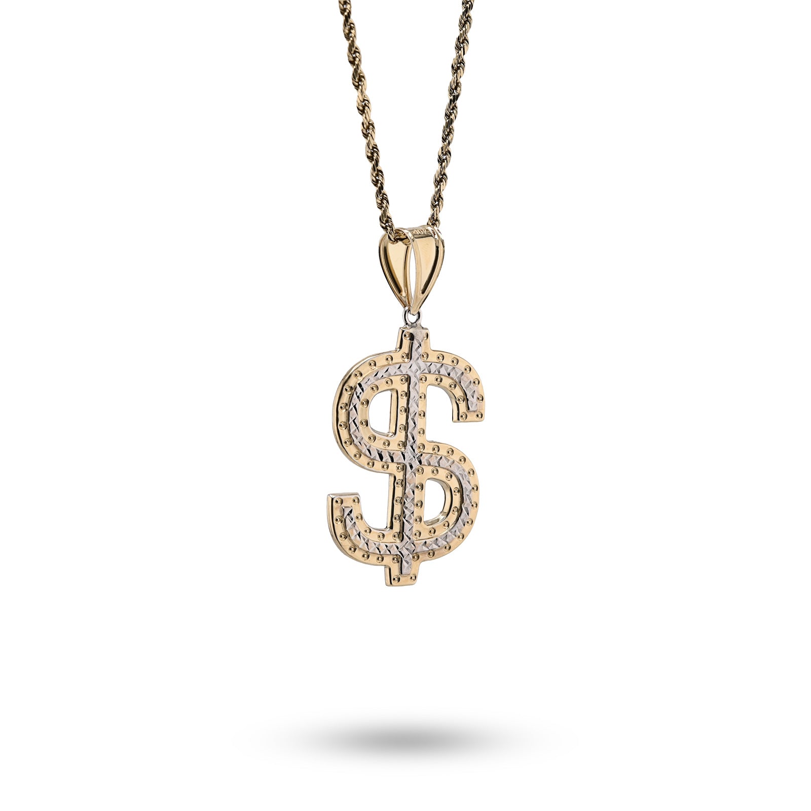 Project confidence and ambition with this bold dollar symbol pendant. Crafted from 925 sterling silver with 1/10th 10k gold bonding, the two-tone design delivers contemporary sophistication with an unmistakable statement. Weighing 3.8 grams, the piece strikes an ideal balance between visual impact and comfortable everyday wearability. The clean, iconic symbol appeals to entrepreneurs and visionaries who celebrate financial success and prosperity. Whether worn as a personal reminder of your goals or as a fashion-forward accessory, this distinctive charm captures attention while maintaining refined elegance suitable for any occasion.