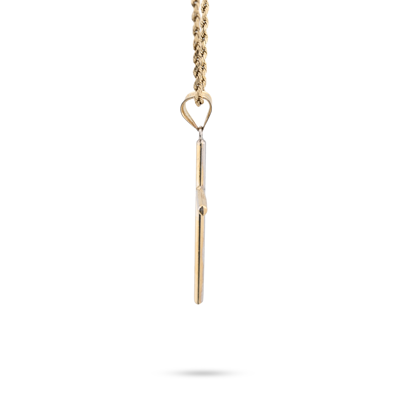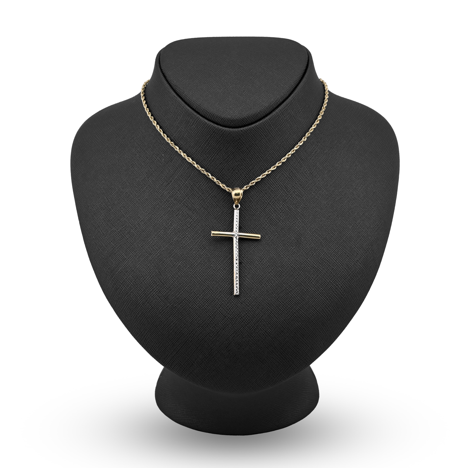 Celebrate faith with refined minimalism through this slender diamond-cut cross pendant. Constructed from 925 sterling silver with 1/10th 10k gold bonding in an elegant two-tone palette, the thin profile creates a graceful silhouette enhanced by faceted detailing. At 1.4 grams, this lightweight charm captures light beautifully while remaining virtually imperceptible during wear. The diamond-cut technique adds contemporary sophistication to this timeless religious symbol, creating subtle luminosity without excess ornamentation. Perfect for those who appreciate understated spirituality and clean design aesthetics, this distinctive pendant offers meaningful devotion paired with refined elegance suitable for any occasion or personal style.