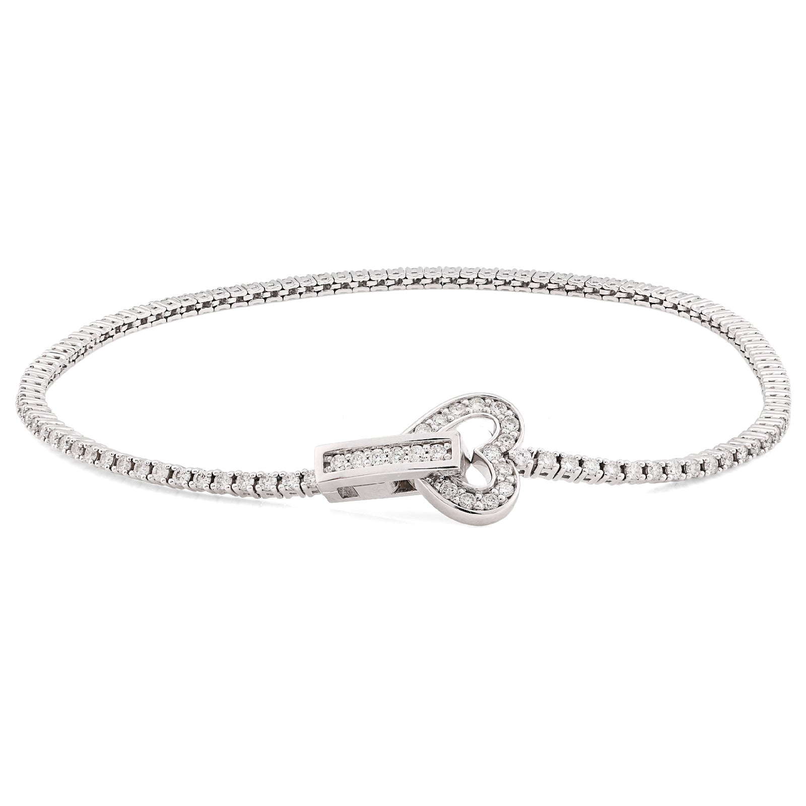 Discover understated luxury with this delicate 14k white gold tennis bracelet, designed for those who appreciate refined minimalism. Adorned with 1.25 carats of natural diamonds arranged in an elegant heart motif, this 7-inch bracelet combines graceful proportions with genuine sparkle. At just 6.5 grams with a slender 1.5mm profile, it offers a whisper-light feel without compromising on presence. The heart-shaped diamond setting adds a romantic touch while maintaining the classic tennis bracelet aesthetic. Perfect for layering or wearing solo, this piece transitions effortlessly from boardroom to evening, making it an essential addition to any sophisticated jewelry wardrobe.