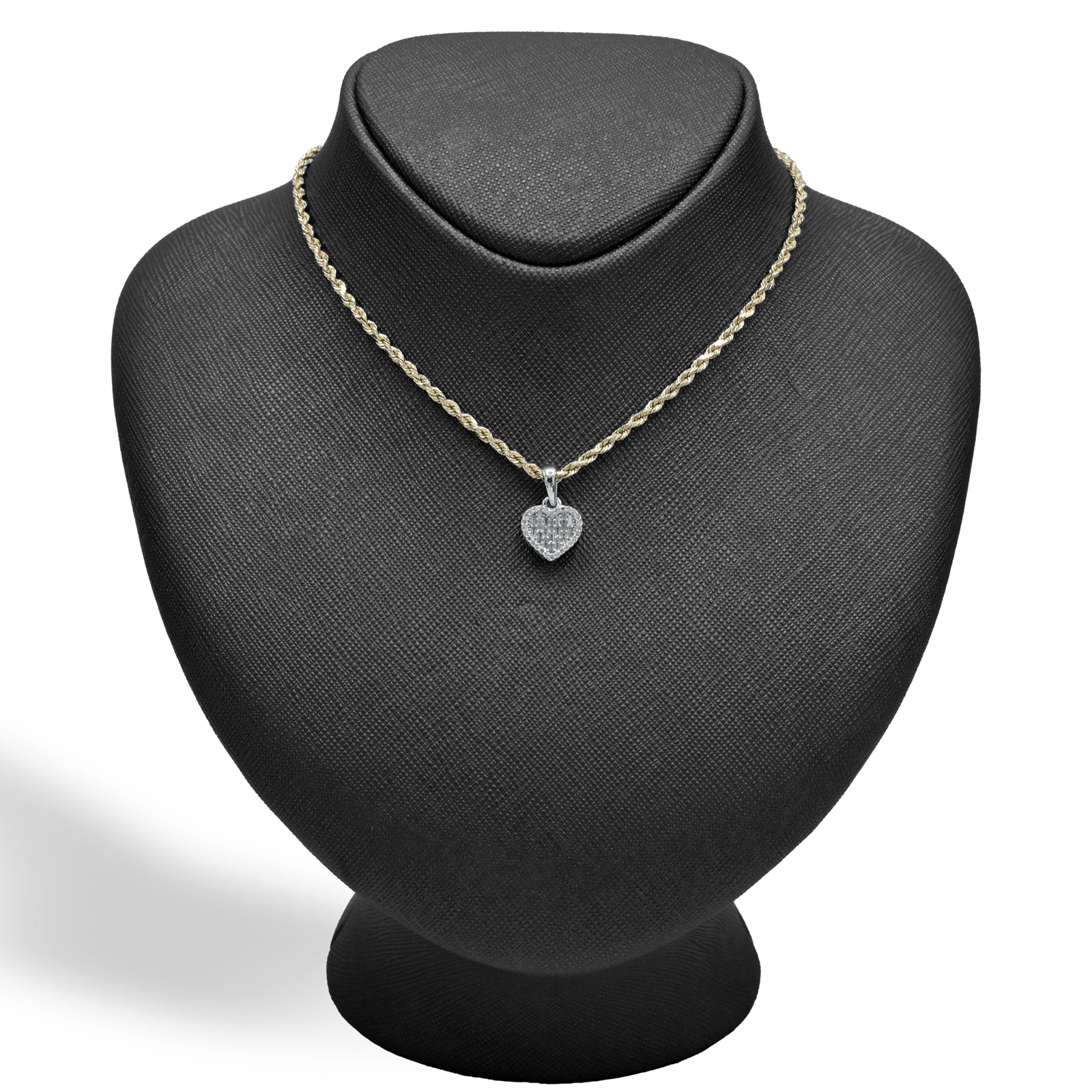 Express affection with this exquisite 10k white gold heart pendant, a delicate ladies' charm that celebrates romantic sentiment. Weighing just 1.4 grams, this graceful piece features 0.25 carats of natural baguette diamonds arranged with geometric precision along the heart design. The linear quality of baguette cuts creates architectural elegance while maintaining the pendant's delicate proportions and cool white gold aesthetic. An ideal selection for women seeking a refined romantic charm that honors love through premium craftsmanship and natural diamond artistry.