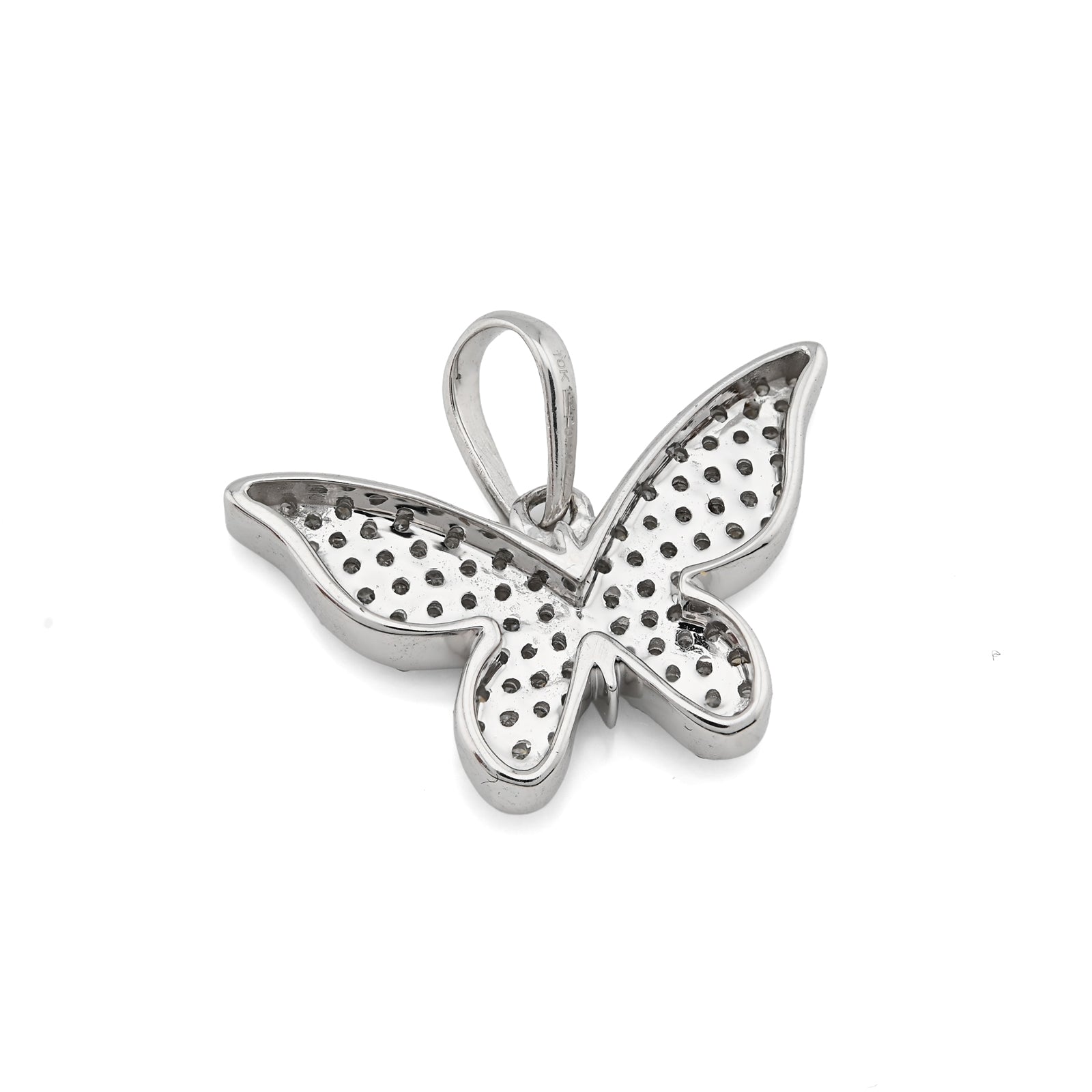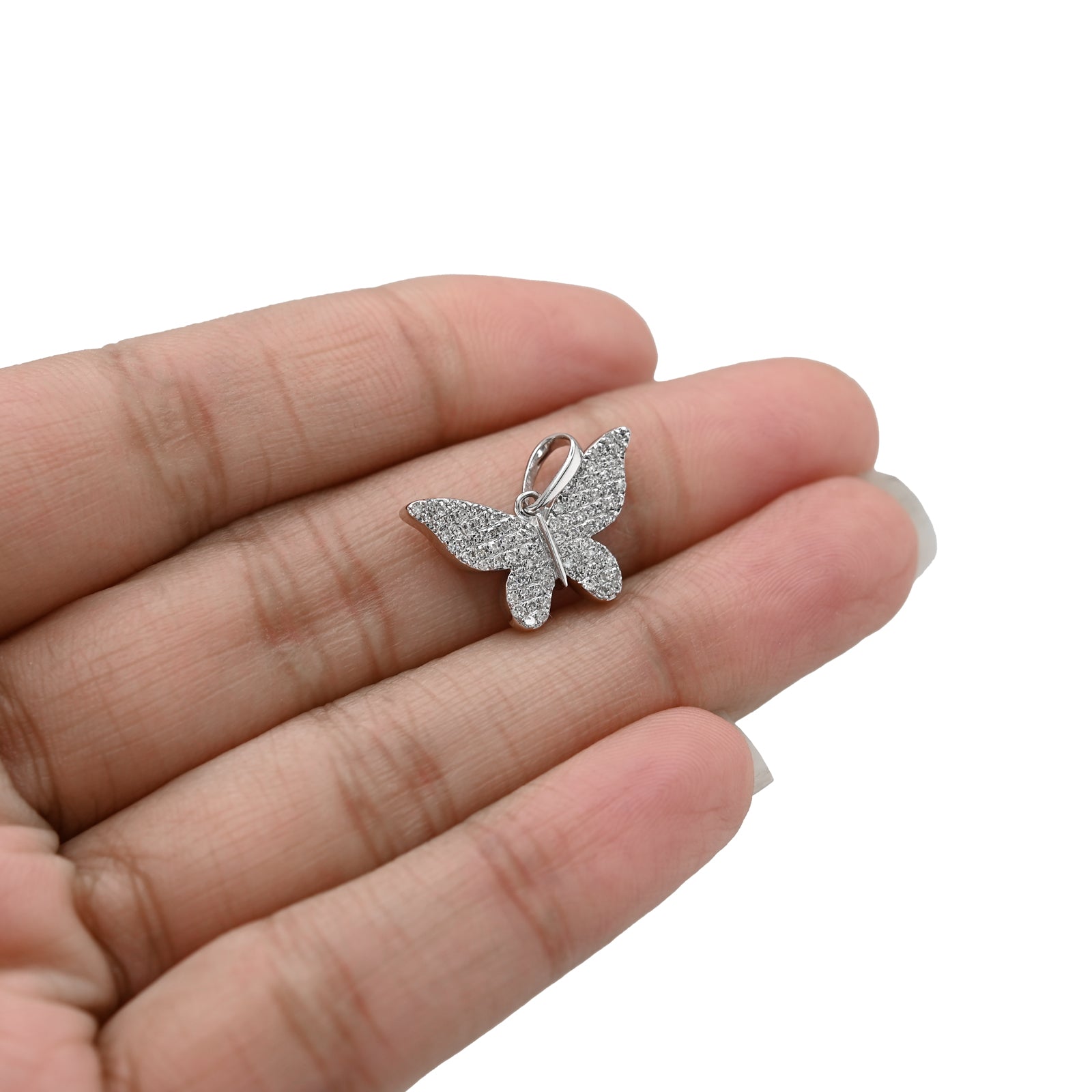 Celebrate transformation and grace with this delicate butterfly pendant in pristine 10k white gold. Adorned with 0.26 carats of natural diamonds that sparkle across its wings, the design captures the ethereal beauty of nature's most enchanting creature. Weighing just 1.4 grams, this lightweight charm sits elegantly against the skin, making it perfect for layering or wearing solo. The butterfly's symbolism of renewal and freedom pairs beautifully with genuine gemstones, creating a refined piece that speaks to personal growth and timeless femininity.