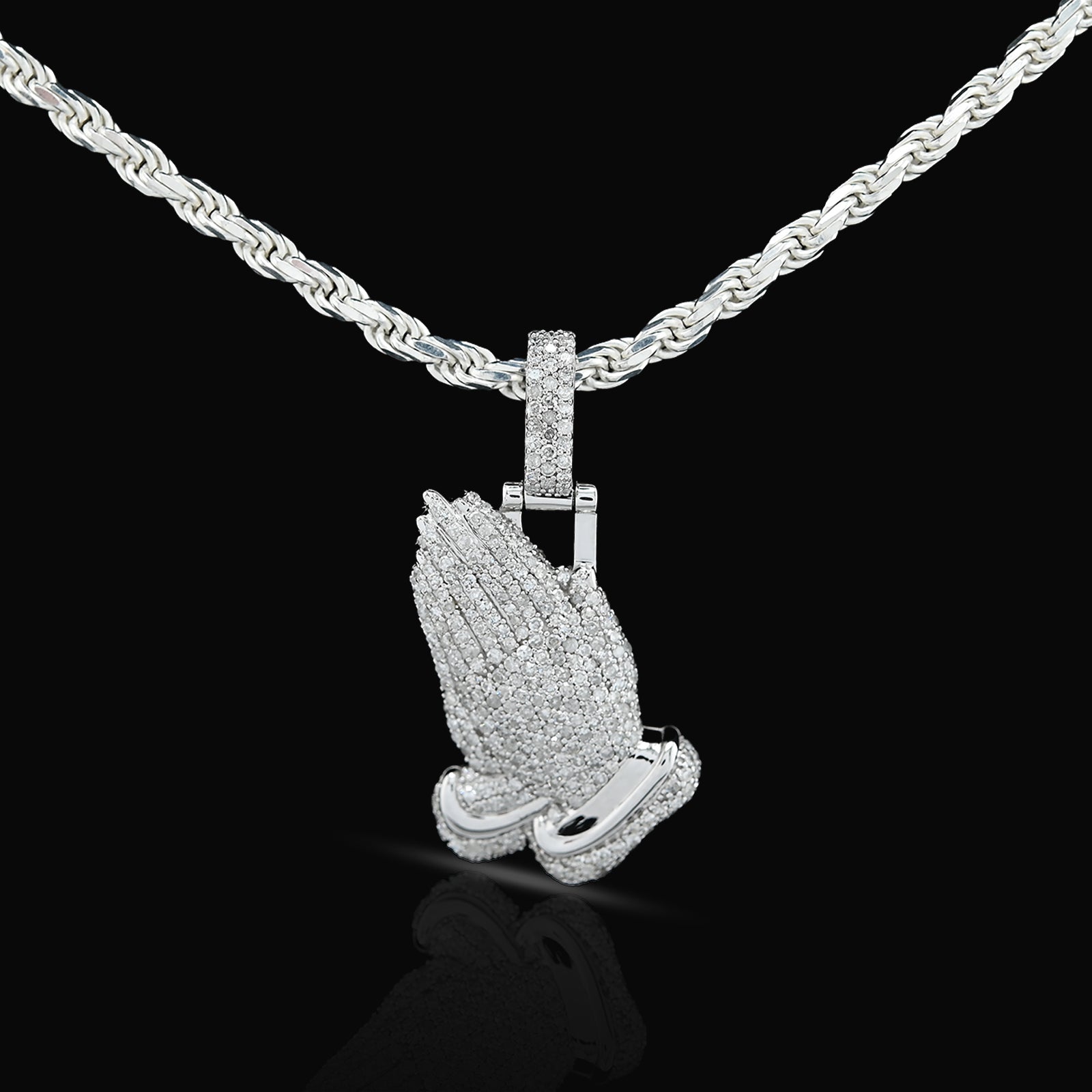 This elegant praying hands pendant captures spiritual devotion in timeless design. Crafted from 10k white gold and weighing 5.3 grams, it features a natural 1 carat diamond that adds refined sparkle to this meaningful religious charm. The detailed hand-sculpted motif conveys faith and reverence, making it a cherished piece for daily wear or special occasions. Perfect as a gift for someone seeking to express their beliefs through jewelry, this pendant combines symbolic beauty with quality craftsmanship and enduring value.