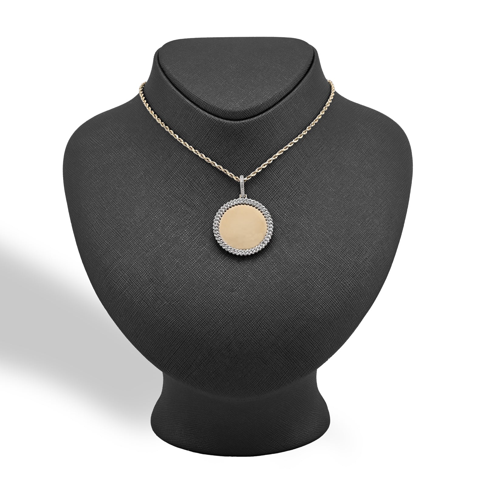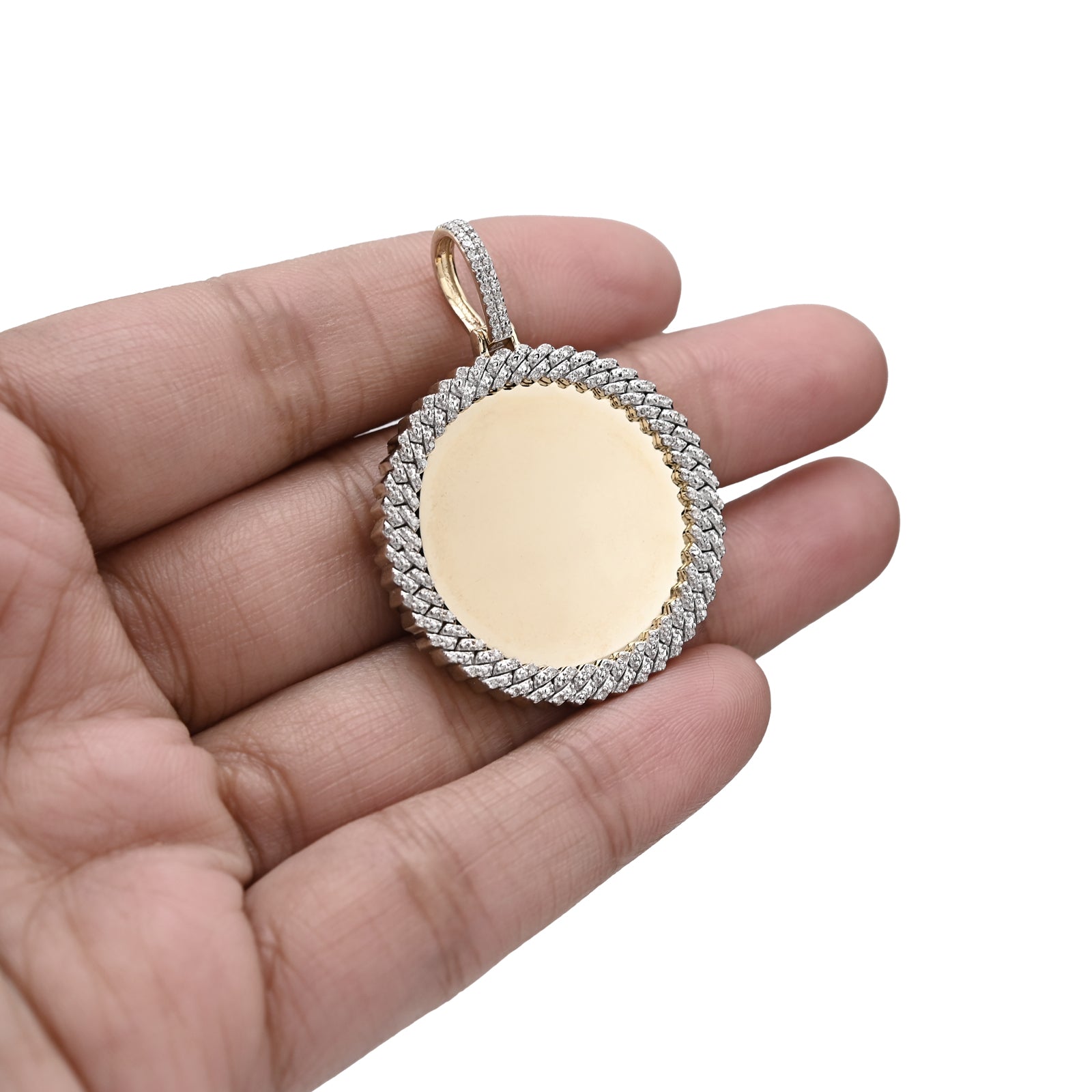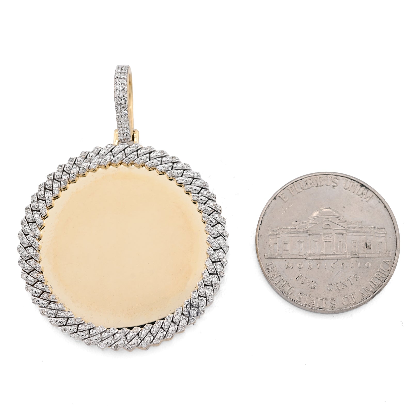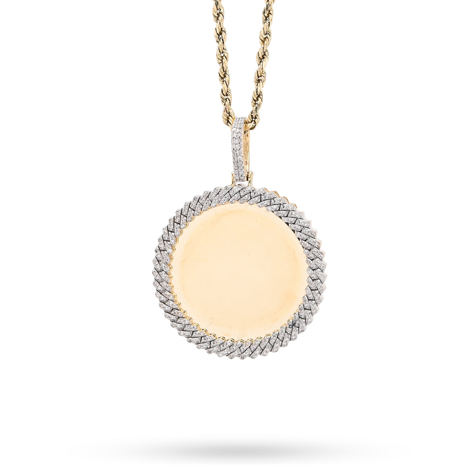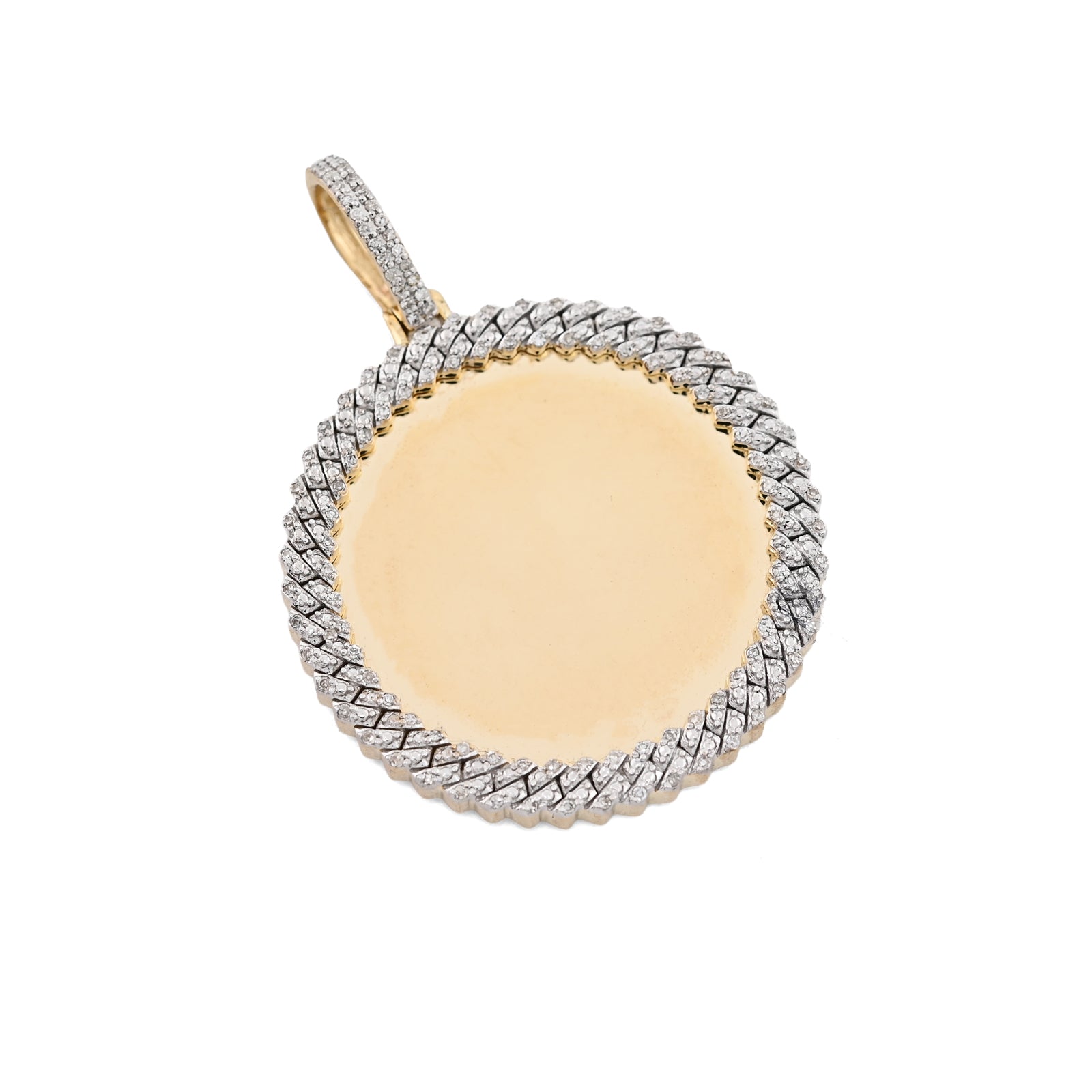 Honor cherished moments with this elegant circle pendant in warm 10k yellow gold, featuring a classic Cuban link aesthetic. Adorned with 0.25 carats of natural diamonds that punctuate the design with subtle brilliance, this piece captures both nostalgia and contemporary style. Weighing 8.4 grams, it offers substantial presence while maintaining refined proportions perfect for everyday elegance. The circular form symbolizes completeness and continuity, while genuine gemstones elevate it beyond ordinary jewelry. An ideal keepsake that blends timeless design with meaningful symbolism.