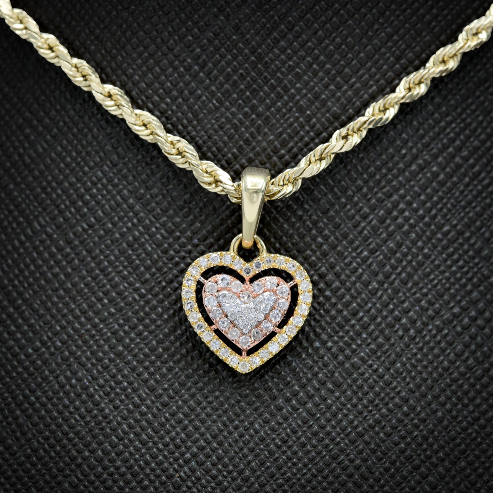 Cherish love with this delightful 10k yellow gold heart pendant, a feminine charm that radiates warmth and romance. Measuring 11mm and weighing just 1.2 grams, this petite piece features 0.25 carats of natural diamonds that sparkle beautifully across the classic heart form. The warm yellow gold creates an inviting aesthetic, while the diamond accents enhance the sentimental symbolism with refined elegance. Perfect for women seeking a meaningful pendant that expresses devotion through premium craftsmanship and natural gemstone beauty.