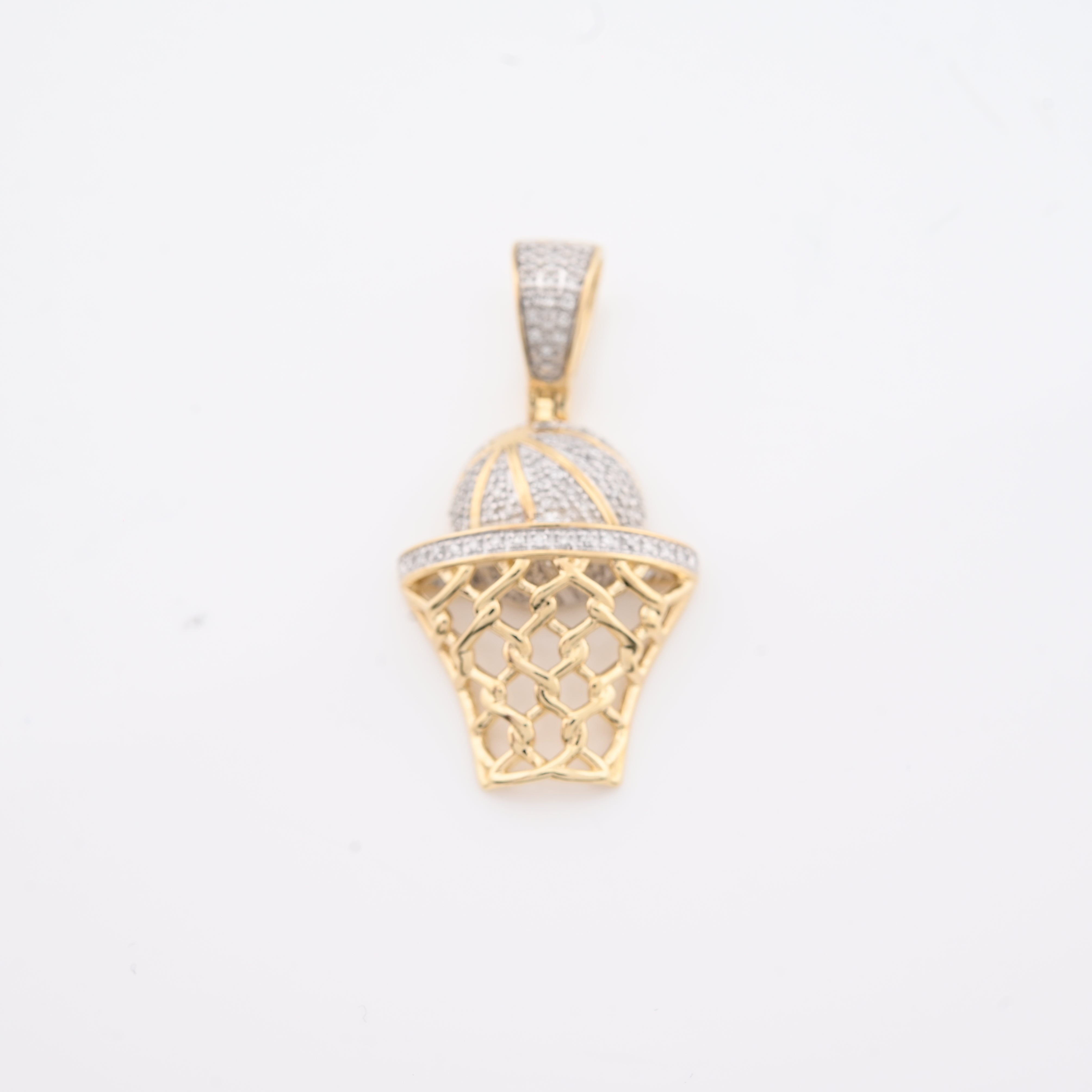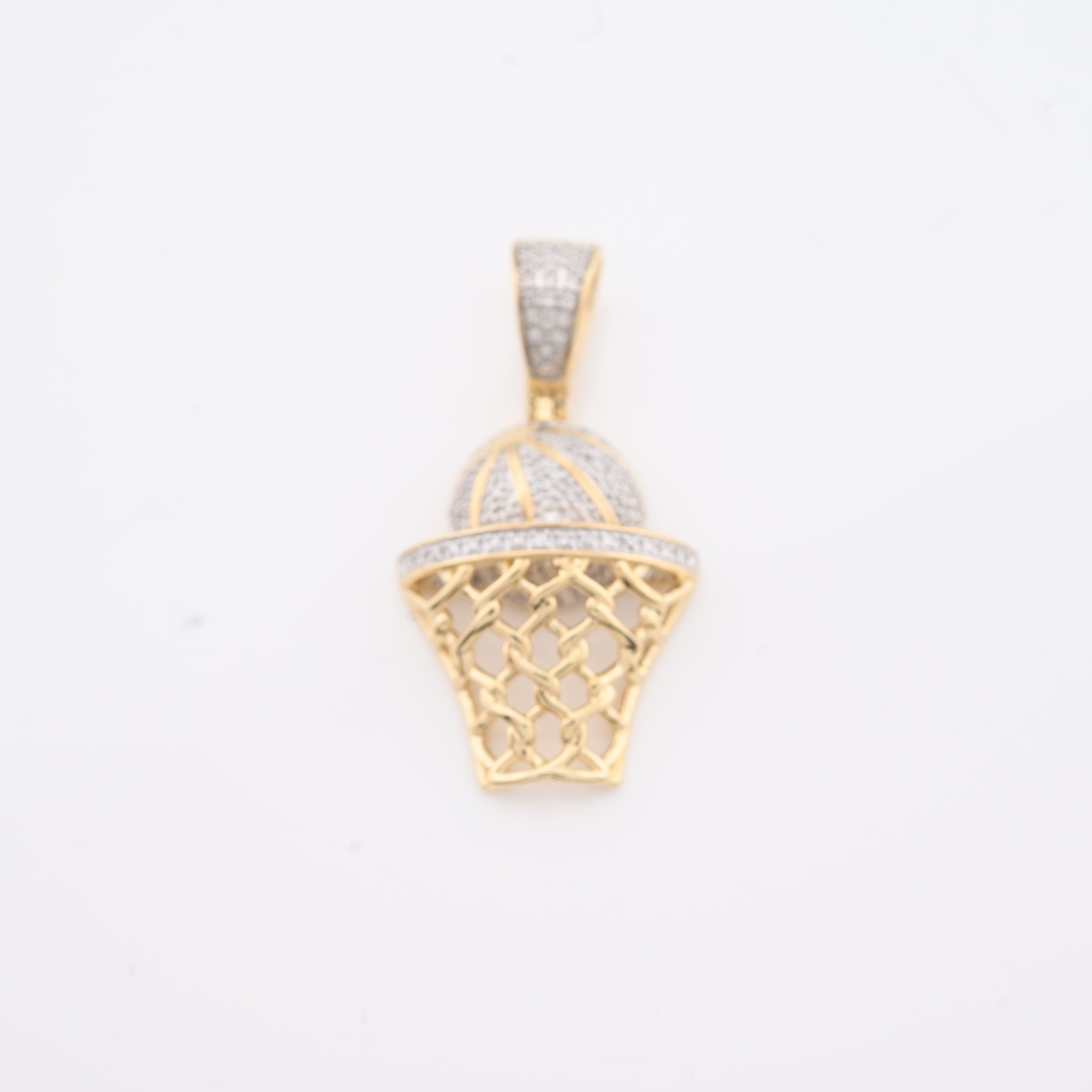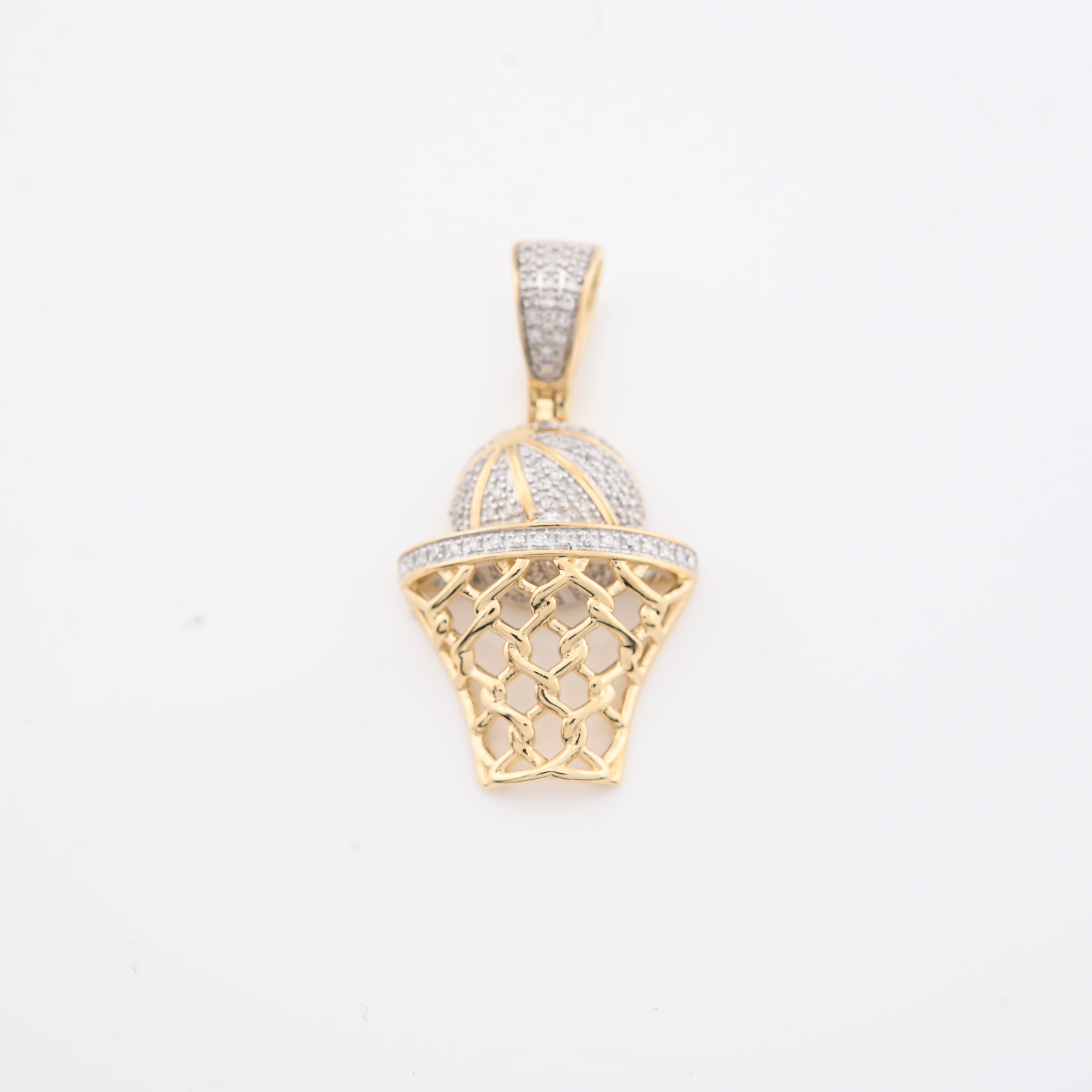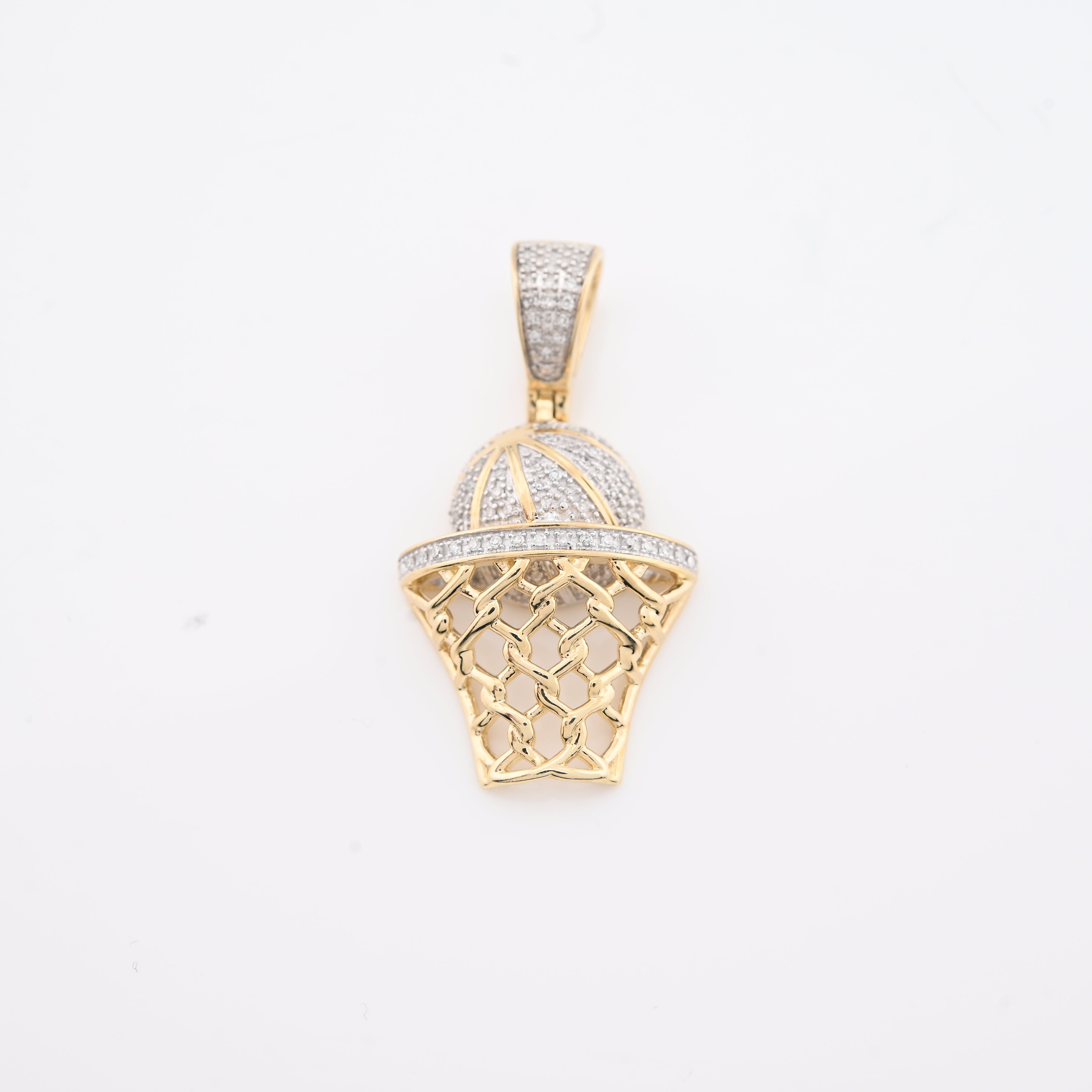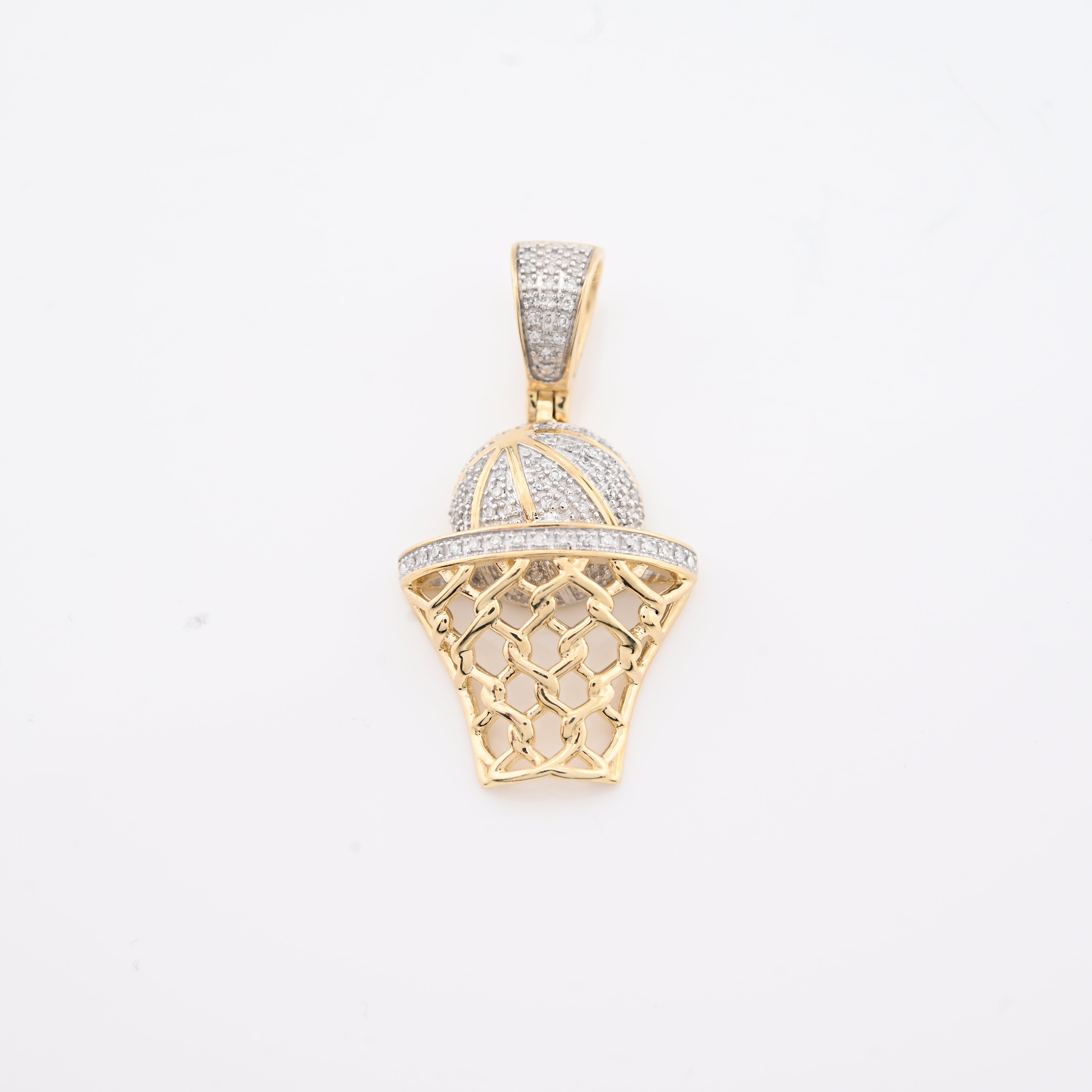 Elevate your style with this refined 10k yellow gold basketball hoop pendant, a distinctive piece that celebrates athletic passion with understated luxury. Adorned with 0.2 carats of natural diamonds in an iced setting, the pendant captures light beautifully while maintaining sophisticated appeal. At 4.5 grams, it strikes the perfect balance between presence and comfort for daily wear. The intricately detailed hoop design showcases exceptional craftsmanship, making it an ideal charm for those who appreciate both sports culture and fine jewelry. A versatile accessory that transitions seamlessly from casual to refined occasions.