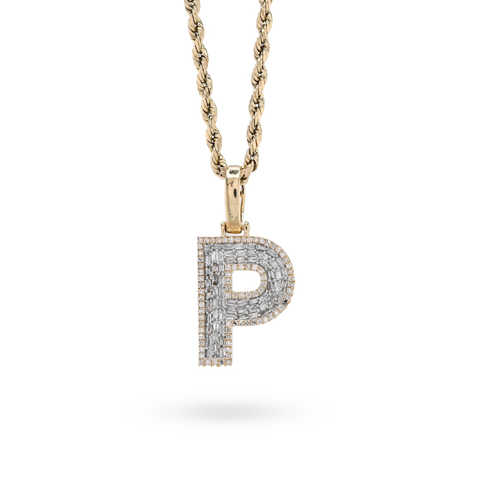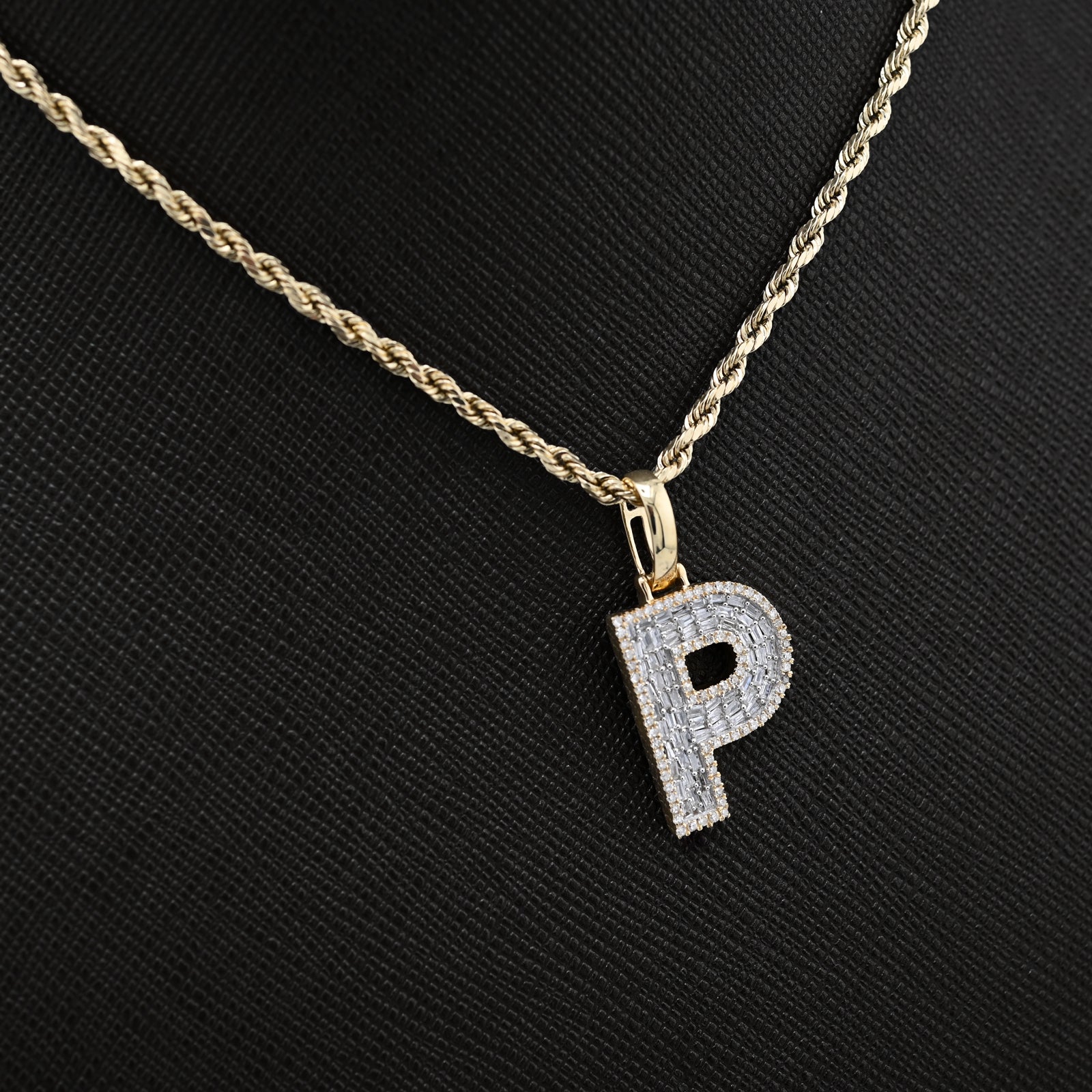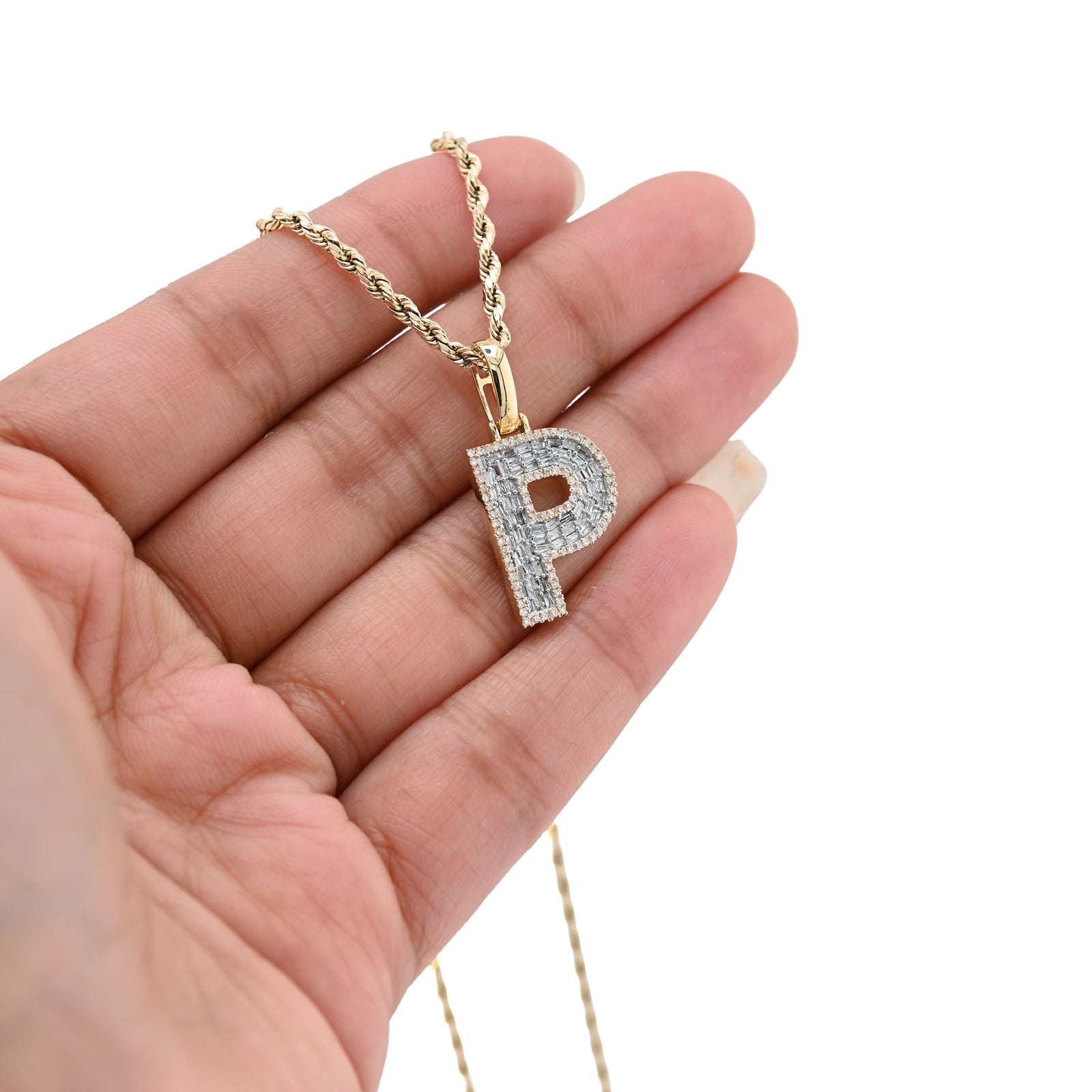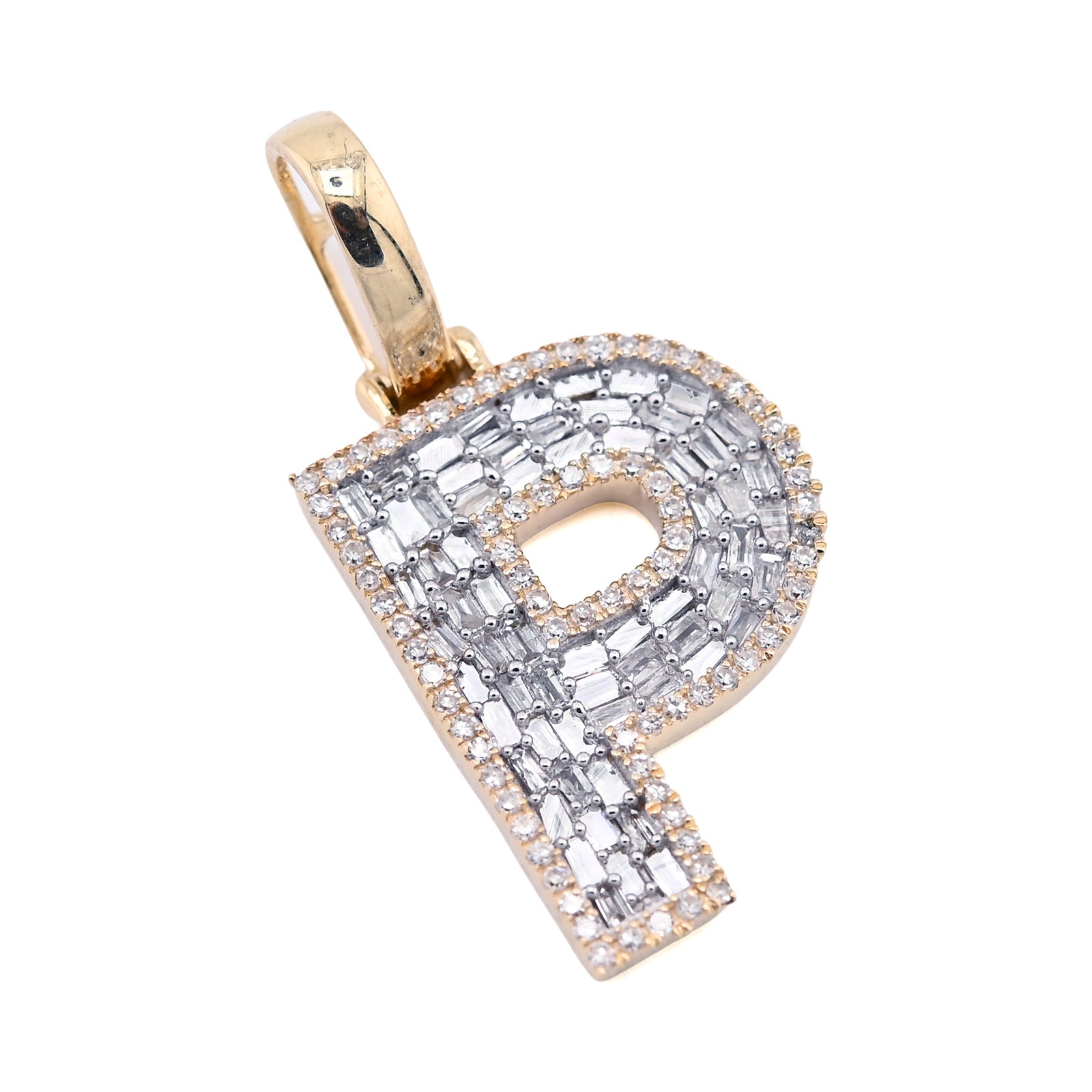 Personalize your jewelry collection with this elegant initial pendant, showcasing the letter "P" adorned with 0.5 carats of natural diamonds set in 10k yellow gold. Weighing 2.1 grams, this refined charm celebrates individuality while maintaining a graceful, wearable profile. The sparkling diamond accents elevate the classic monogram design, making it perfect for gifting or self-expression. Whether worn alone or layered with complementary pieces, this alphabet charm adds a touch of sophistication and personal meaning to any jewelry ensemble.