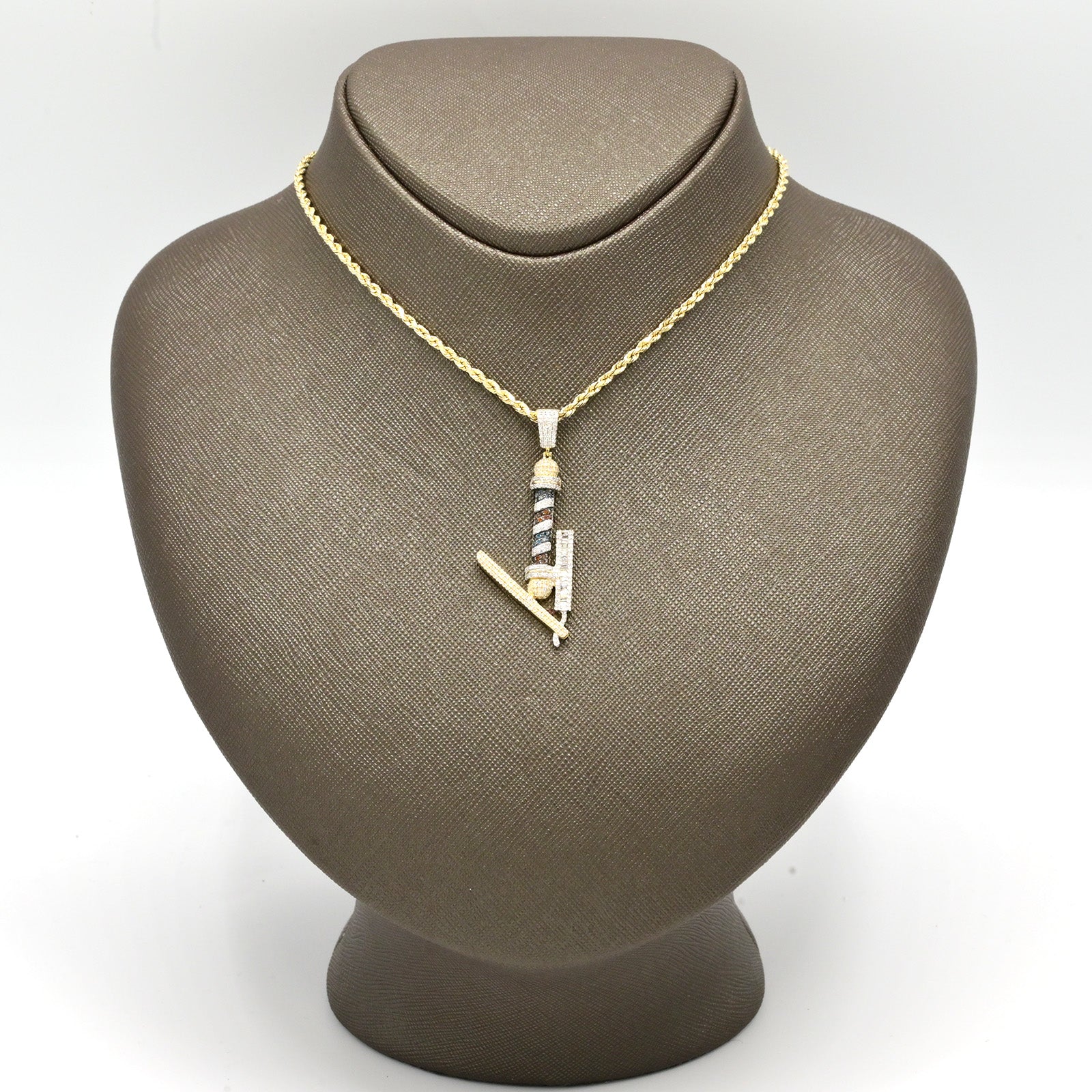 10k Yellow Gold 0.75CTW Natural Round/Baguette Diamond Barber Pendant 4.1g Charm.