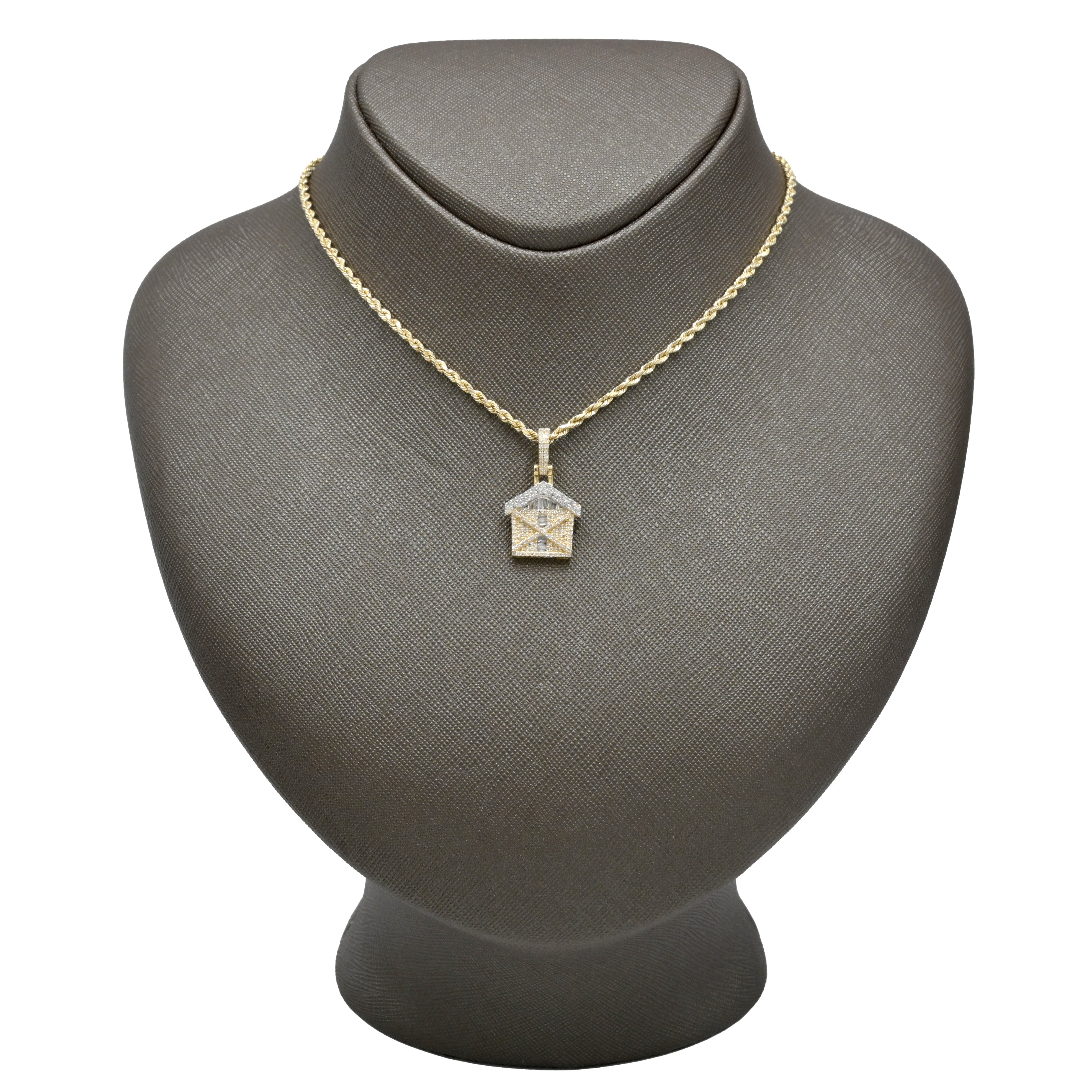 10k Yellow Gold 0.7CTW Round & Baguette Diamond Trap House Pendant 2.5g Charm.