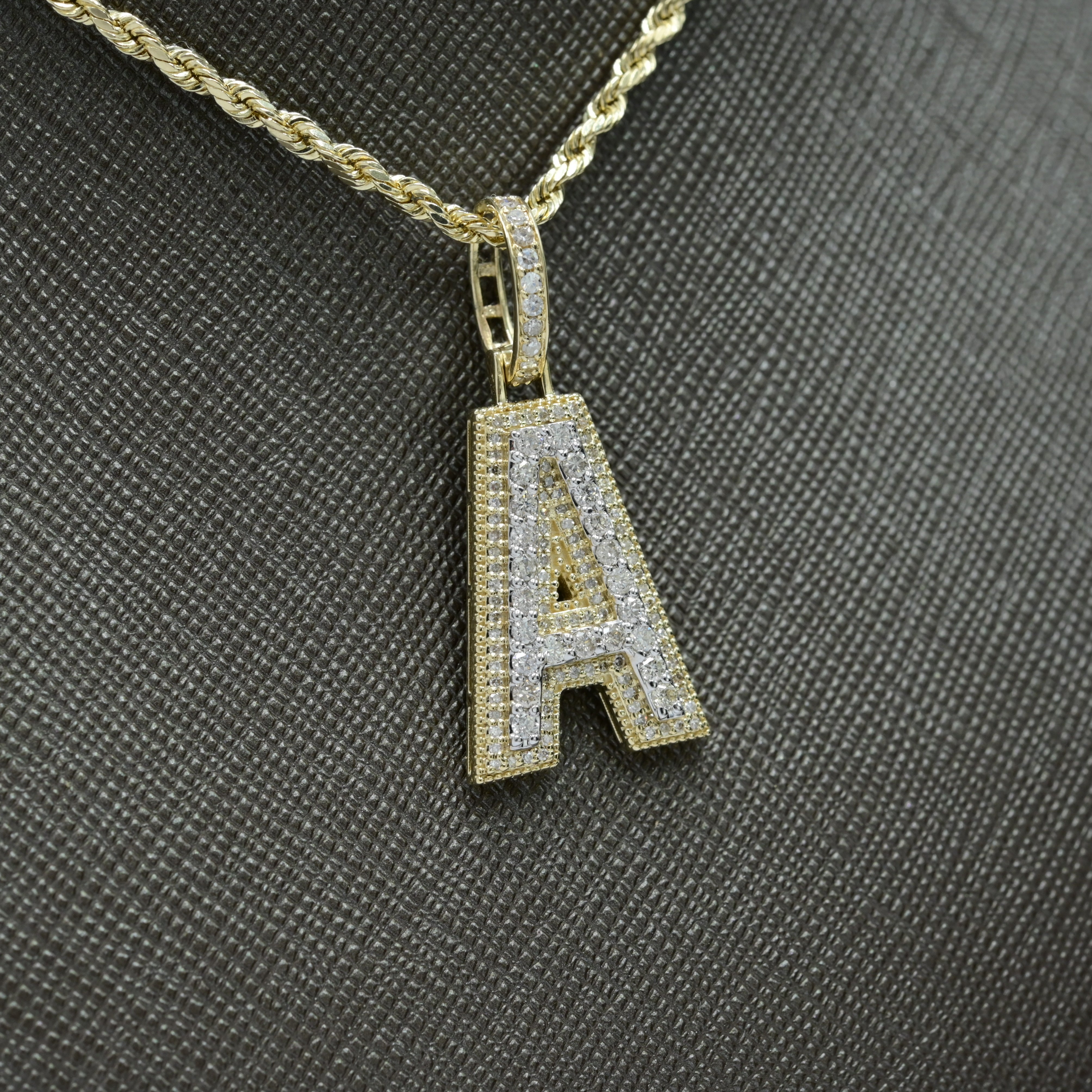 10k Yellow Gold 0.85CTW Natural Diamond Initial Letter "A" Pendant 3.5g Charm.