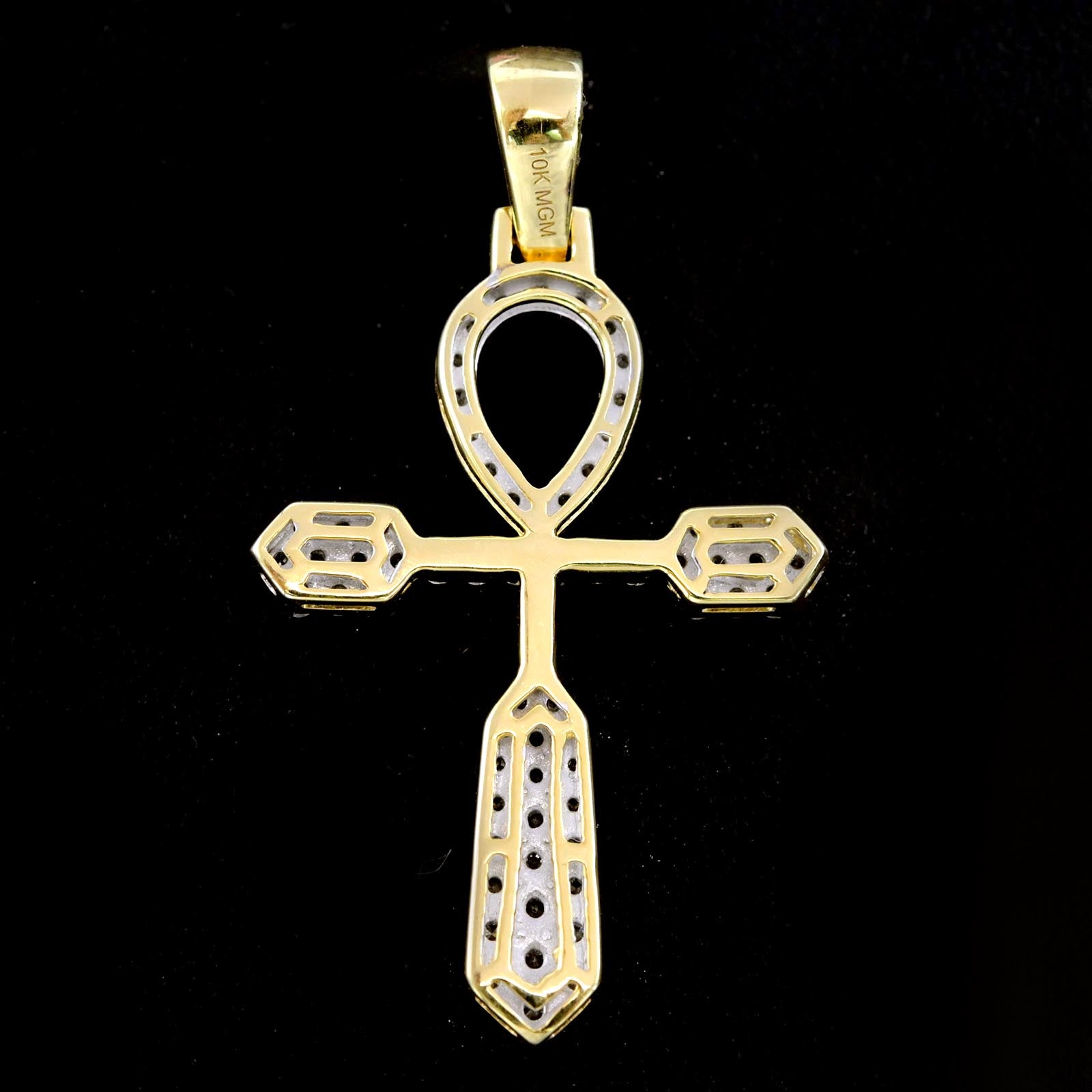 Assert your faith with this masculine 10k yellow gold cross pendant, a refined religious charm designed for the modern gentleman. Weighing just 3.4 grams, this understated yet meaningful piece features 0.95 carats of natural single cut diamonds that provide subtle sparkle without overwhelming the classic cross design. The warm yellow gold creates a timeless aesthetic, while the diamond accents add sophistication and depth. An excellent choice for men seeking a spiritual pendant that balances devotional significance with refined simplicity and premium craftsmanship.