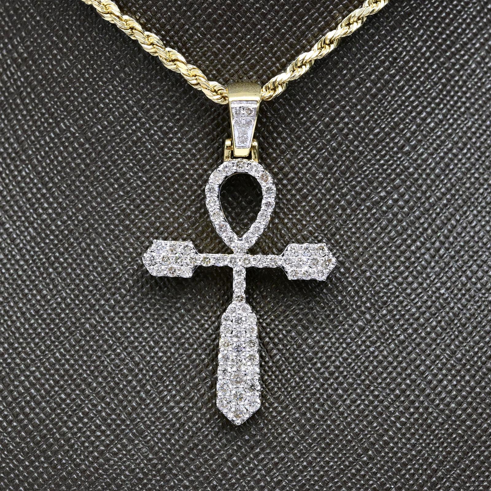10k Yellow Gold 0.95CTW Natural Single Cut Diamond Cross Pendant 3.4g Men Charm .