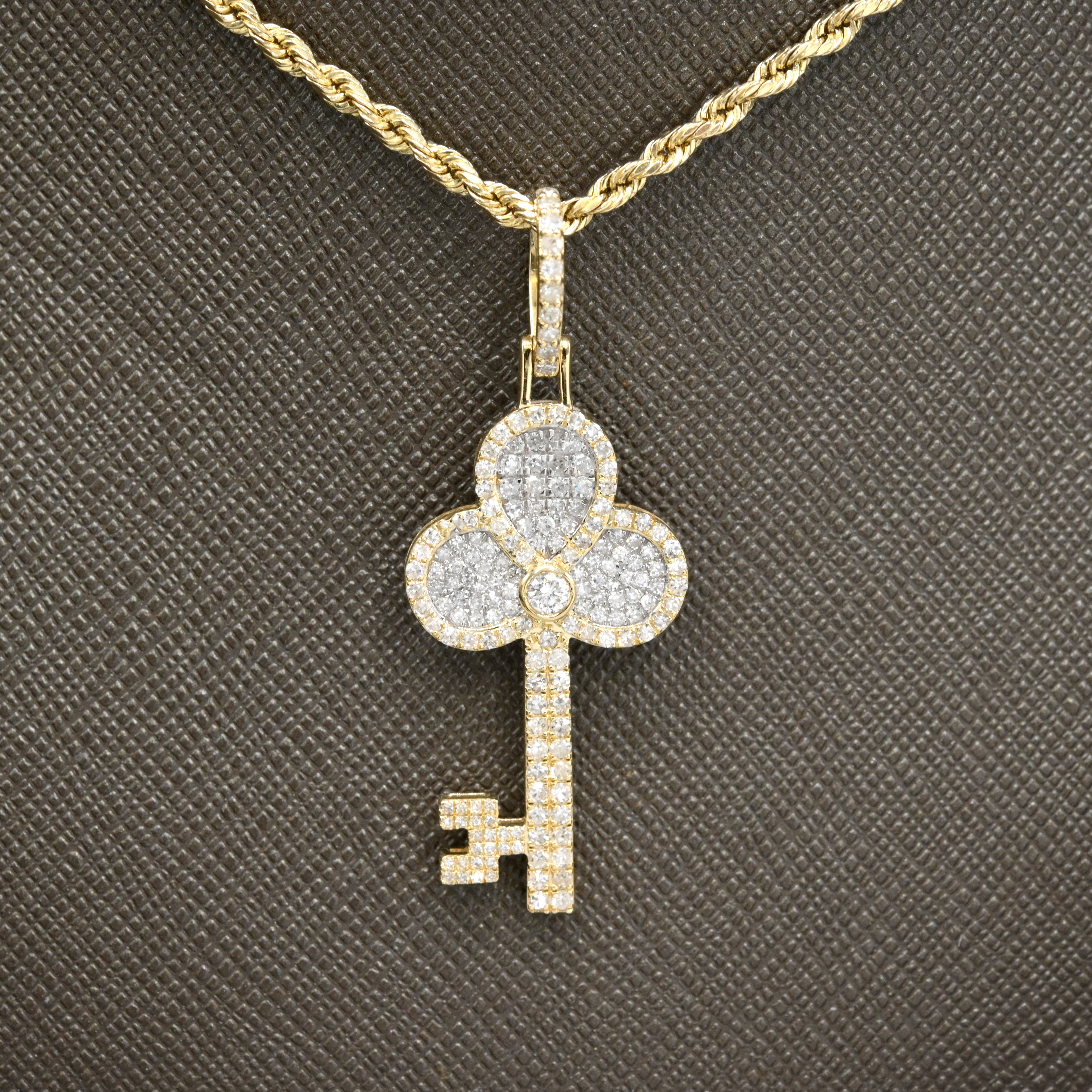 10k Yellow Gold 0.9CTW Natural Round Diamond Key Shape Pendant 2.9g Charm.