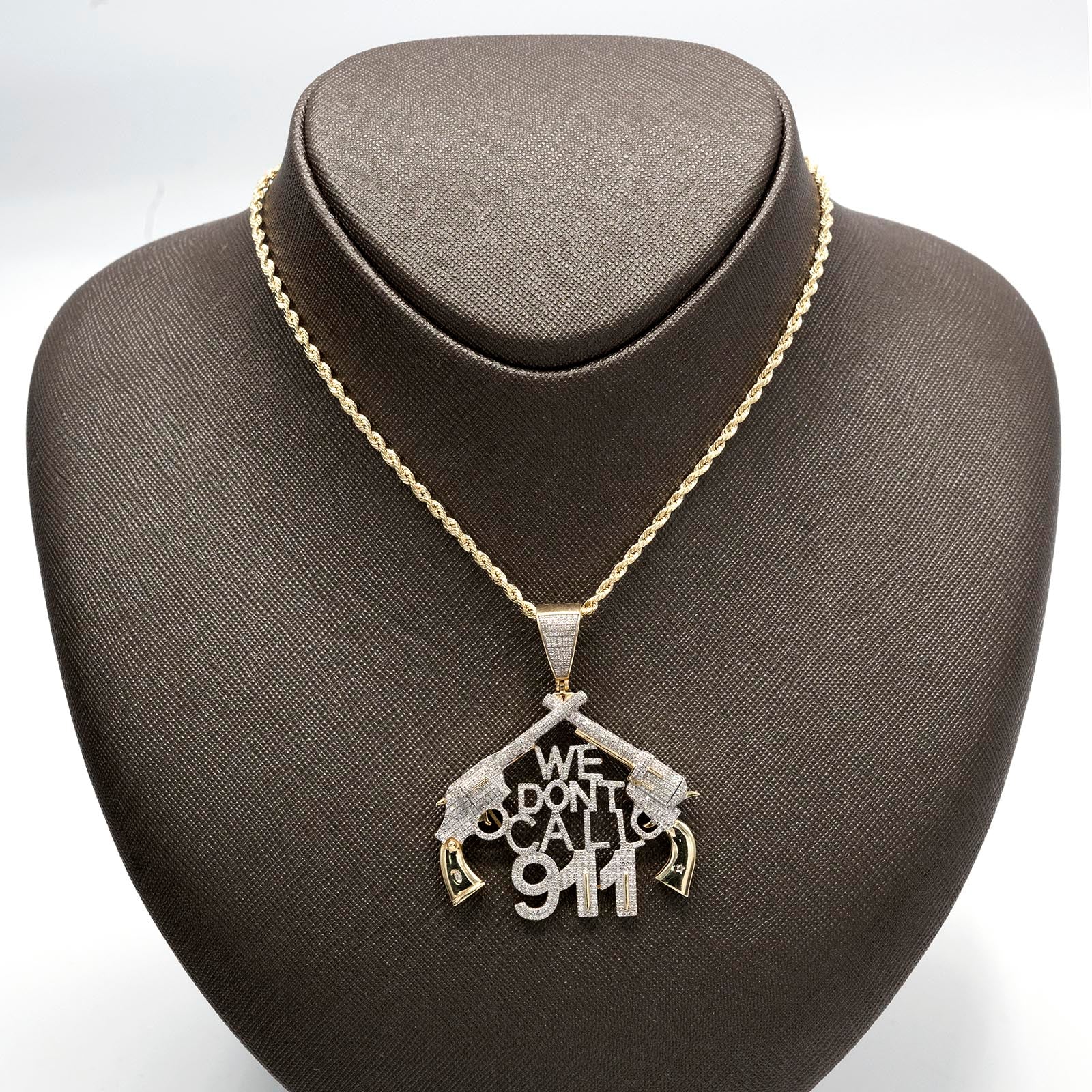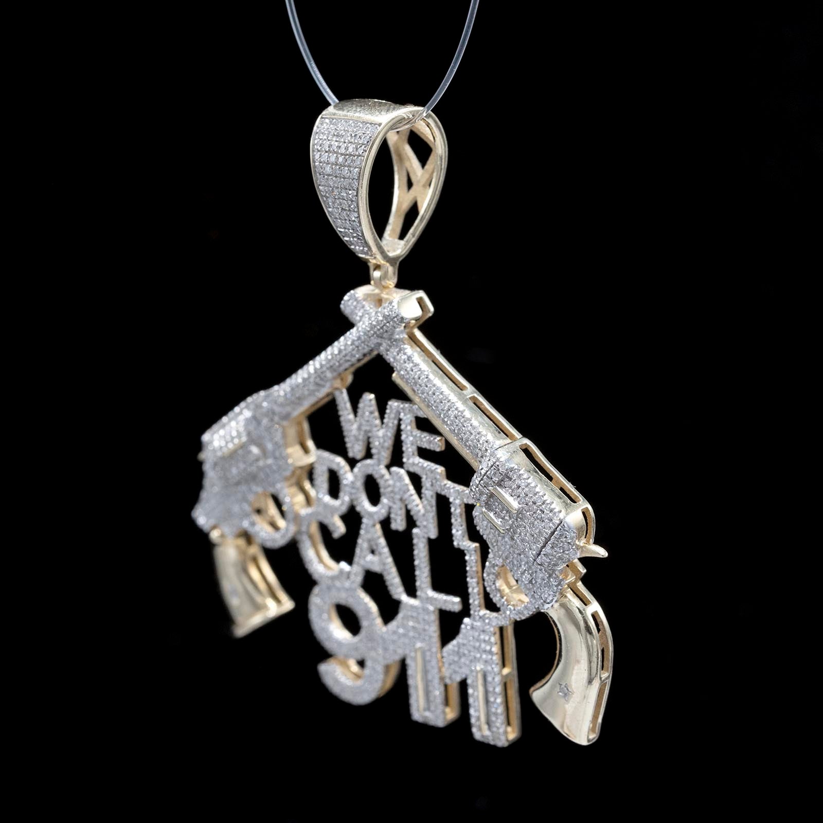 10k Yellow Gold 1.05CTW Natural Round & Baguette Diamond Gun Pendant 9.6g Charm.