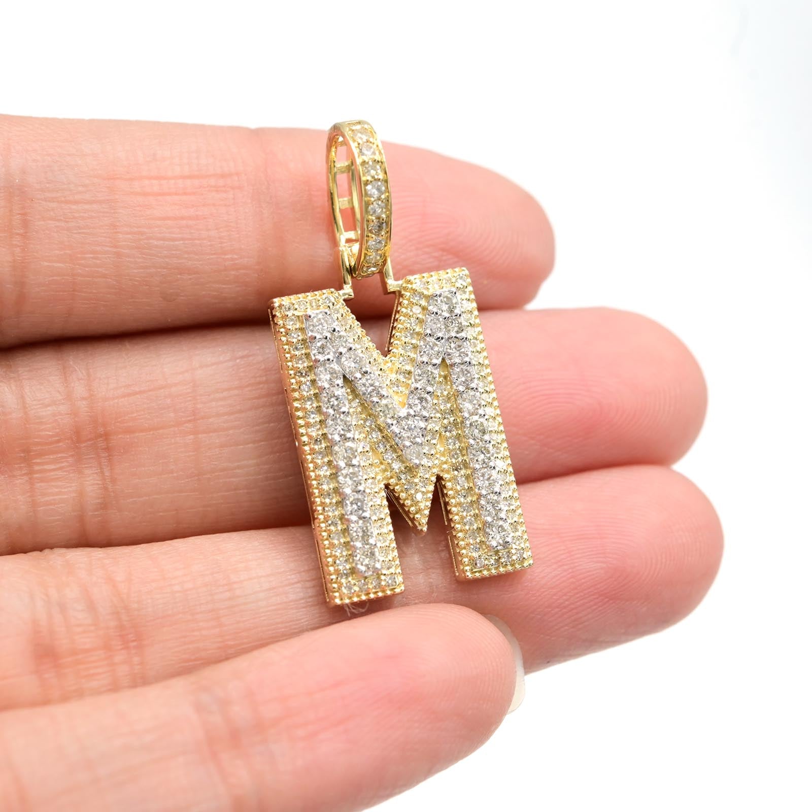 10k Yellow Gold 1.1 CTW Natural Diamond Initial "M" Pendant 4.1g Alphabet Charm.
