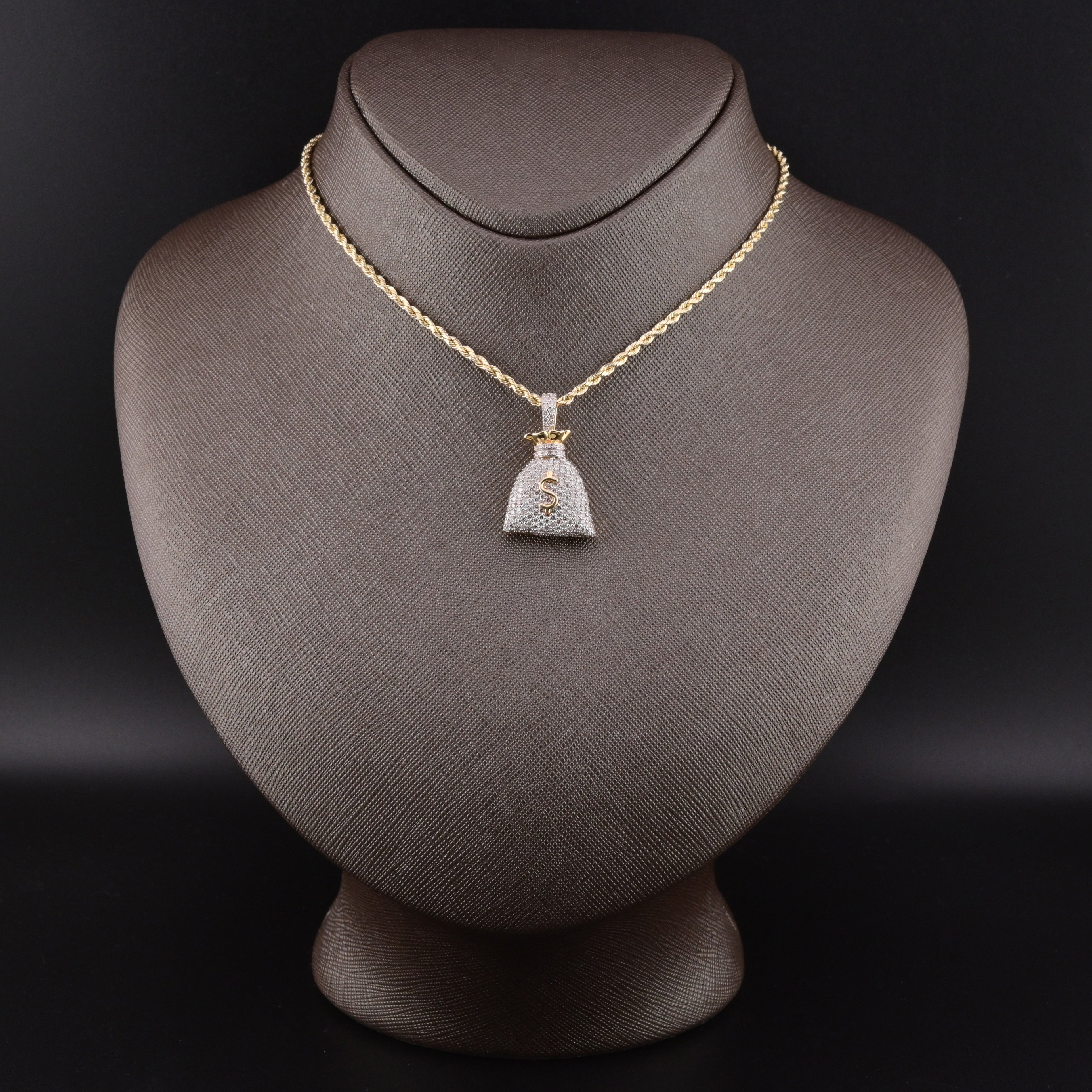 10k Yellow Gold 1.48CTW Natural Round Diamond Money Bag Pendant 6.3g Charm.