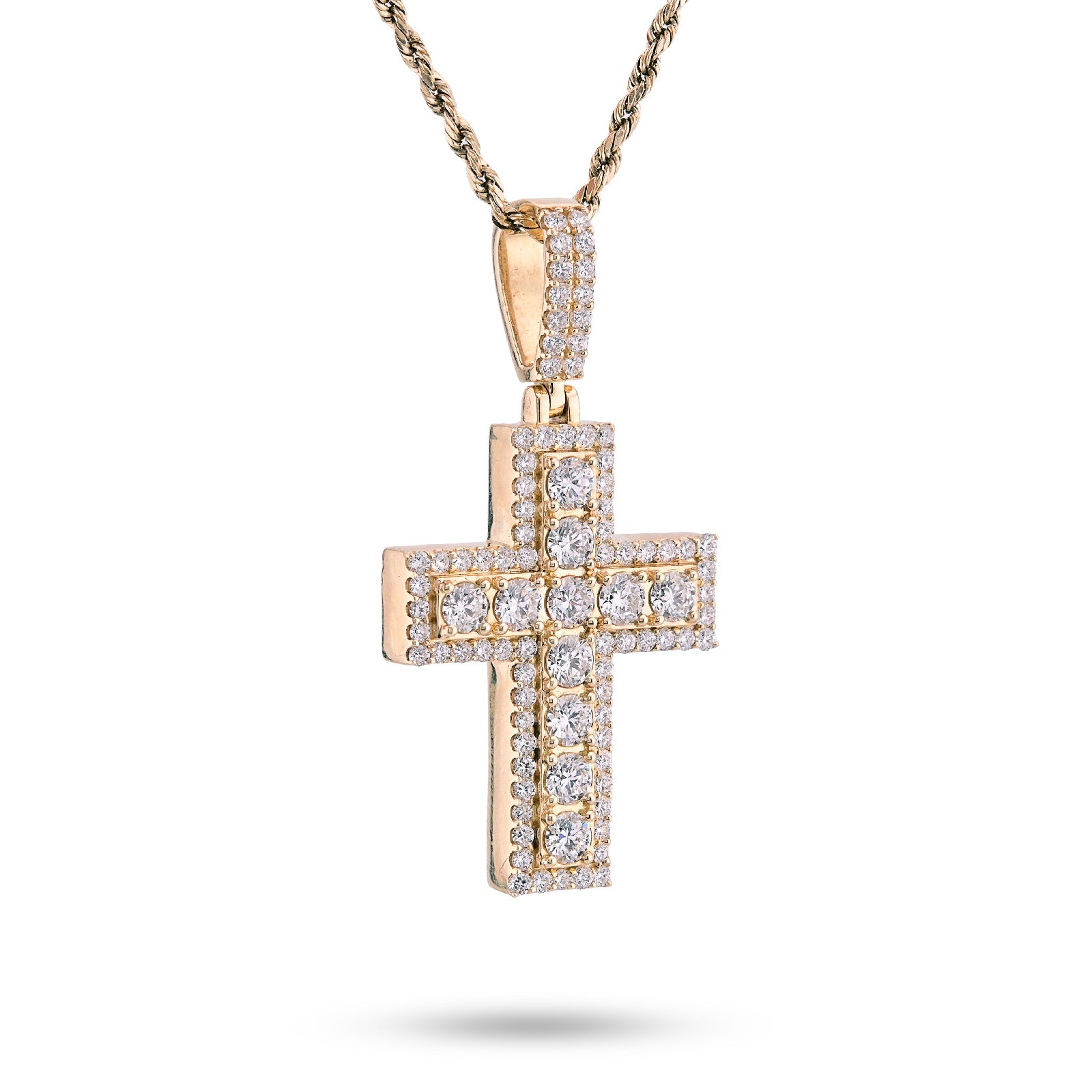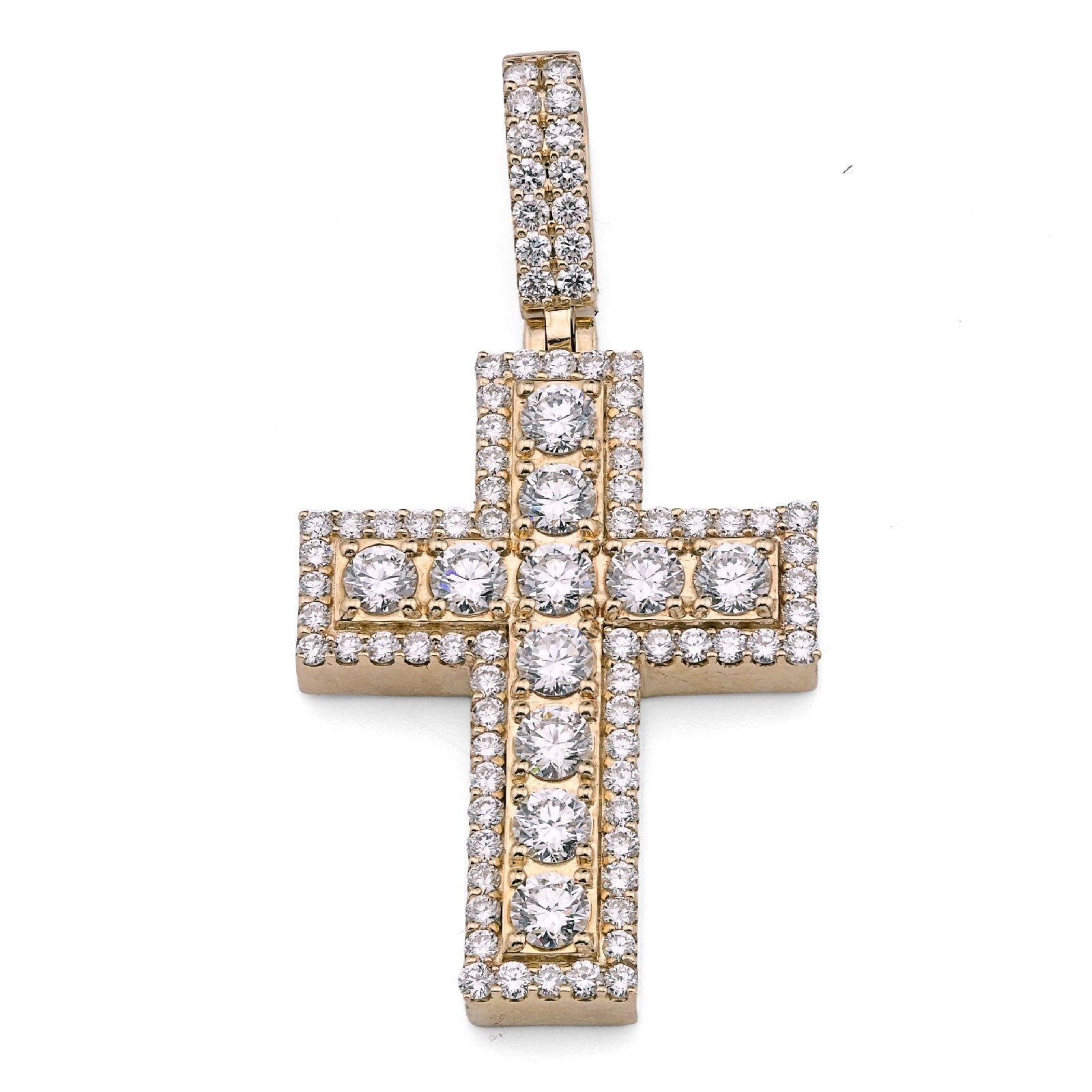 Make a bold statement with this commanding 10k yellow gold cross pendant, weighing 12.1 grams of substantial elegance. Featuring 4.23 carats of lab-grown diamonds, this big pointer cross design radiates brilliance and contemporary sophistication. The lab-grown diamonds offer exceptional clarity and sparkle while providing an ethical, sustainable choice. Perfect as a standalone pendant or charm addition, this piece combines spiritual significance with luxurious craftsmanship for those who appreciate refined, meaningful jewelry.