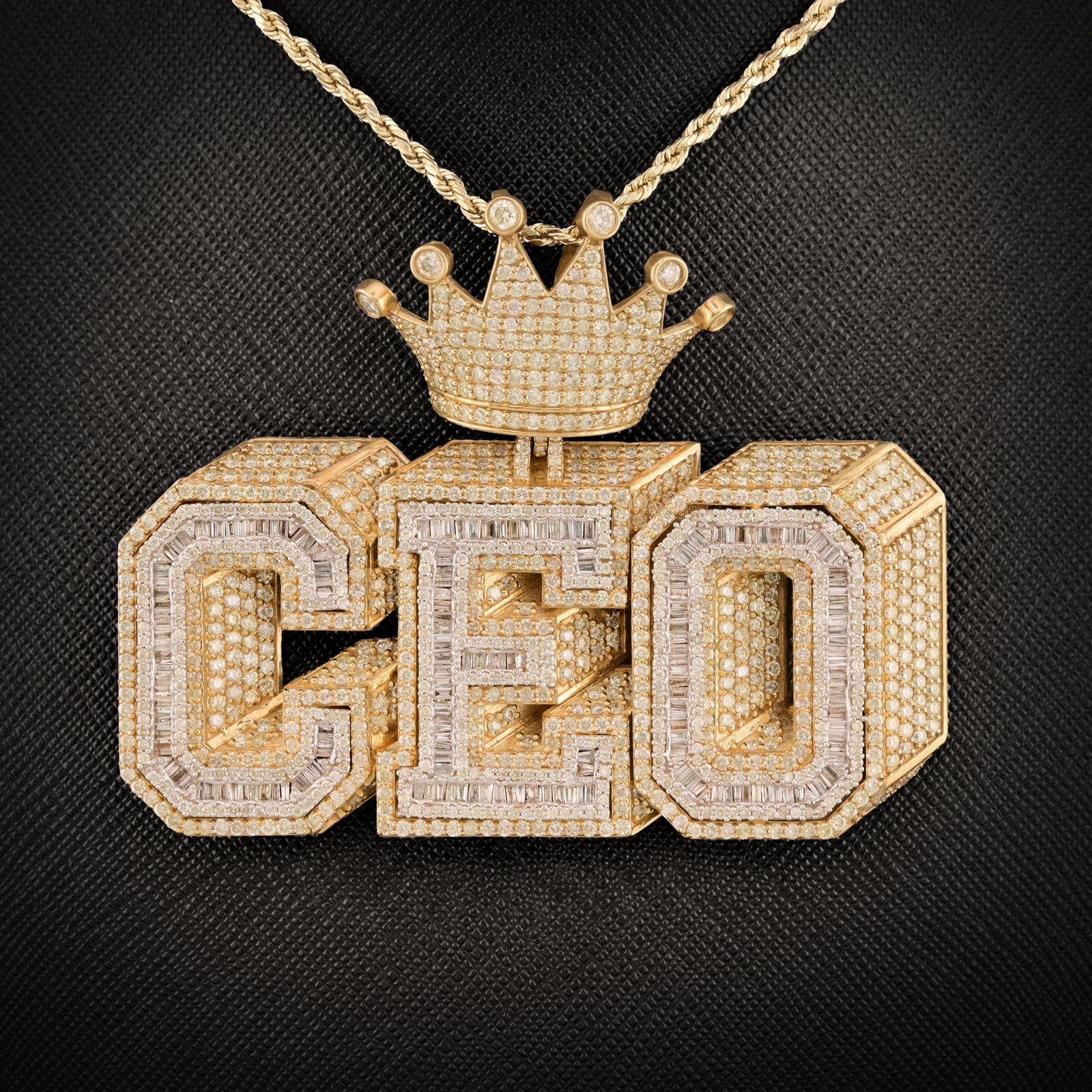 10k Yellow Gold 16CTW Round/Baguette Diamond CEO w/ Crown Bail Pendant 46.8gms.
