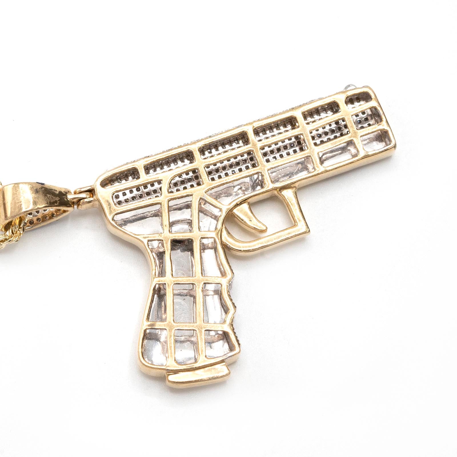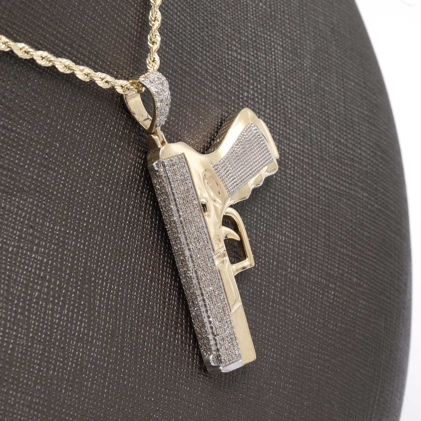 10k Yellow Gold 1CTW Natural Round Diamond Hanging Gun Pendant 11.1g Mens Charm.