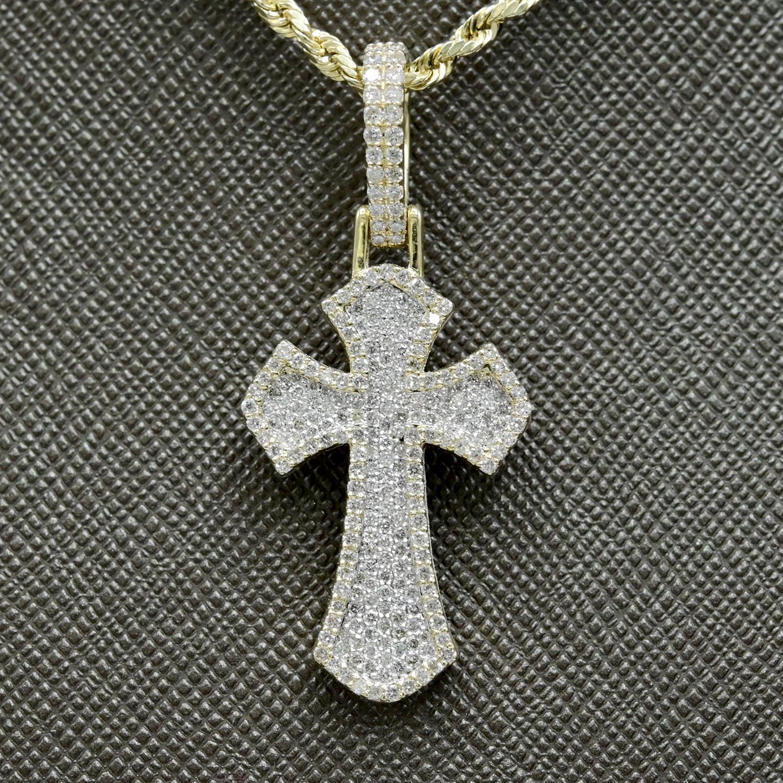 Wear your convictions with this distinguished 10k yellow gold cross pendant, a masculine religious charm that speaks to personal faith and refined taste. Weighing 4.5 grams, this substantial yet wearable piece features 1 carat of natural single cut diamonds that deliver understated brilliance across the sacred cross form. The warm yellow gold provides a classic foundation, while the diamond setting adds sophistication without excessive ornamentation. Perfect for men seeking a meaningful spiritual pendant that honors devotion through timeless design and premium gemstone artistry.