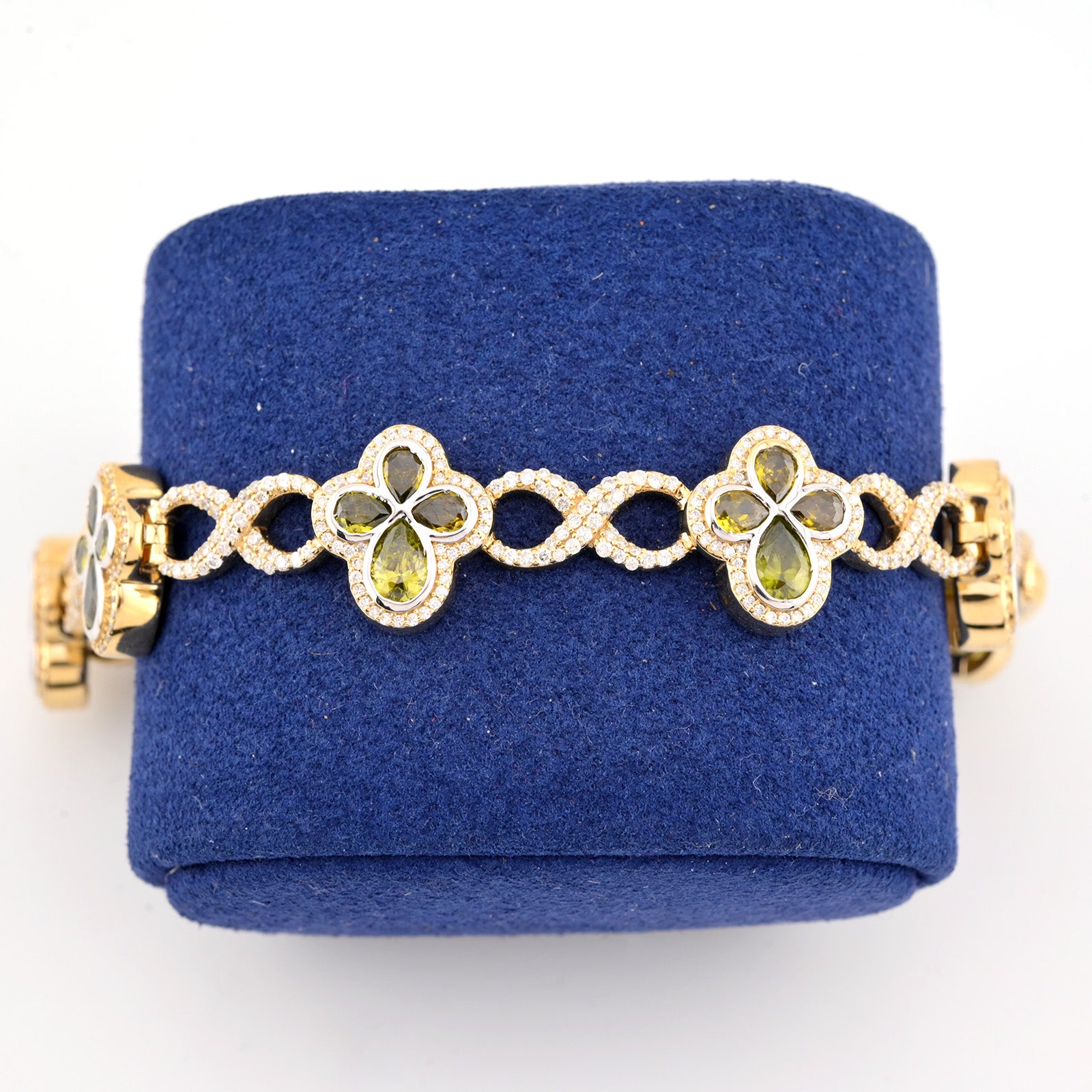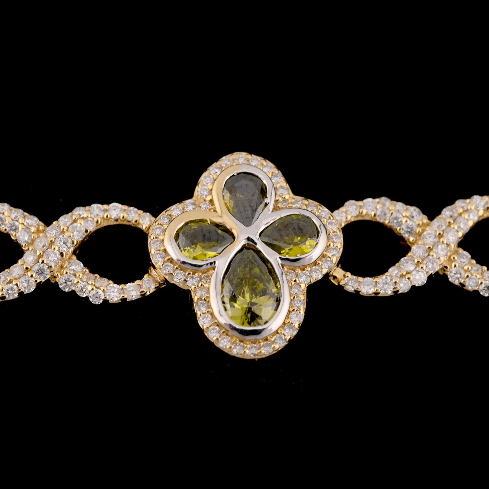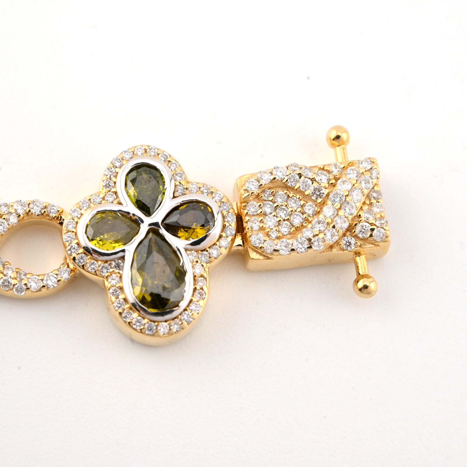 Crafted in lustrous 10k yellow gold, this elegant bracelet features an enchanting array of symbolic motifs—crosses, clovers, and infinity signs—each adorned with 2.8 carats of sparkling natural diamonds. At 27.6 grams and 8 inches in length, this substantial piece delivers refined sophistication with meaningful design elements. The interplay of gold and diamond brilliance creates a captivating aesthetic perfect for those who appreciate both artistry and gemstone excellence. A versatile treasure that transitions seamlessly from everyday eleg
