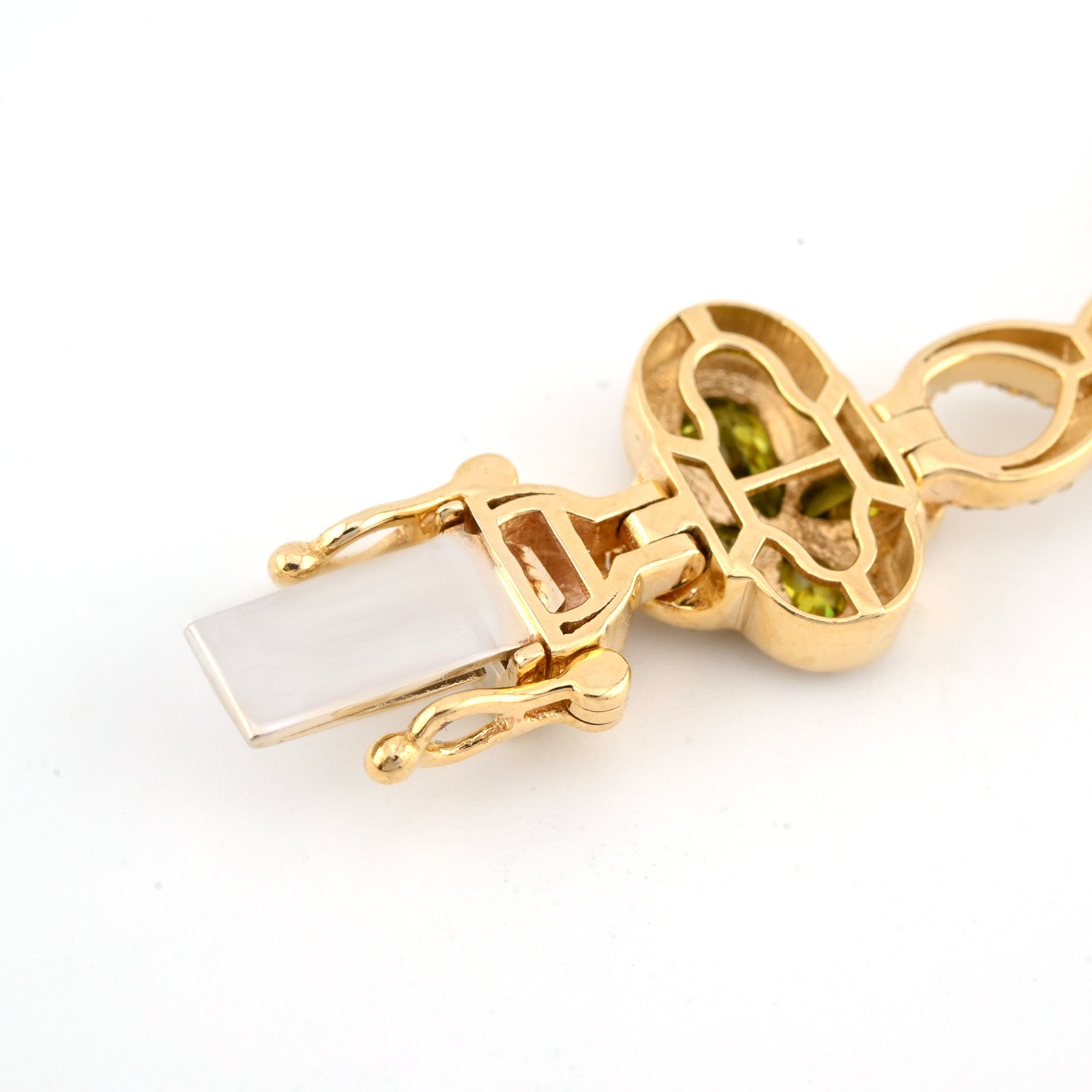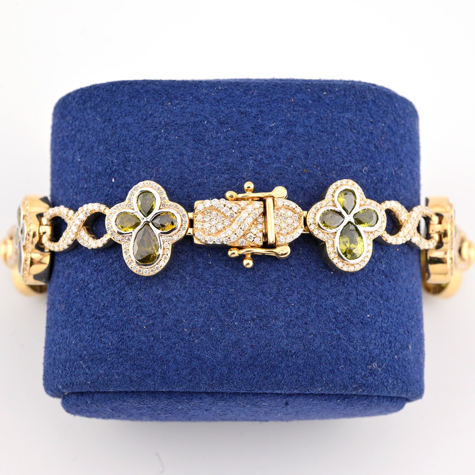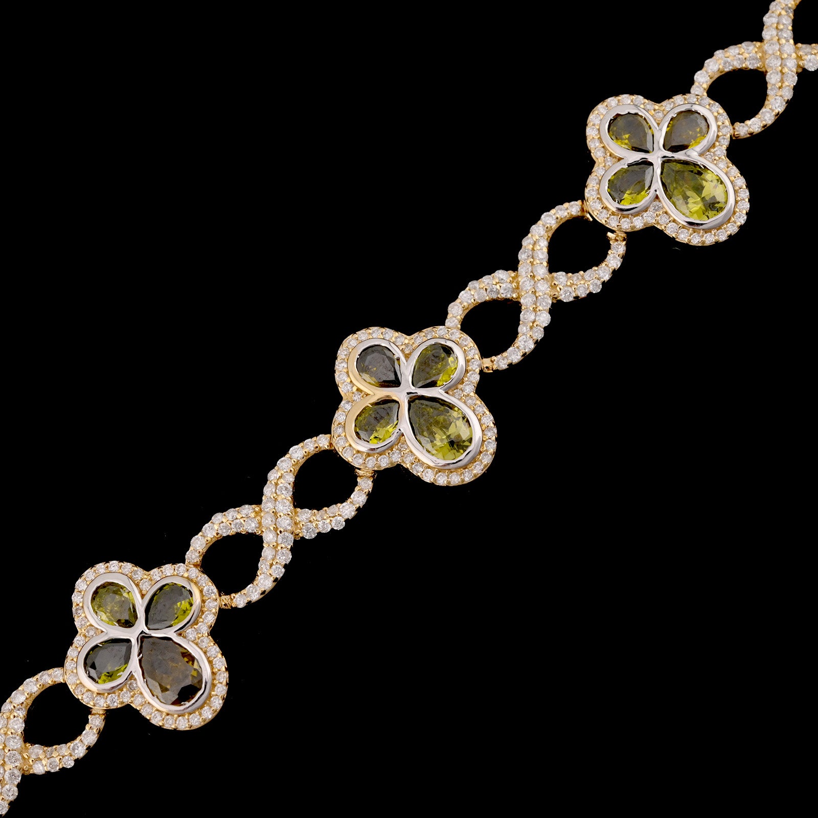 Crafted in lustrous 10k yellow gold, this elegant bracelet features an enchanting array of symbolic motifs—crosses, clovers, and infinity signs—each adorned with 2.8 carats of sparkling natural diamonds. At 27.6 grams and 8 inches in length, this substantial piece delivers refined sophistication with meaningful design elements. The interplay of gold and diamond brilliance creates a captivating aesthetic perfect for those who appreciate both artistry and gemstone excellence. A versatile treasure that transitions seamlessly from everyday eleg