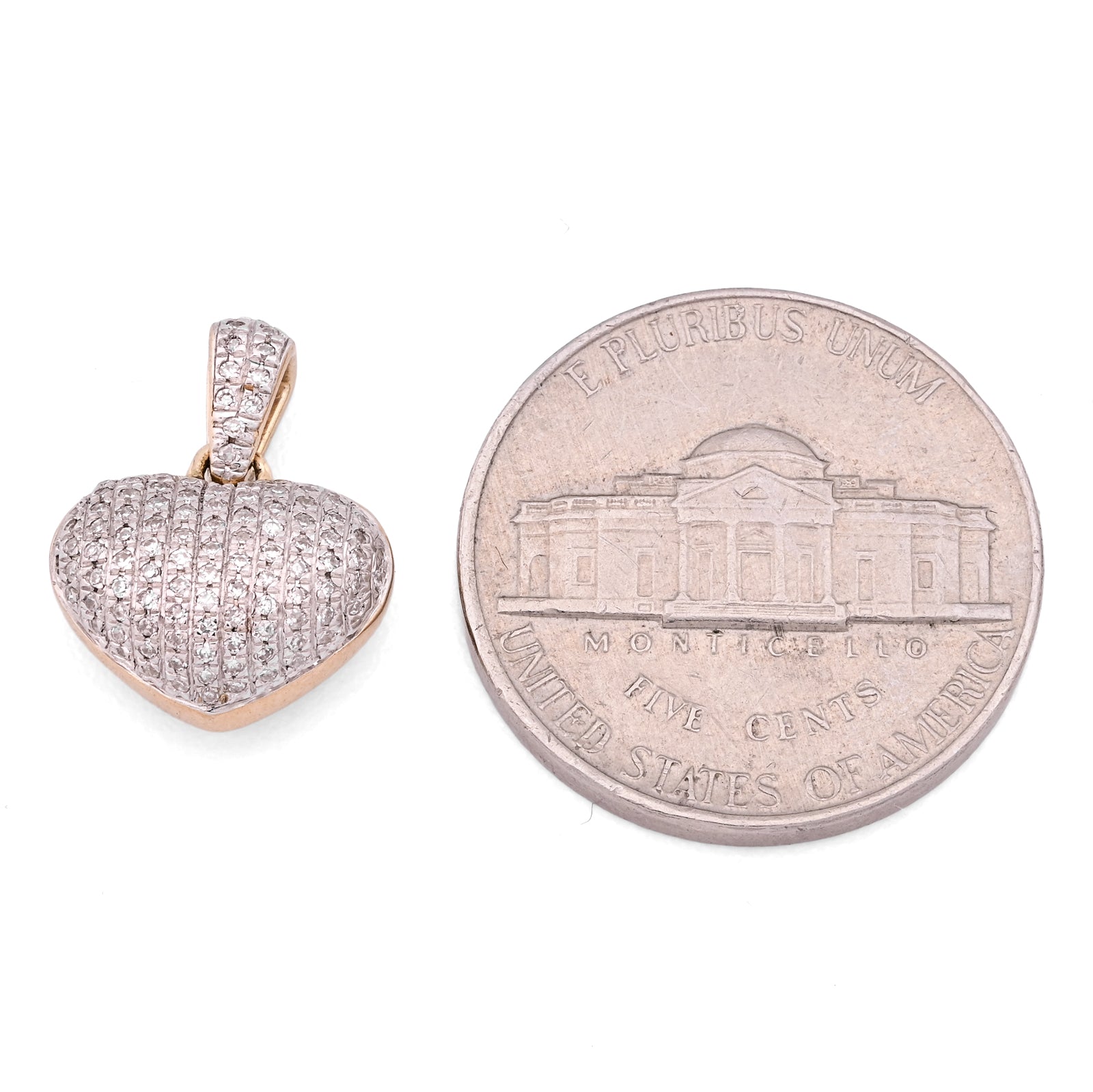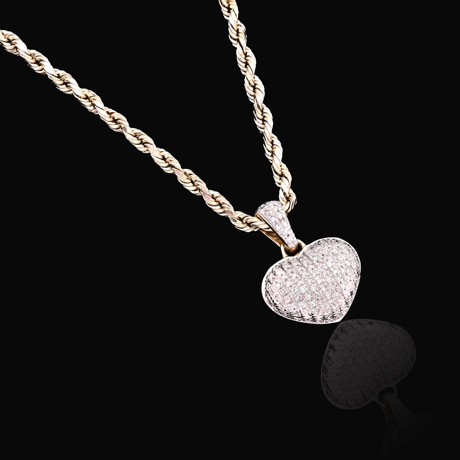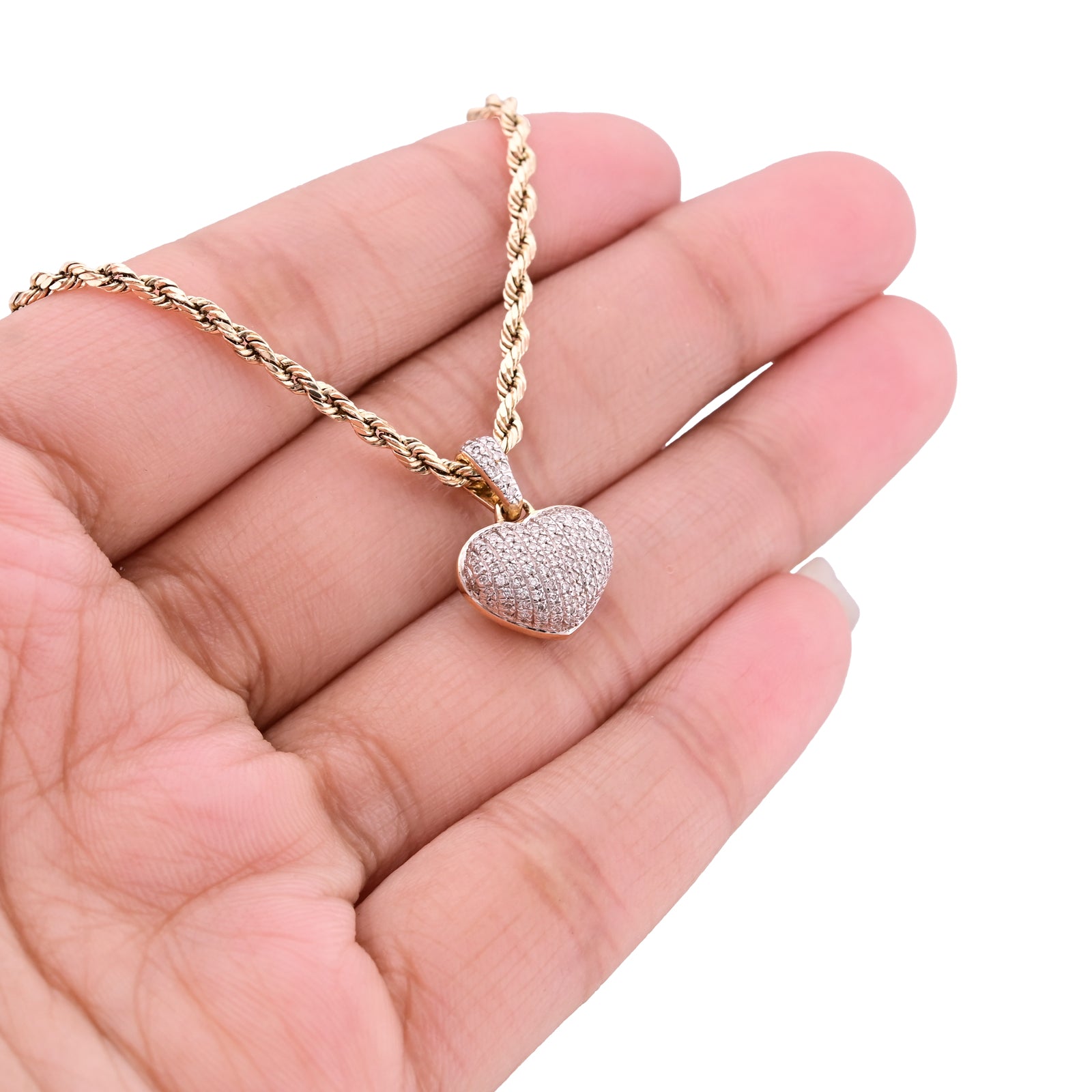 Romantic and refined, this puffed heart pendant celebrates elegance through dimensional design and genuine sparkle. Crafted in 10k yellow gold and weighing a delicate 2 grams, the piece showcases 1 carat of natural diamonds that radiate warmth against the rich gold backdrop. The signature puffed silhouette creates a three-dimensional presence that catches light beautifully, while the generous diamond weight ensures substantial brilliance in a compact form. Perfect for the modern woman seeking timeless femininity with understated luxury, this charm pendant transitions effortlessly from everyday wear to special occasions, embodying both sentiment and sophistication.