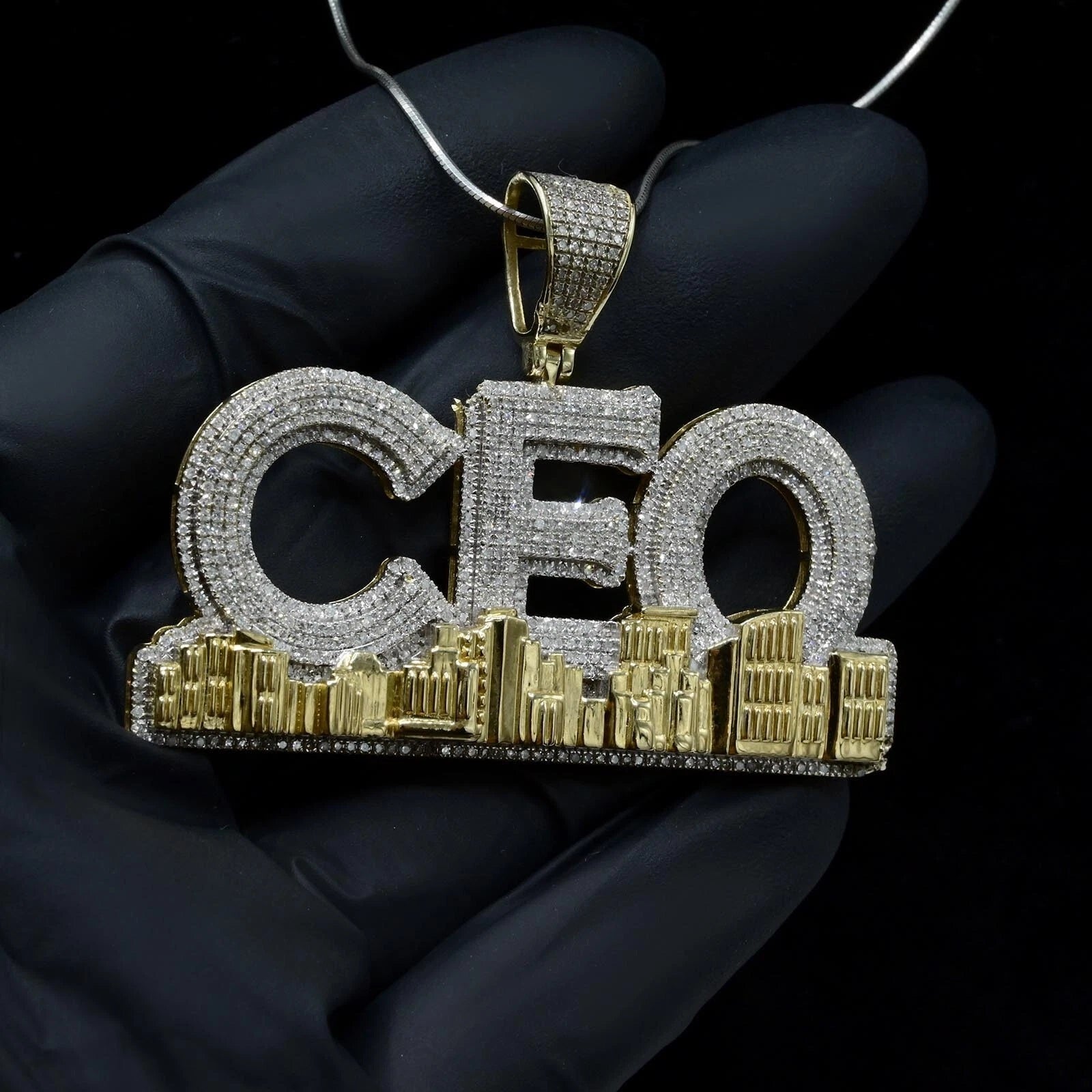 This 10k Yellow Gold 3.51 CTW Diamond "CEO" Gold Sky Line Pendant is a stunning men's charm pendant perfect for various occasions such as anniversaries, weddings, birthdays, and special holidays like Father's Day and Mother's Day. The pendant features a unique CEO shape with a polished finish and is adorned with 3.51 carats of natural H-I color diamonds. Crafted from 10k yellow gold, this pendant is both stylish and meaningful, representing themes of business, hip hop, and money. It comes with a complimentary SB Signature jewelry box and is professionally tested and stamped for authenticity. Ideal for the modern man looking to make a statement with his accessories.