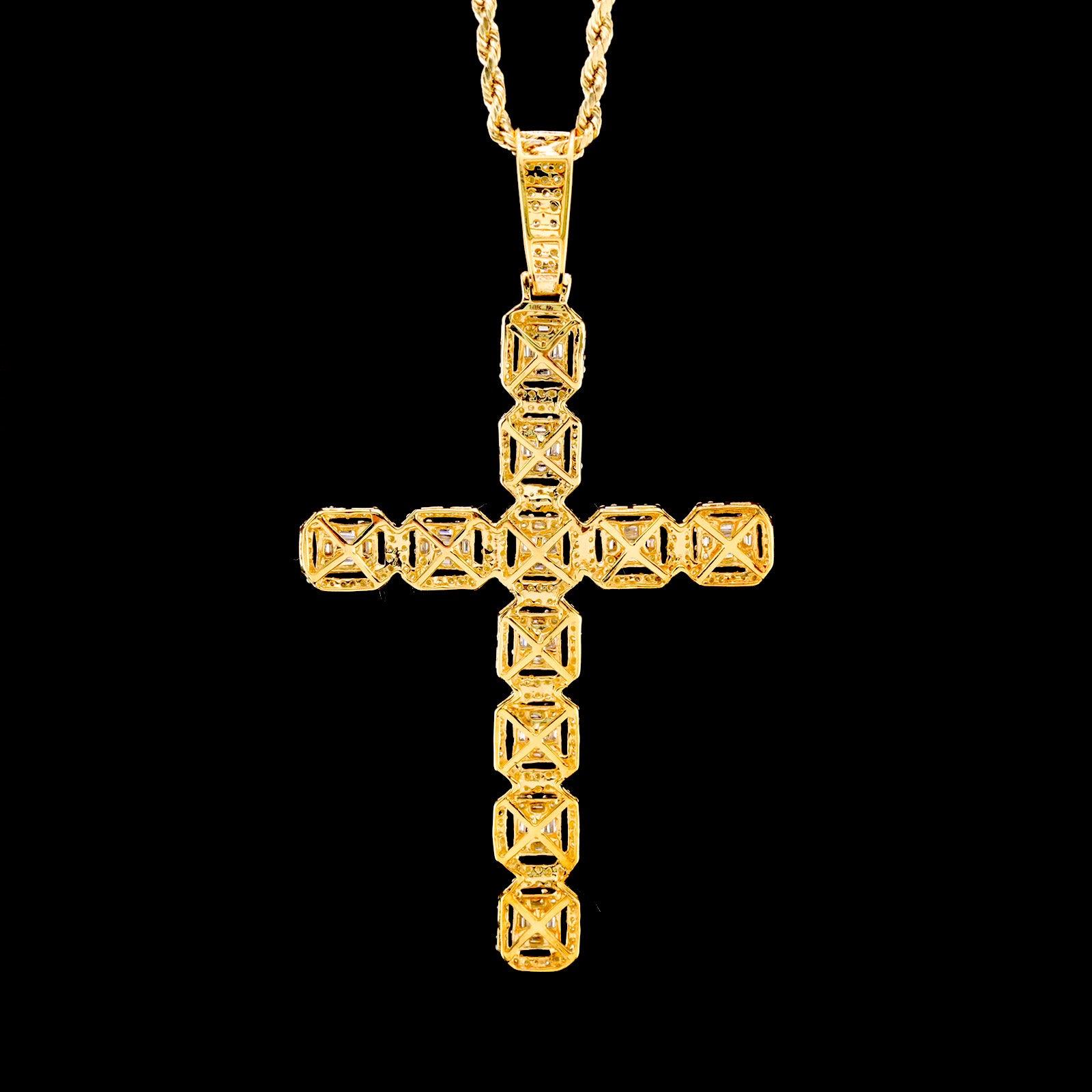 Crafted in 10k yellow gold, this cross pendant charm features 3.5 carats total weight of natural baguette diamonds, offering a striking balance of elegance and brilliance. Weighing 7.7 grams, its refined design highlights the baguette-cut stones, providing a sophisticated touch ideal for both everyday wear and special occasions.