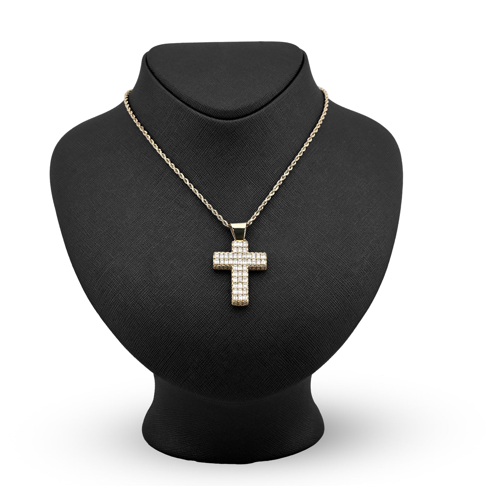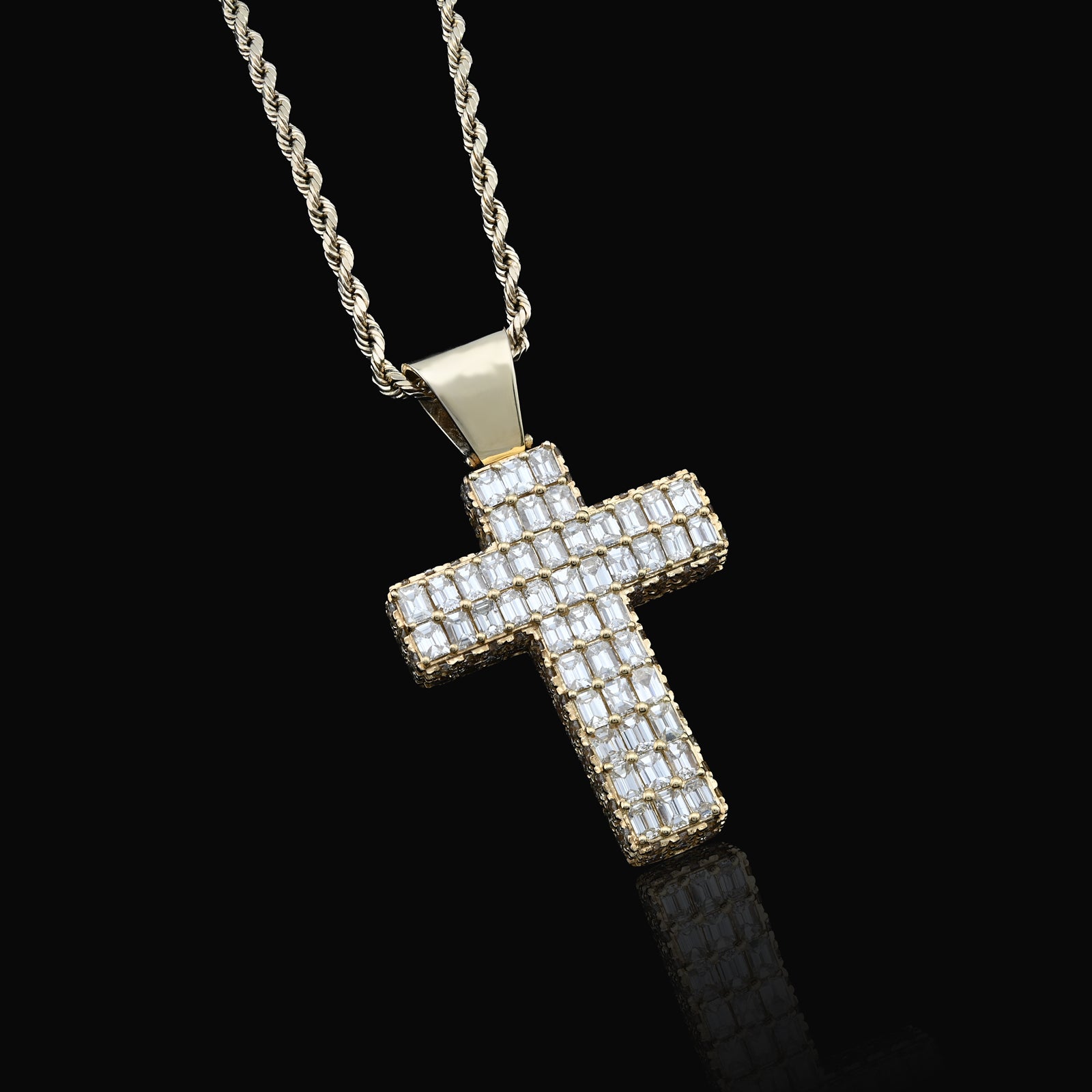 Elevate your jewelry collection with this exquisite 10k yellow gold cross pendant, a timeless symbol of faith and elegance. Featuring 3.5 carats of natural diamonds in both round and baguette cuts, this piece showcases brilliant sparkle and refined craftsmanship. Weighing 12.3 grams, the substantial 10k gold construction ensures durability and lasting beauty. Perfect as a meaningful gift or personal treasure, this cross pendant combines spiritual significance with sophisticated style, making it an heirloom-worthy addition to any jewelry wardrobe.