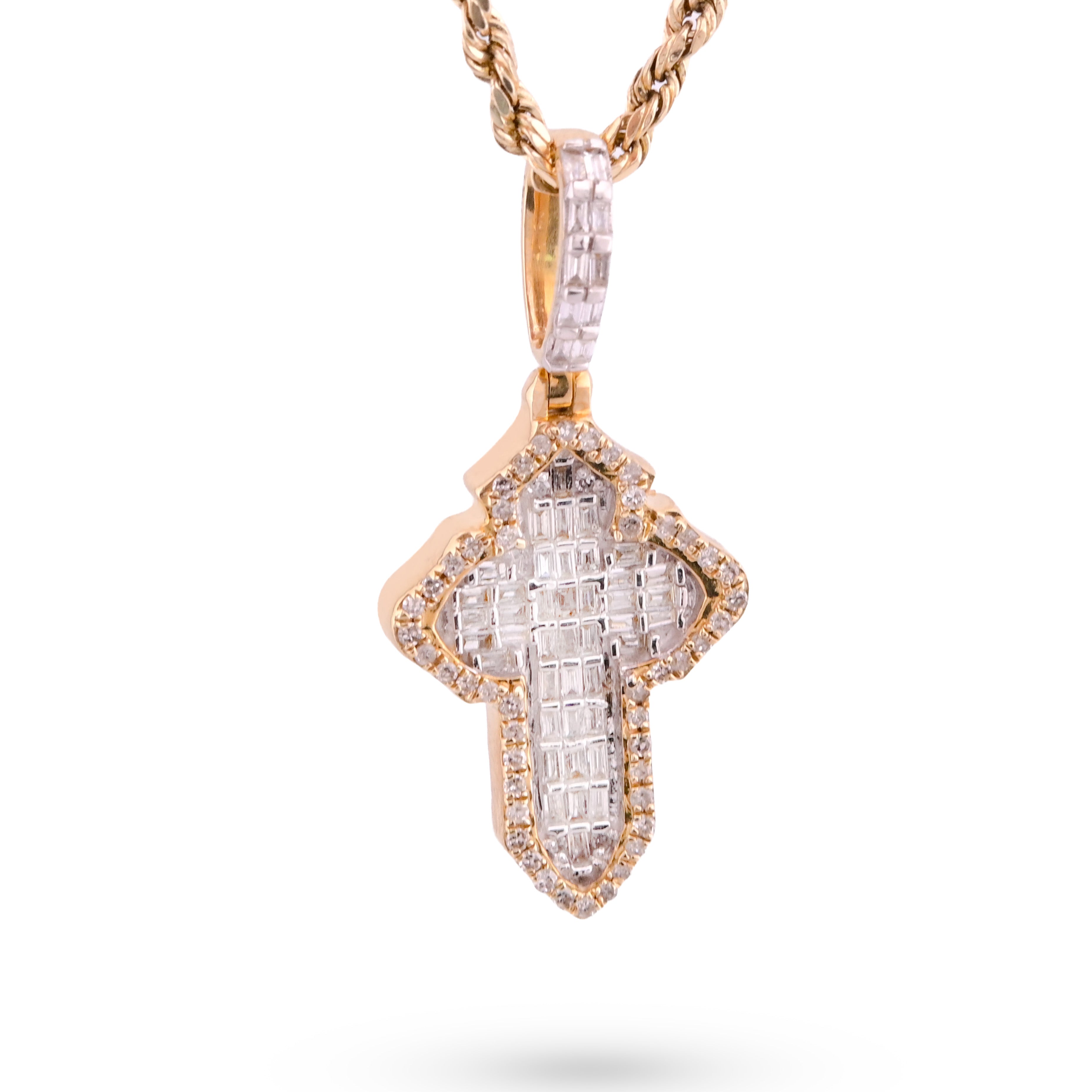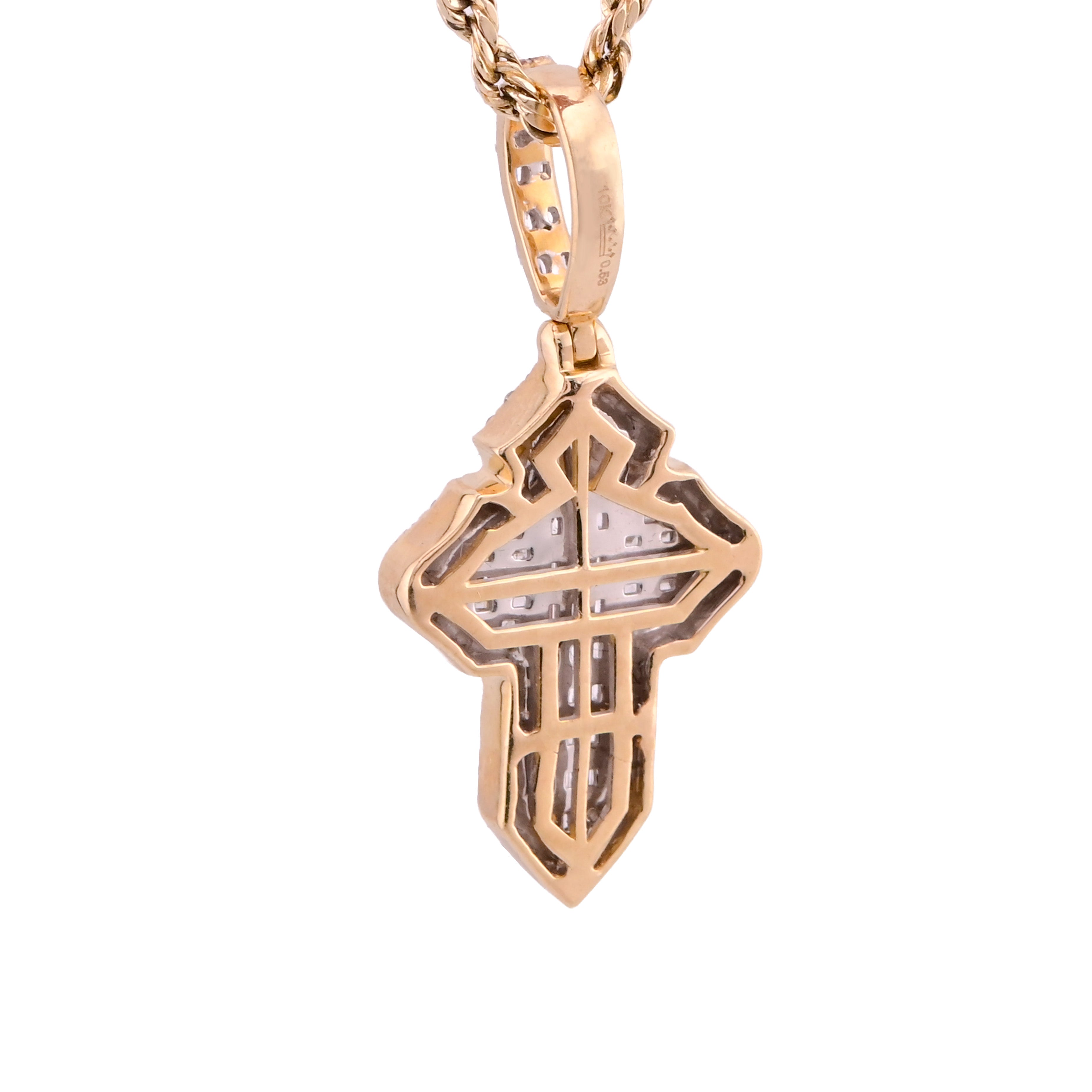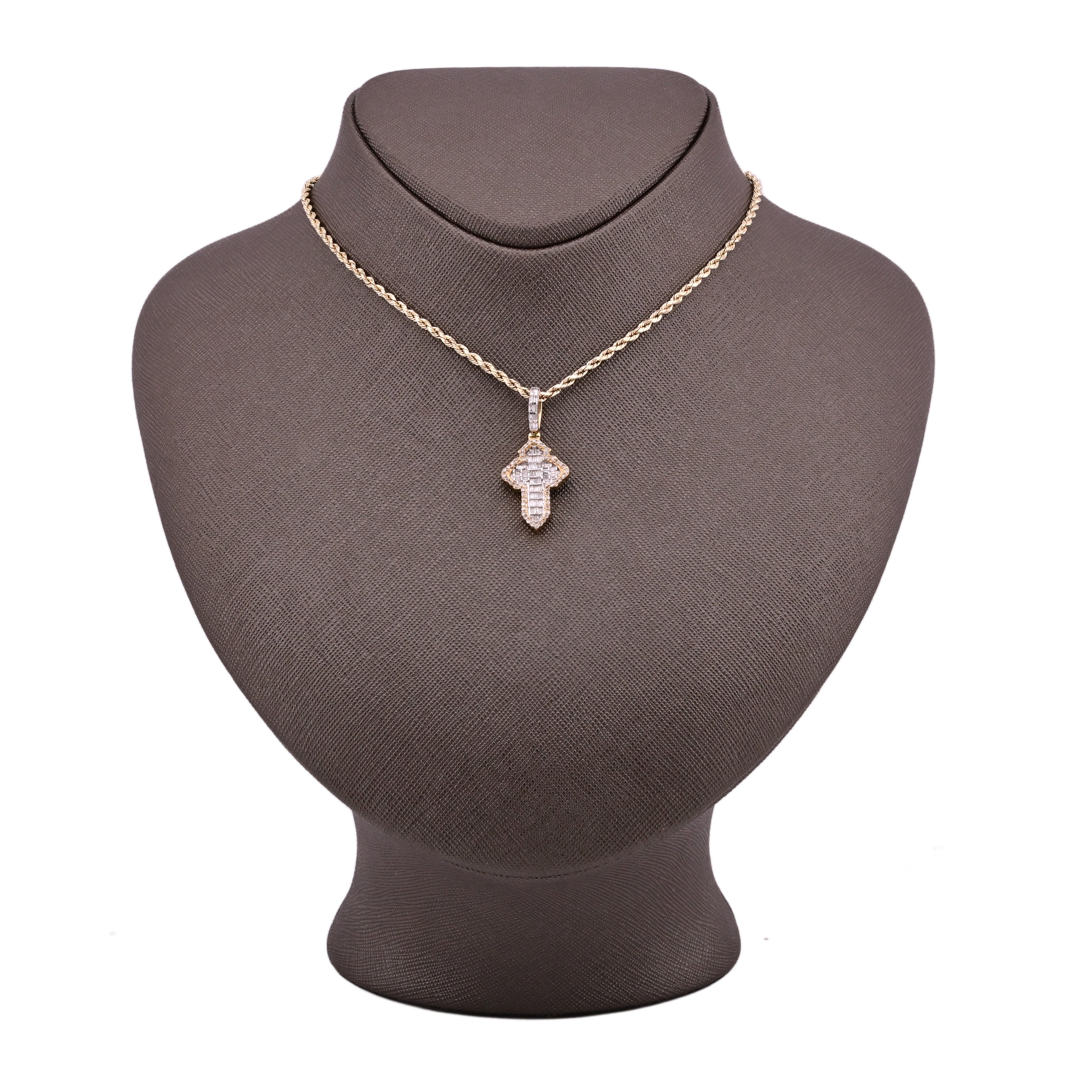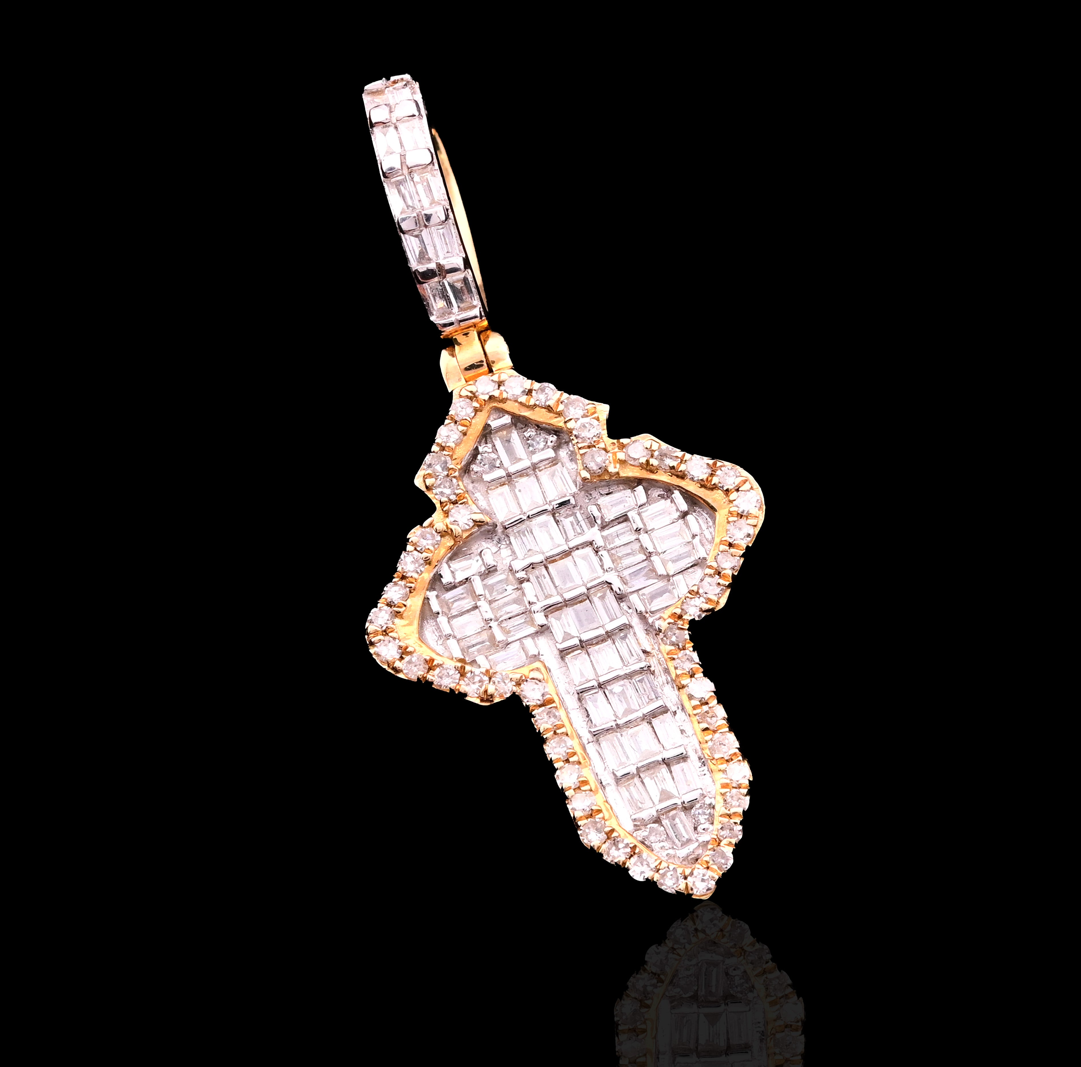 Radiate spiritual elegance with this stunning cross pendant charm in warm 10k yellow gold. Featuring a captivating 0.53-carat combination of round and baguette natural diamonds, this refined piece merges faith with exceptional sparkle and sophistication. Weighing 3.6 grams, its balanced proportions create a striking presence whether worn as a standalone pendant or treasured charm. An ideal selection for those seeking meaningful jewelry that honors their beliefs while showcasing brilliant craftsmanship and timeless beauty.