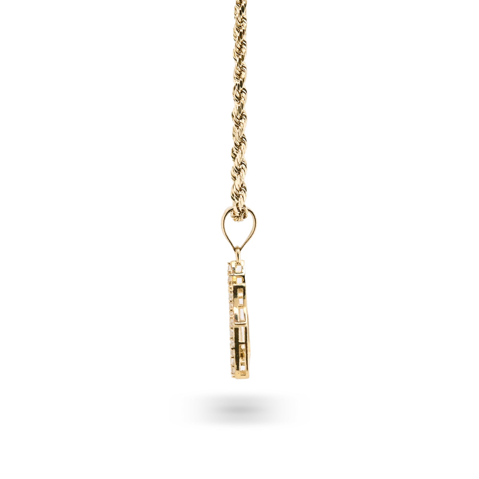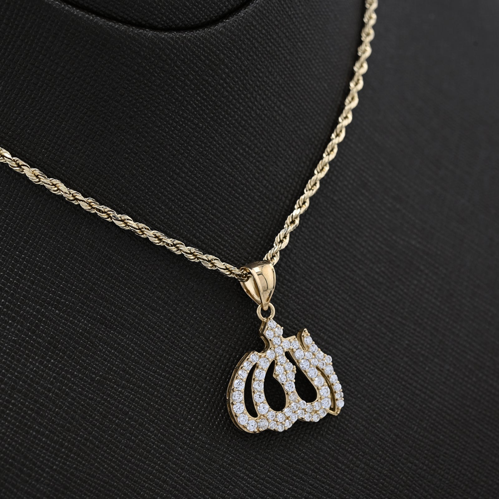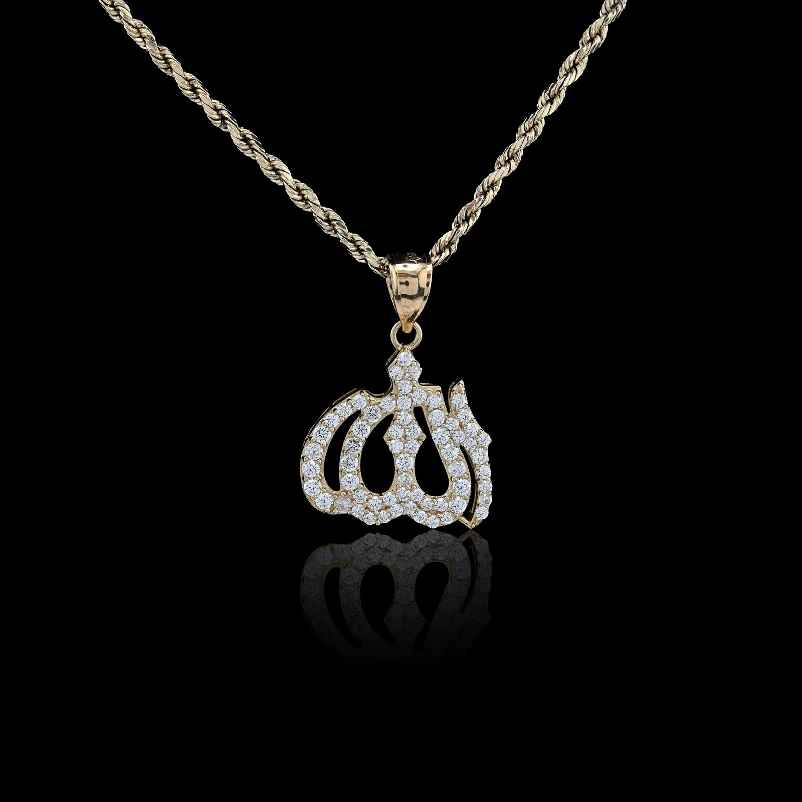 This meaningful 10k yellow gold pendant features the sacred Arabic inscription "Allah," crafted with reverent attention to detail. Weighing 2.6 grams, it offers substantial presence while remaining comfortable for daily wear. Designed for both men and women, this religious charm serves as a powerful expression of faith and devotion. The quality gold construction ensures durability and lasting beauty, making it an ideal piece for those seeking jewelry that honors their spiritual beliefs with quiet dignity and timeless elegance.