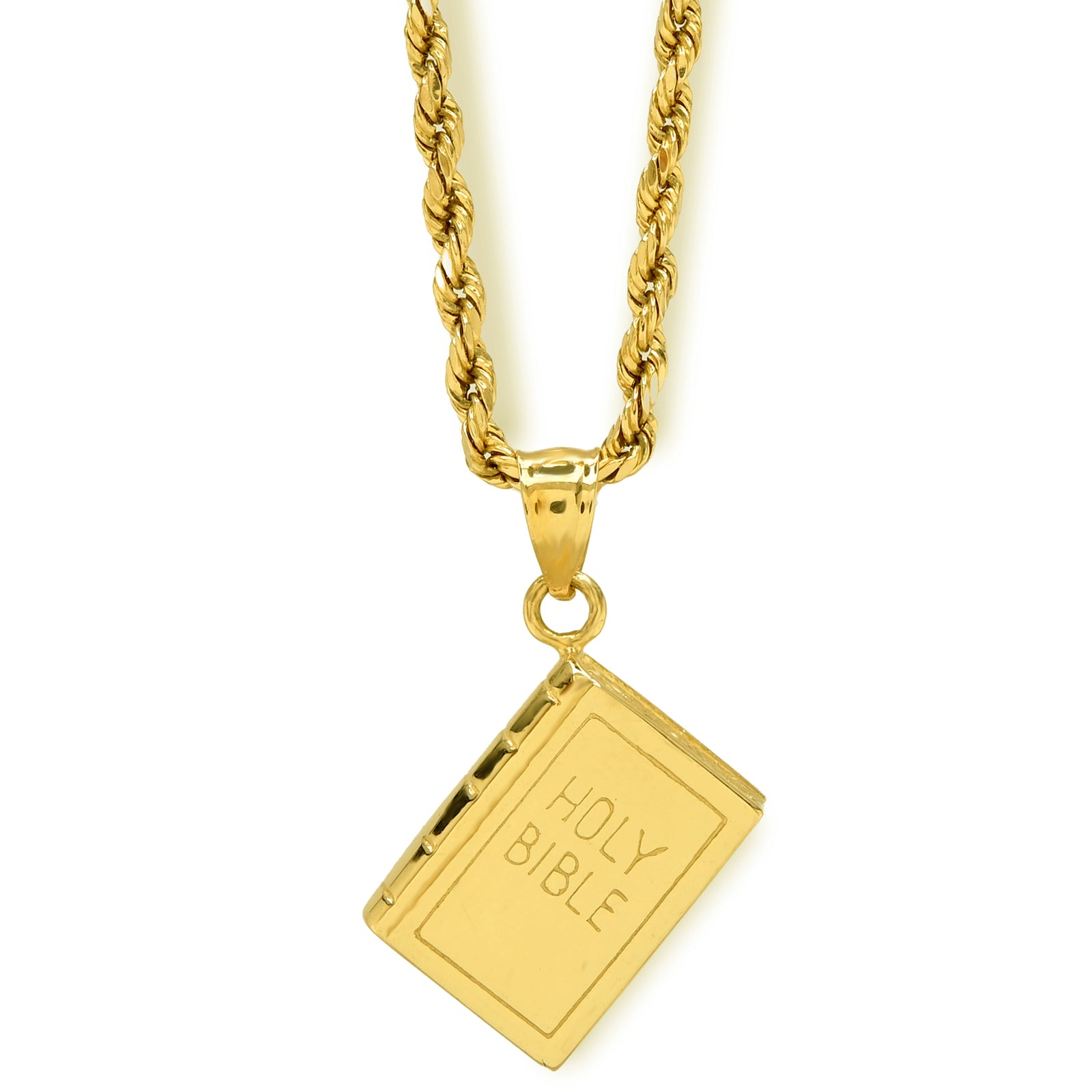 Carry your faith with timeless elegance in this exquisite 10k yellow gold Holy Bible pendant. Weighing a substantial 2.5 grams, this religious charm features meticulous craftsmanship and authentic gold construction. The detailed Bible design serves as a meaningful symbol of devotion, making it a versatile piece for both men and women. Whether worn as a personal statement of belief or gifted to someone special, this pendant combines spiritual significance with refined style. A treasured addition to any jewelry collection.