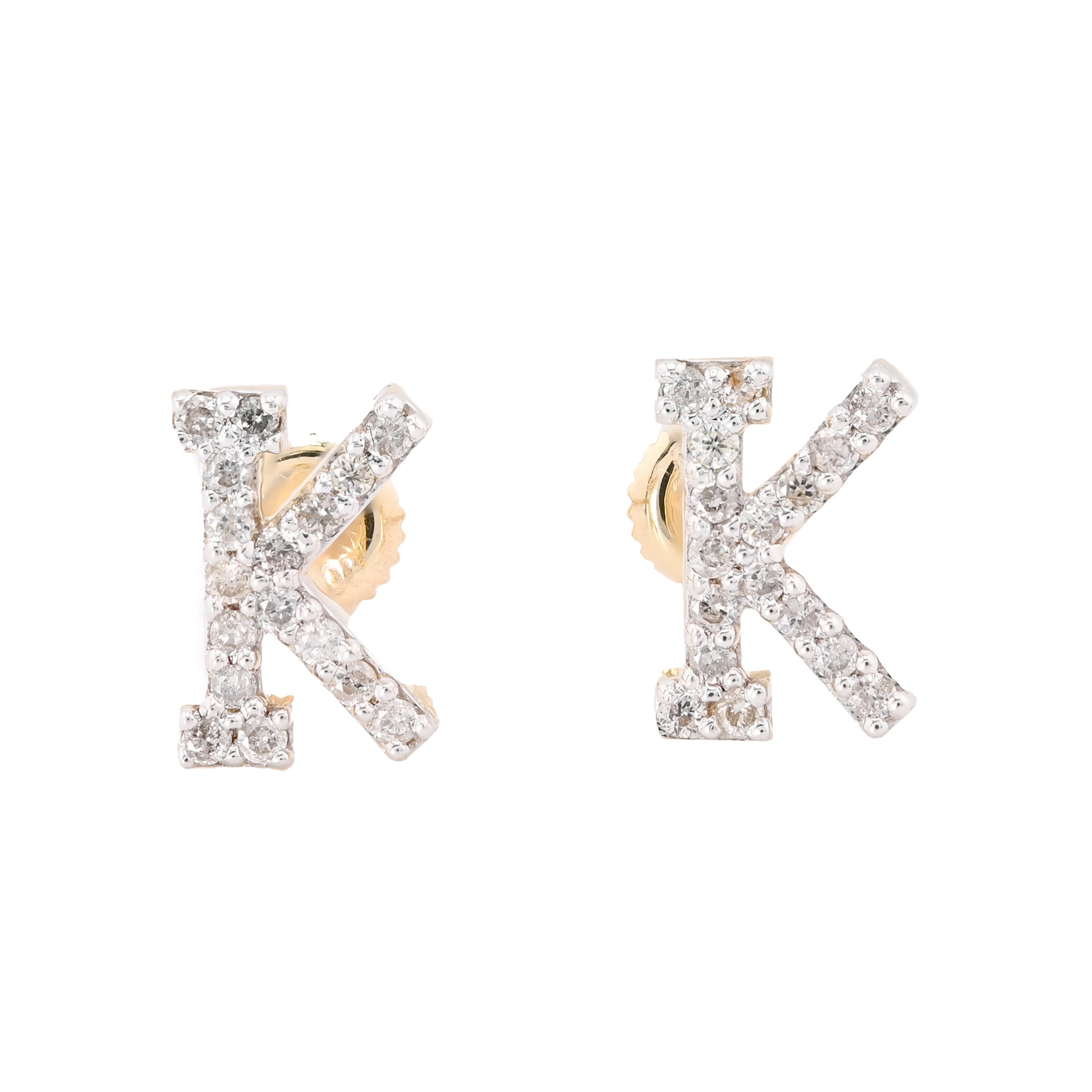 These personalized stud earrings in 10k yellow gold celebrate individuality with the letter "K" adorned by 0.28 carats of natural diamonds. Each earring weighs 1.12 grams, providing balanced presence with refined proportions perfect for daily elegance. The diamond accents sparkle against warm yellow gold, creating a sophisticated monogram effect that speaks to personal identity. Ideal for those seeking meaningful jewelry that combines initial personalization with timeless luxury, these studs transition effortlessly from professional settings to special occasions. A distinguished gift choice for someone whose name begins with K, or a self-indulgent addition to a curated jewelry collection that celebrates both style and sentiment.