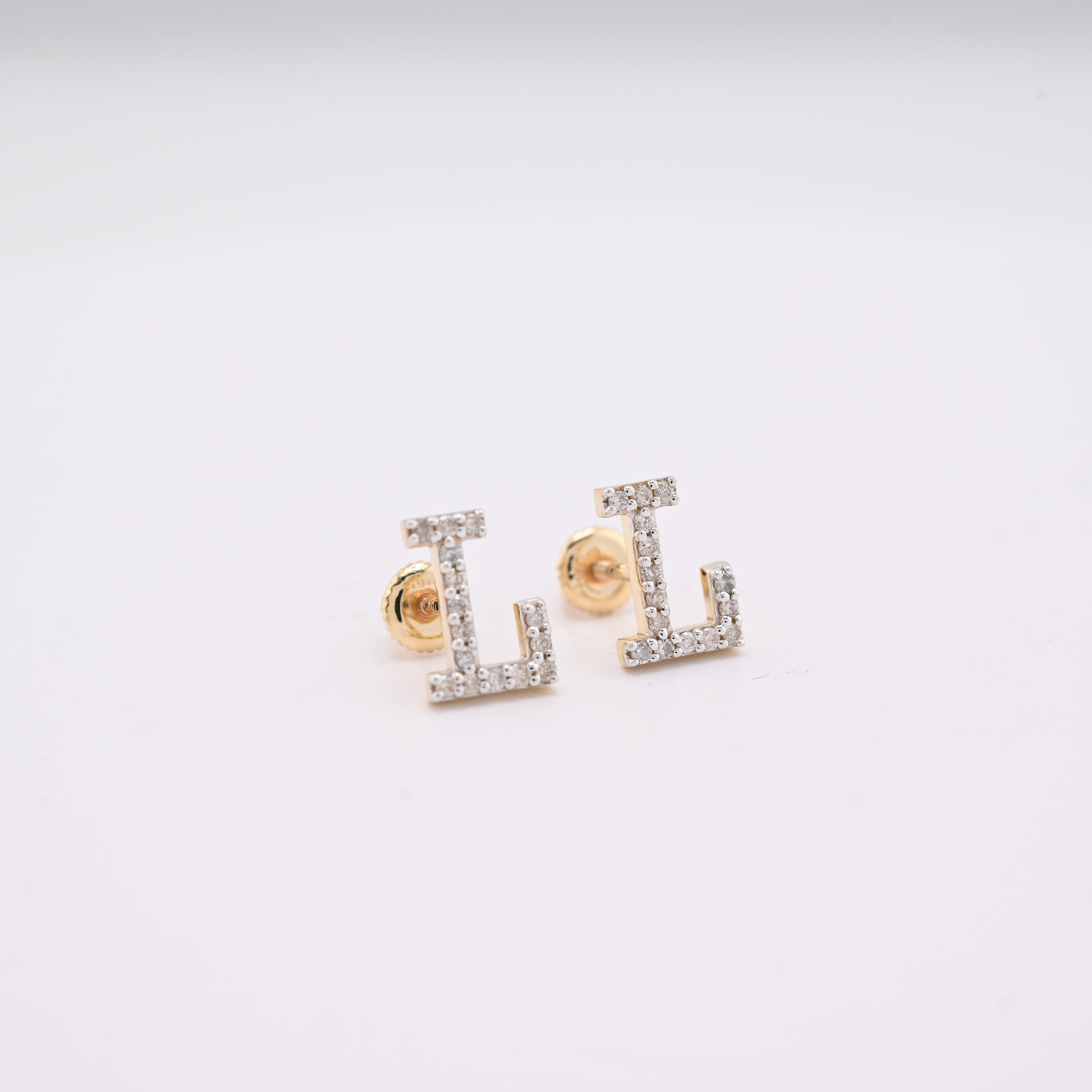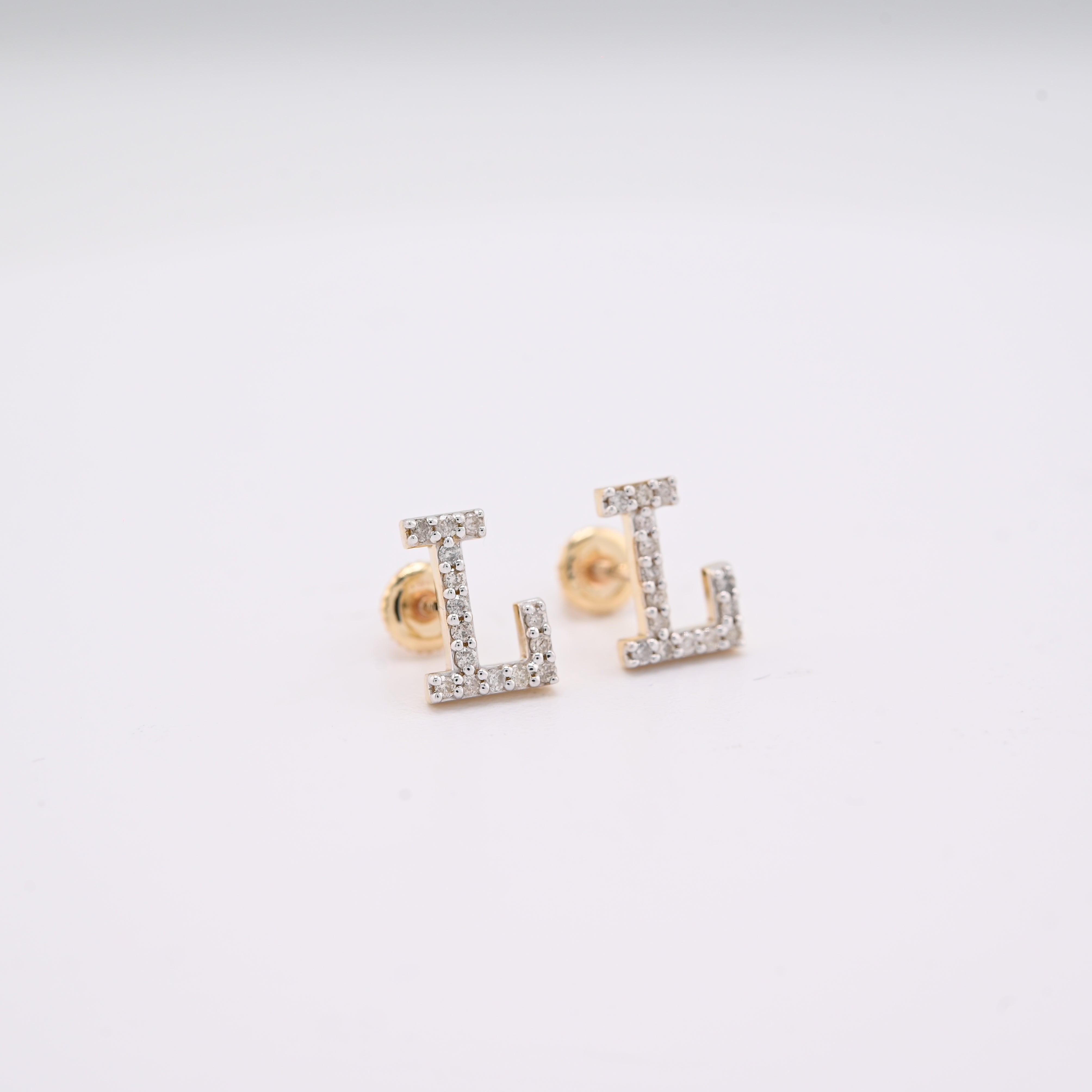 These refined initial studs in 10k yellow gold feature the letter "L" embellished with 0.26 carats of natural diamonds, offering a personalized touch of luxury. At 1.12 grams per earring, they deliver substantial elegance while maintaining comfortable wearability for all-day sophistication. The sparkling diamonds frame the initial beautifully against warm yellow gold, creating a monogrammed effect that celebrates individual identity. Perfect for those whose name begins with L, these studs seamlessly complement both contemporary and classic aesthetics. Whether worn as a meaningful self-purchase or a thoughtful gift, they represent an investment in timeless personalized jewelry that transcends fleeting trends while maintaining enduring appeal.