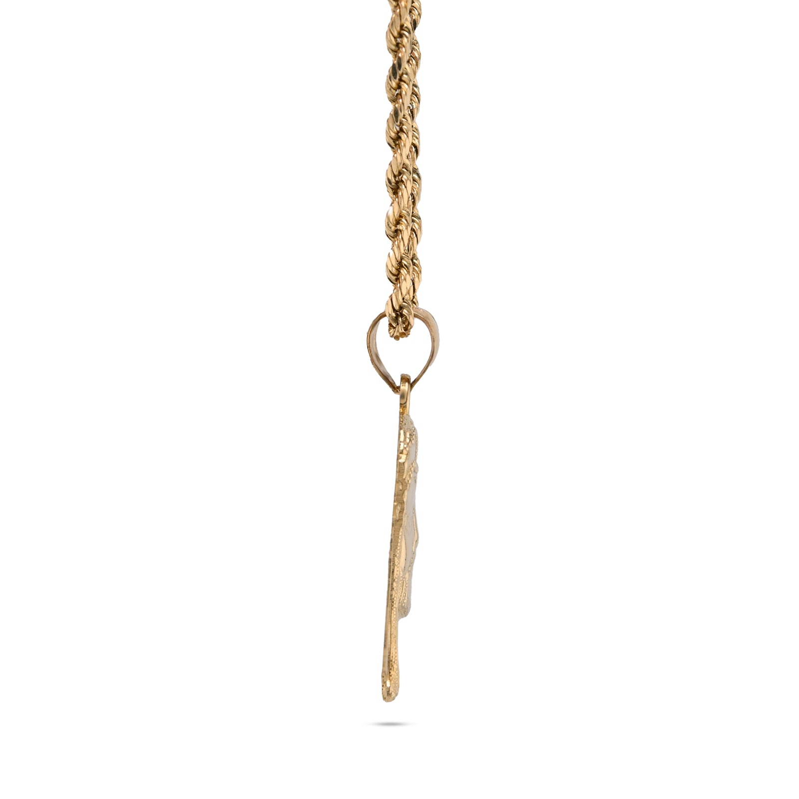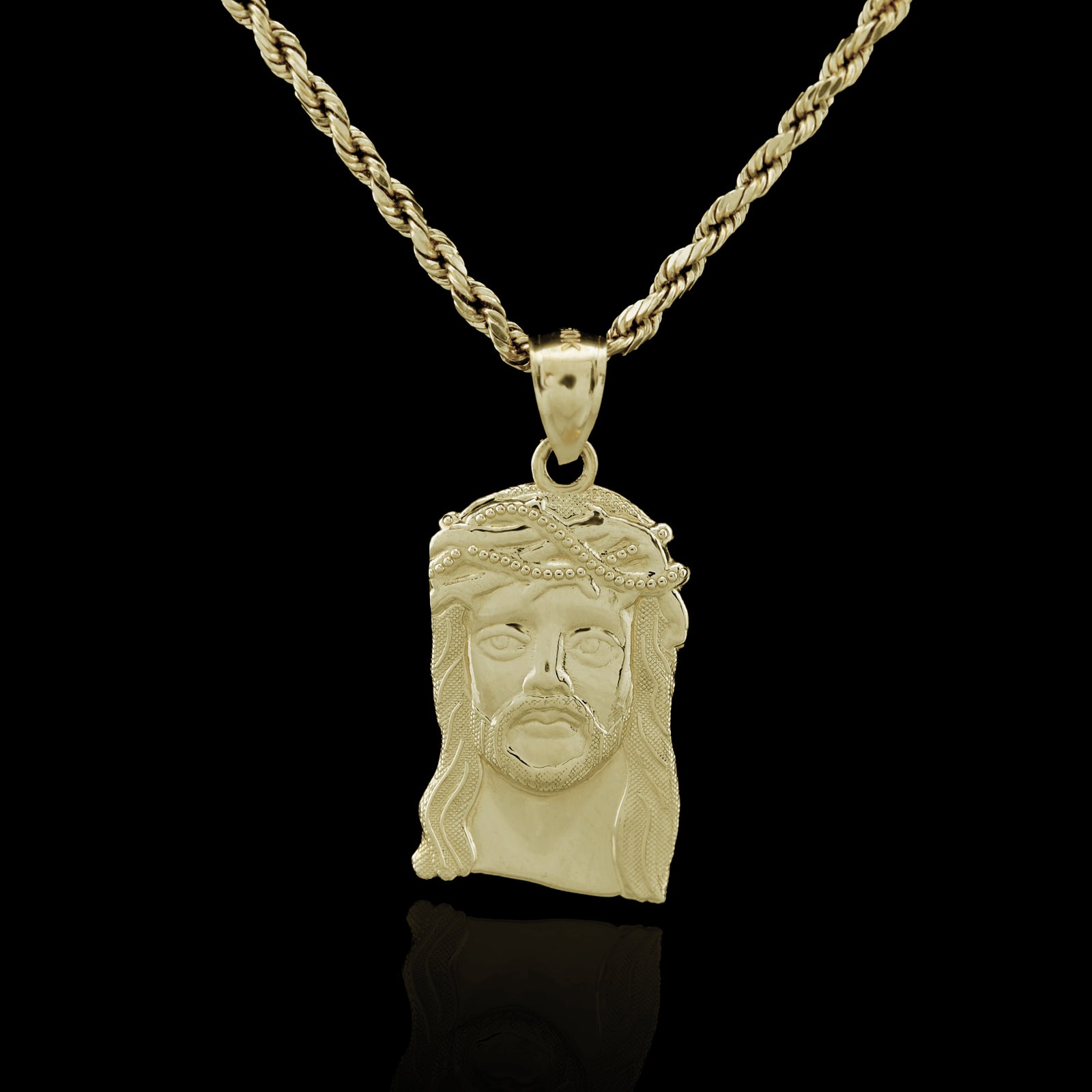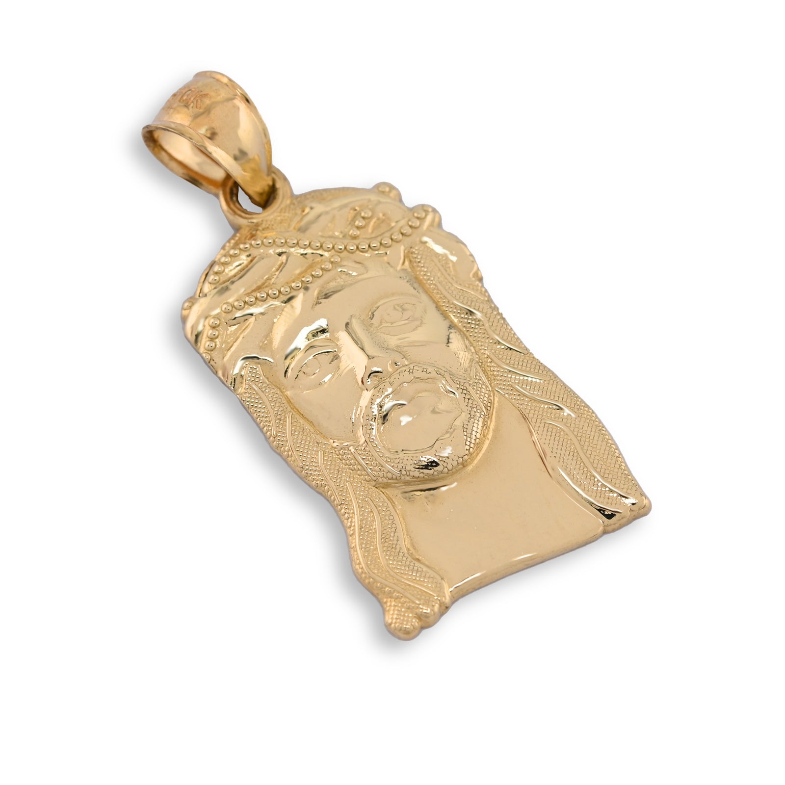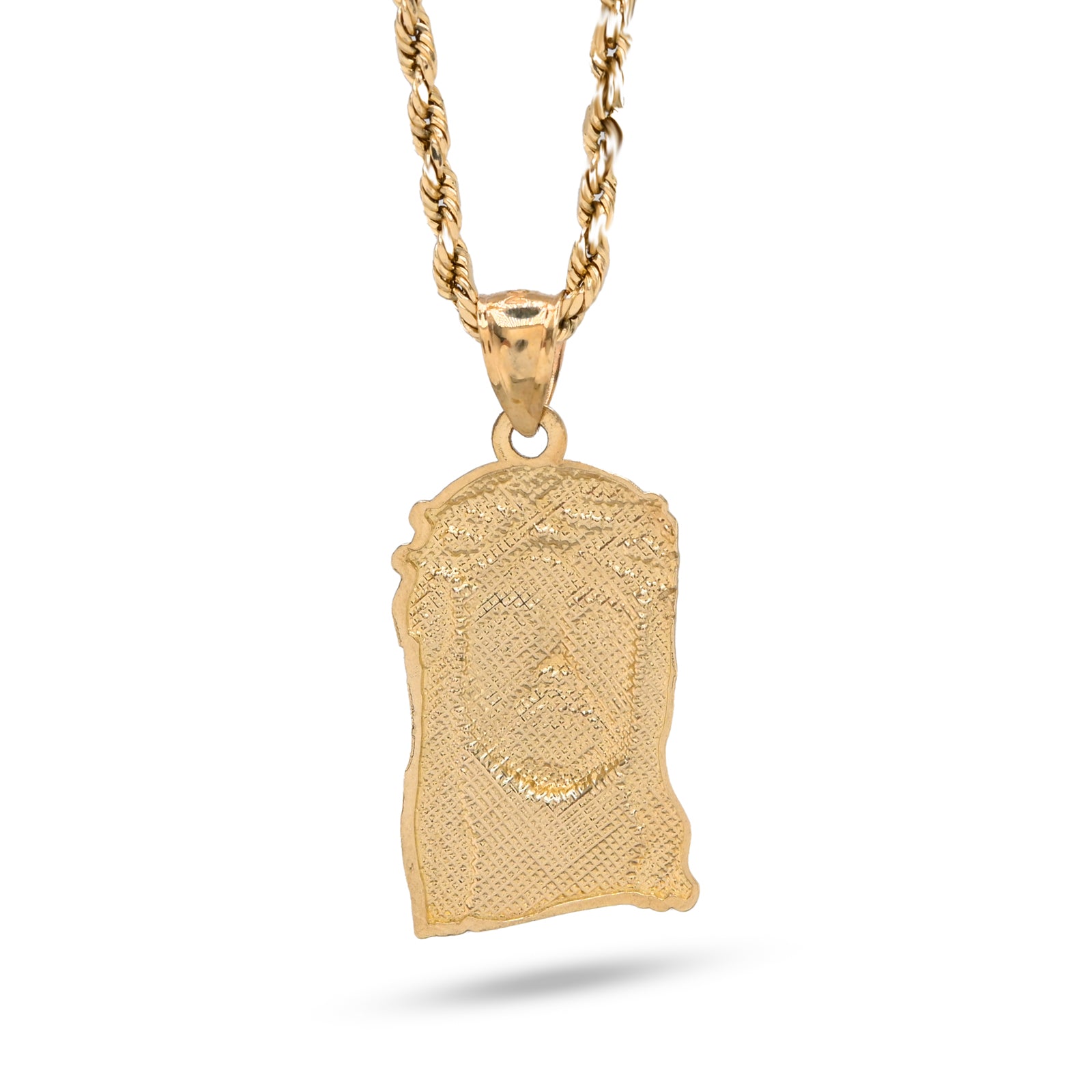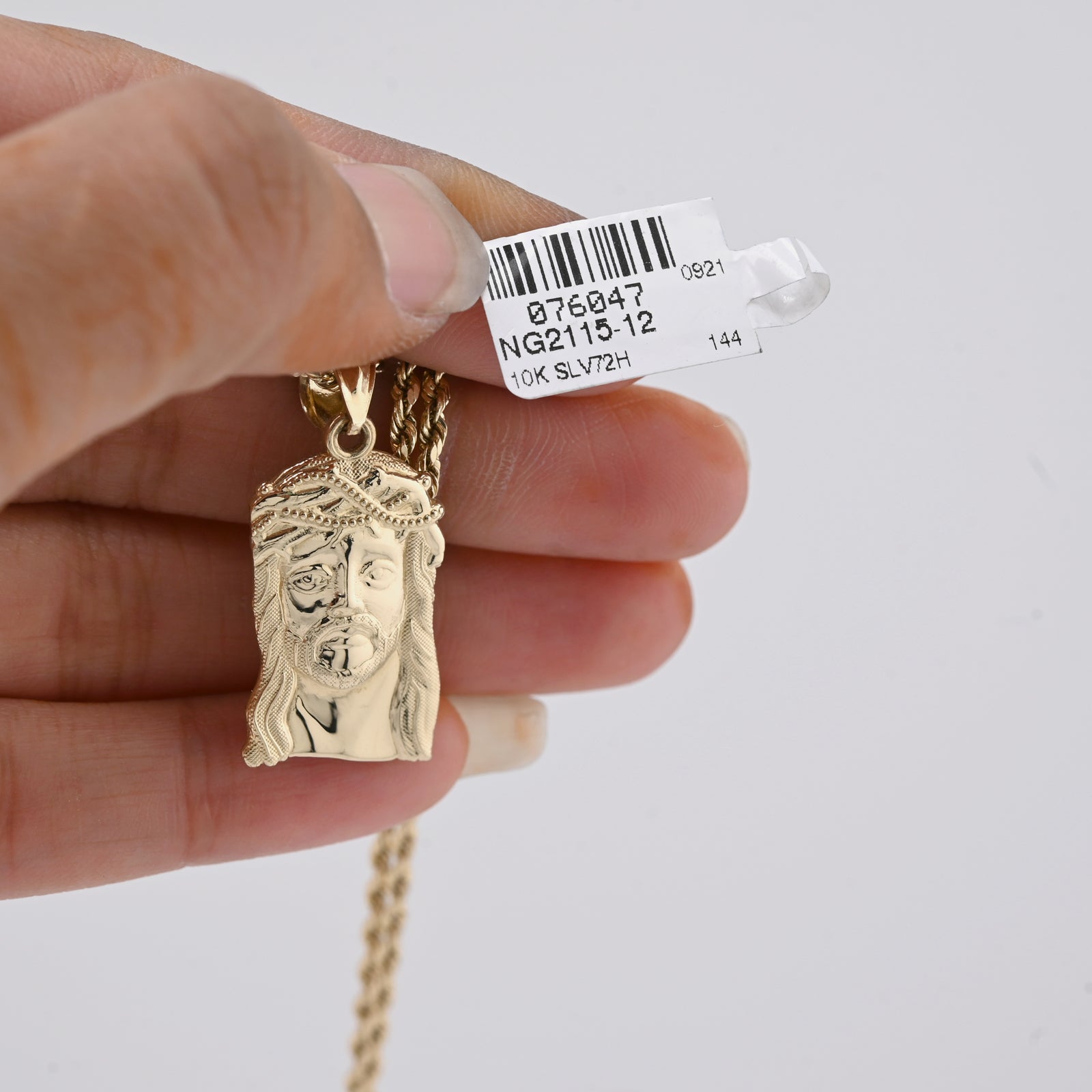 This distinguished 10k yellow gold Jesus pendant combines spiritual significance with refined craftsmanship. The textured surface catches light beautifully, adding depth and character to this meaningful religious charm. Weighing a substantial 2.1 grams, it offers presence without excess weight, making it ideal for daily wear or layered styling. Perfect for men seeking to express their faith through elegant, understated jewelry. A timeless piece that transcends trends while maintaining its devotional purpose.