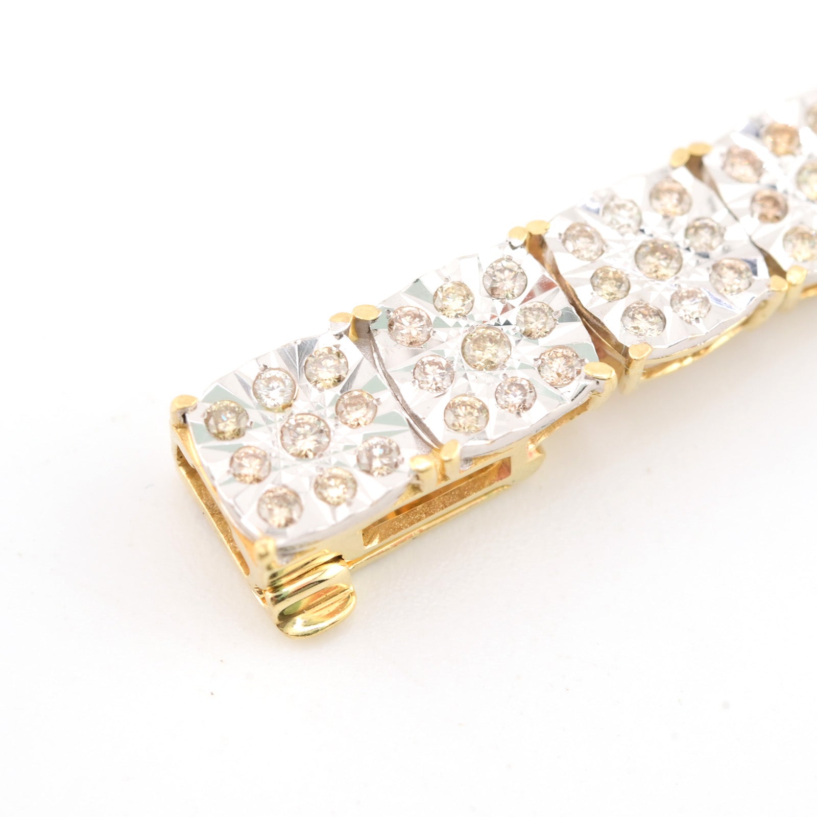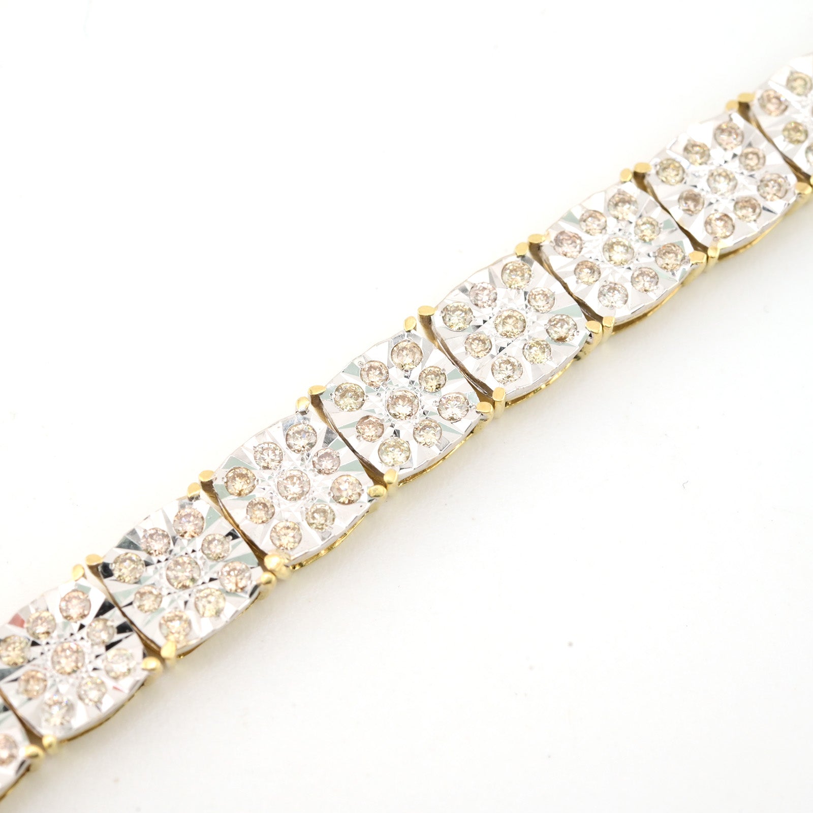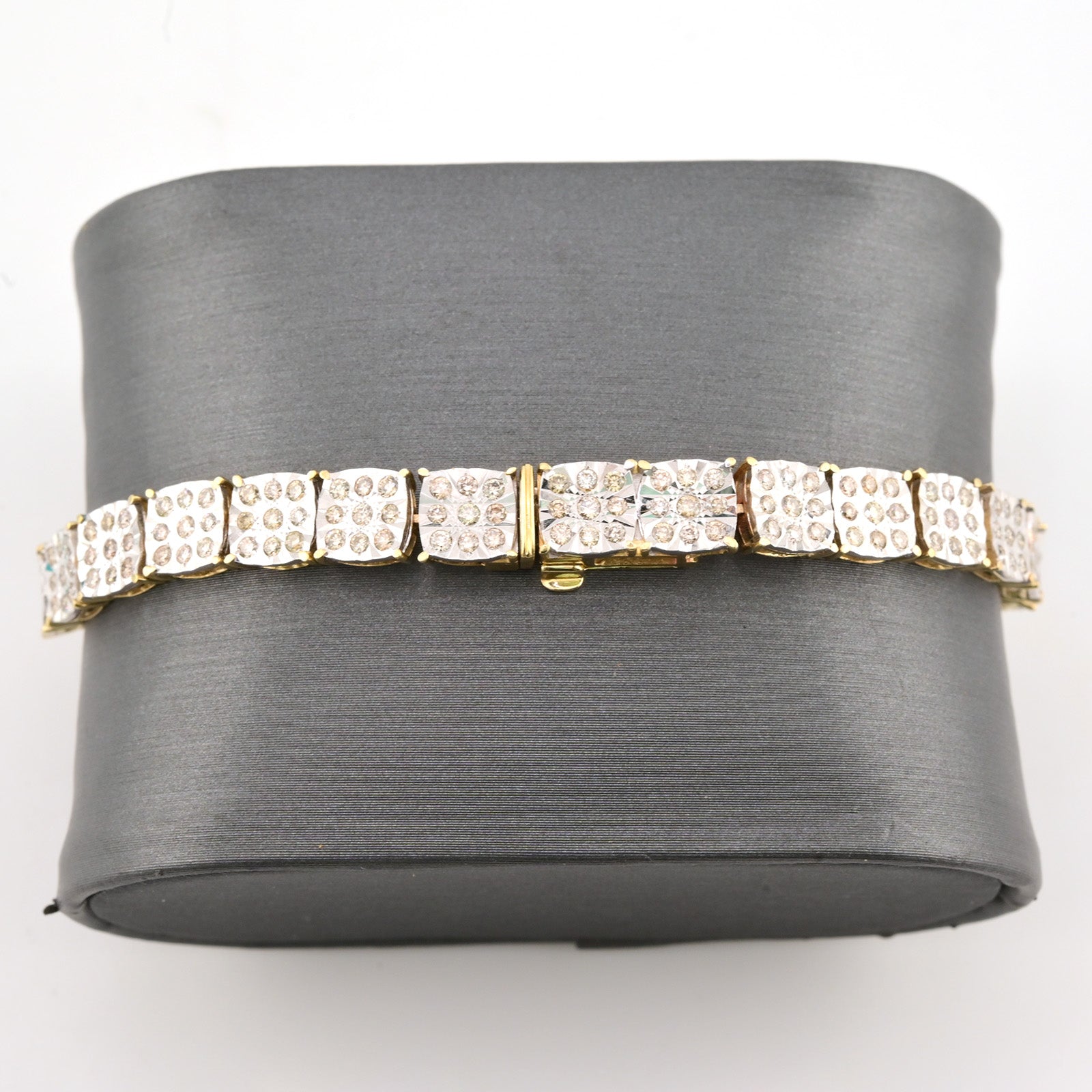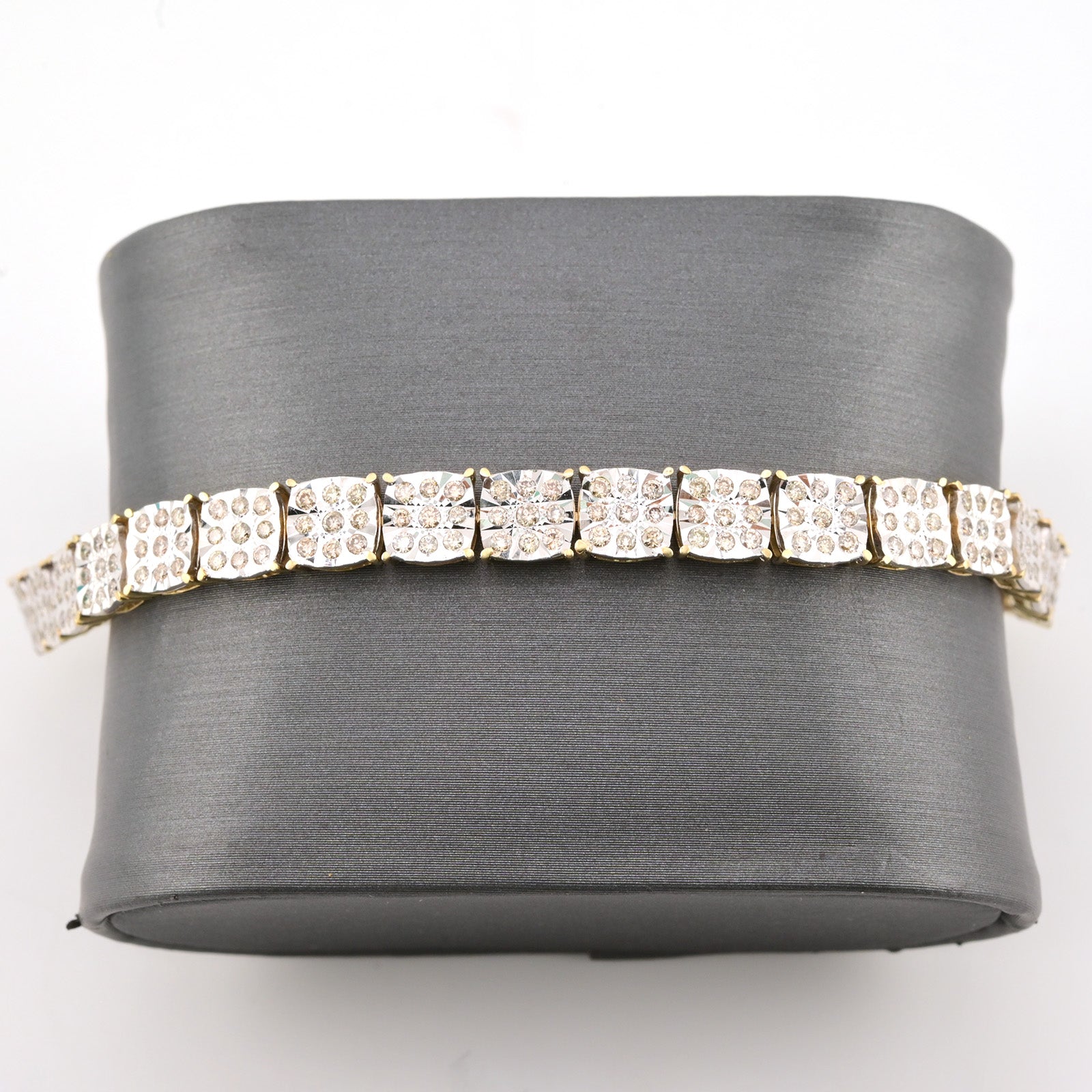 Elevate your jewelry collection with this exquisite 10k yellow gold tennis bracelet, featuring 4 carats of sparkling diamonds arranged in an elegant square Fanouk design. Weighing 13.2 grams and sized at 8 inches, this refined piece delivers ra