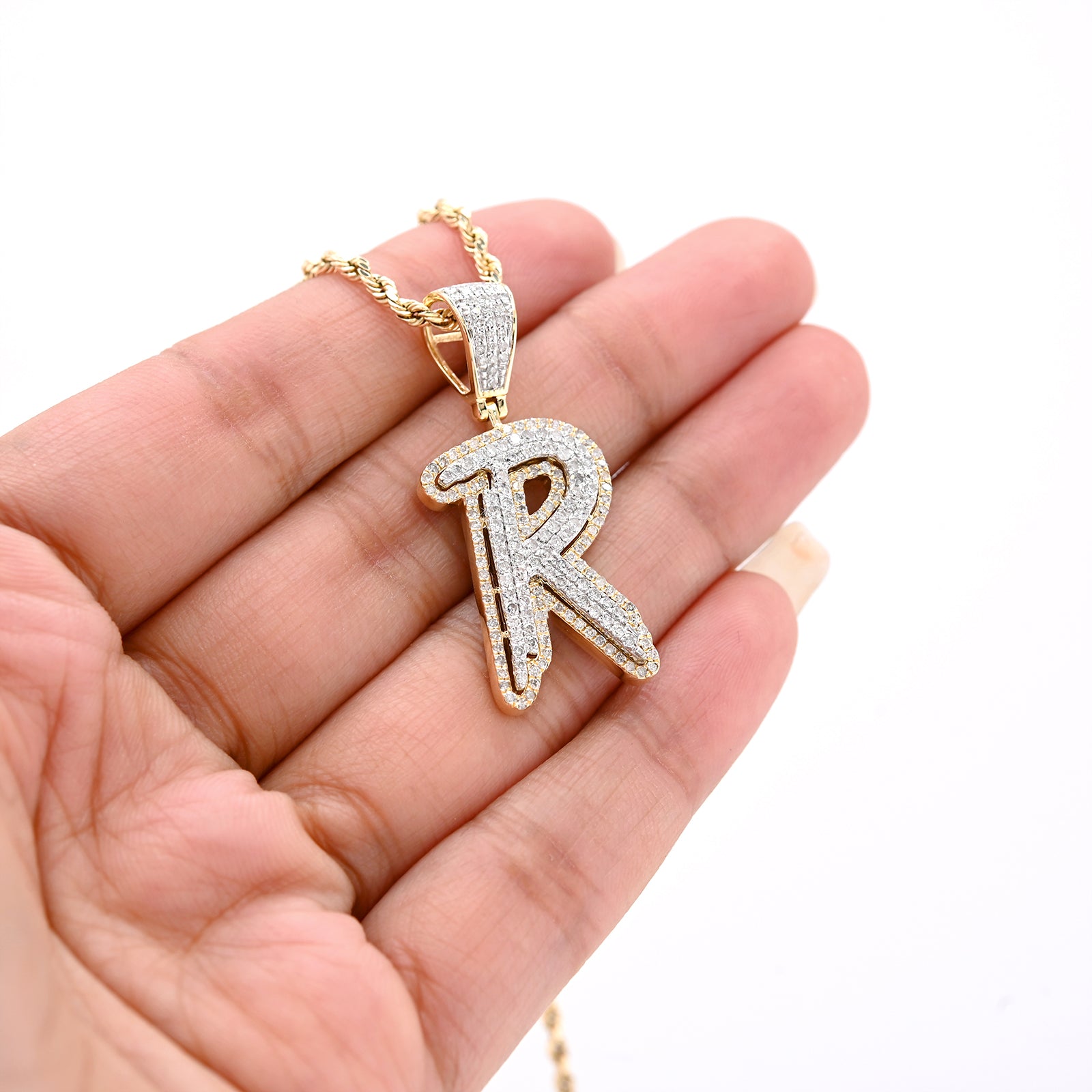 Elevate your jewelry collection with this refined initial pendant, crafted in a harmonious blend of 10k yellow and white gold. Featuring a full carat of natural diamonds, this "R" charm delivers timeless elegance with a modern aesthetic. Weighing just 4.7 grams, it strikes the perfect balance between presence and wearability, making it an ideal addition to any necklace or charm bracelet. A sophisticated choice for personal expression or a meaningful gift.