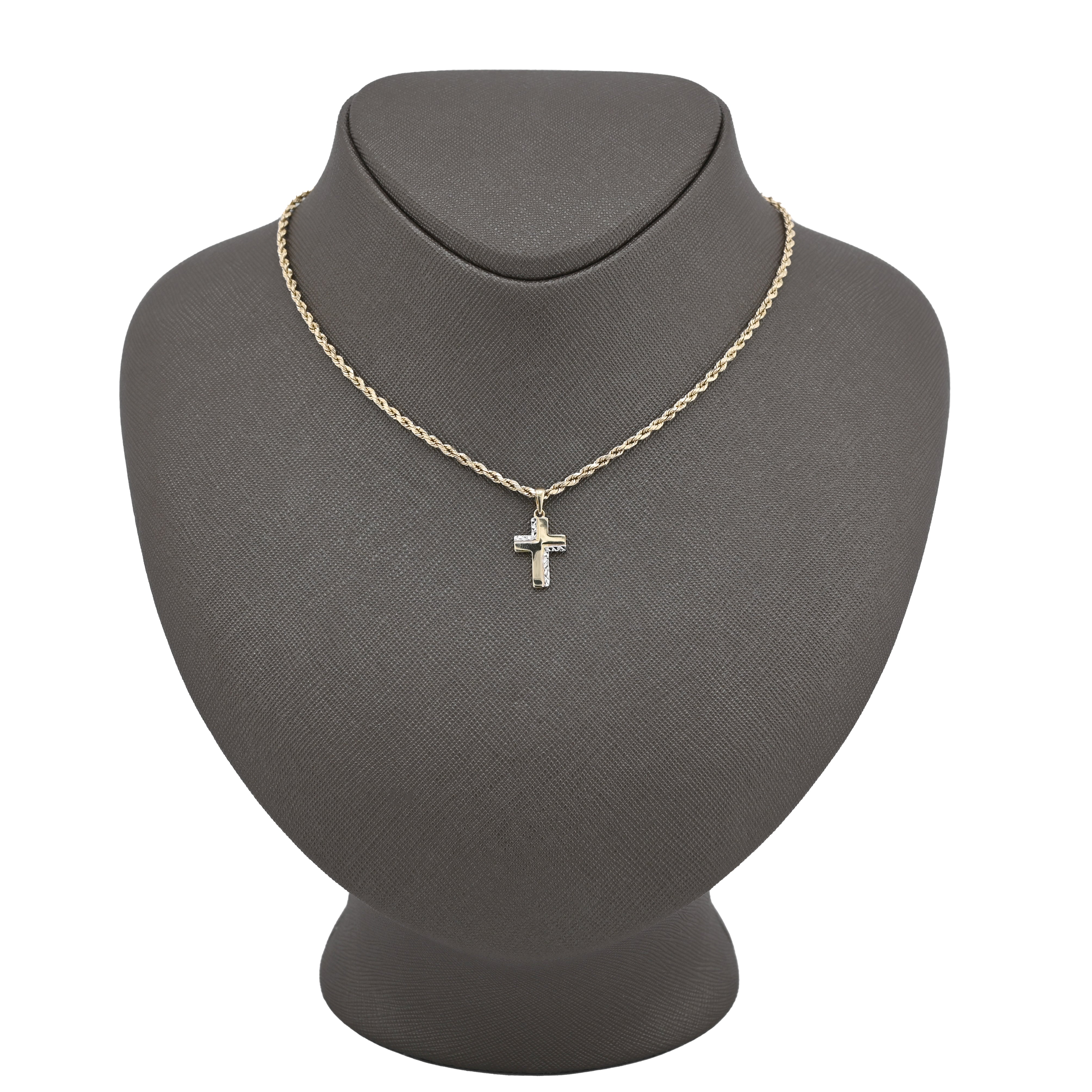 This elegant cross pendant combines the timeless appeal of yellow and white gold in a refined 10k gold composition. Weighing just 0.7 grams, it offers a delicate yet meaningful piece suitable for both men and women. The religious symbolism makes it an ideal gift for faith-based occasions or personal spiritual expression. Its versatile design complements various styles and can be worn daily or reserved for special moments. A sophisticated addition to any jewelry collection that speaks to both aesthetic refinement and personal conviction.