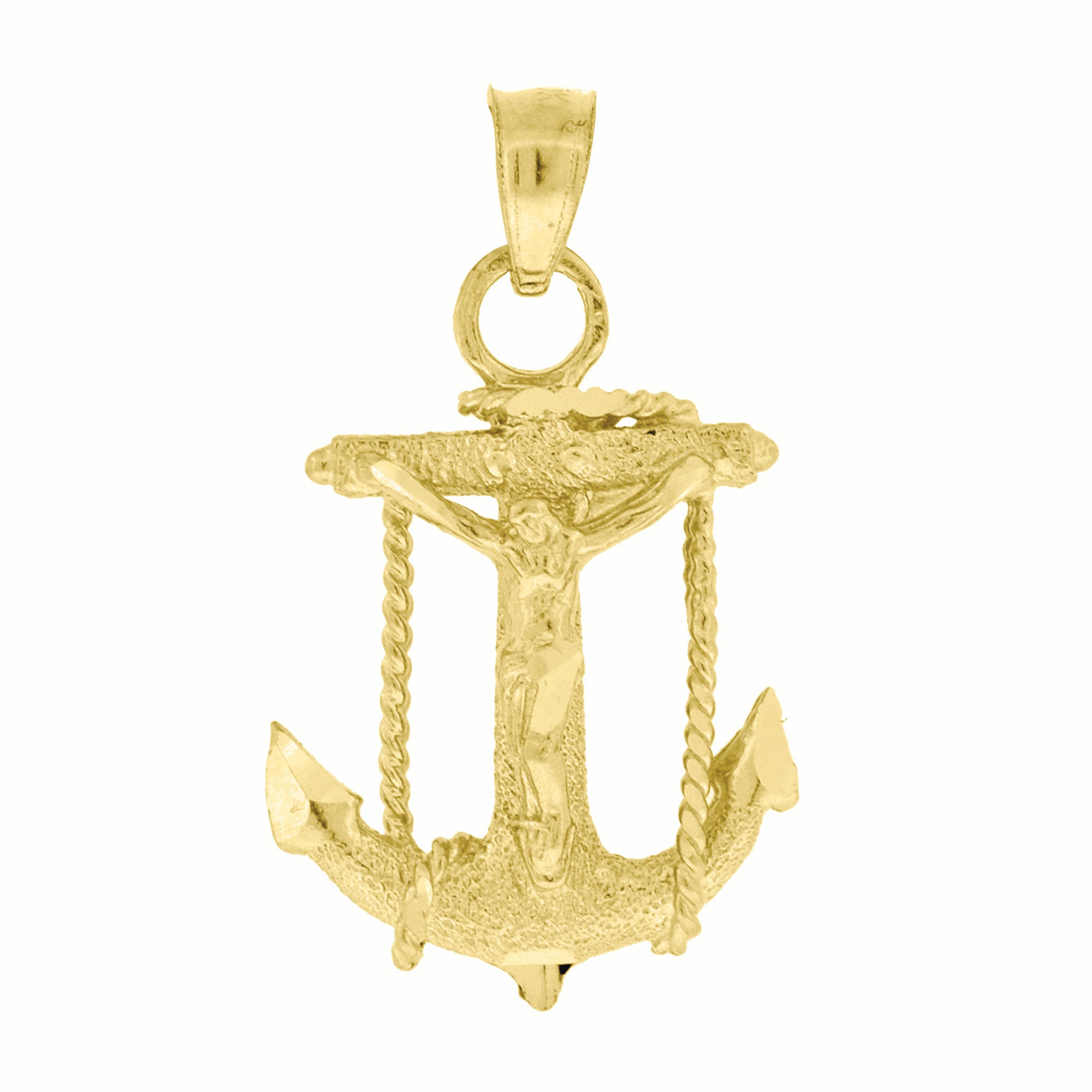 Discover elegance and faith beautifully intertwined in the 10kt Gold Diamond-Cut Textured Unisex Anchor Cross Crucifix Religious Charm Pendant by SB Jewelers. Crafted for those with an appreciation for fine jewelry, this exquisite piece captures the essence of both style and spirituality.