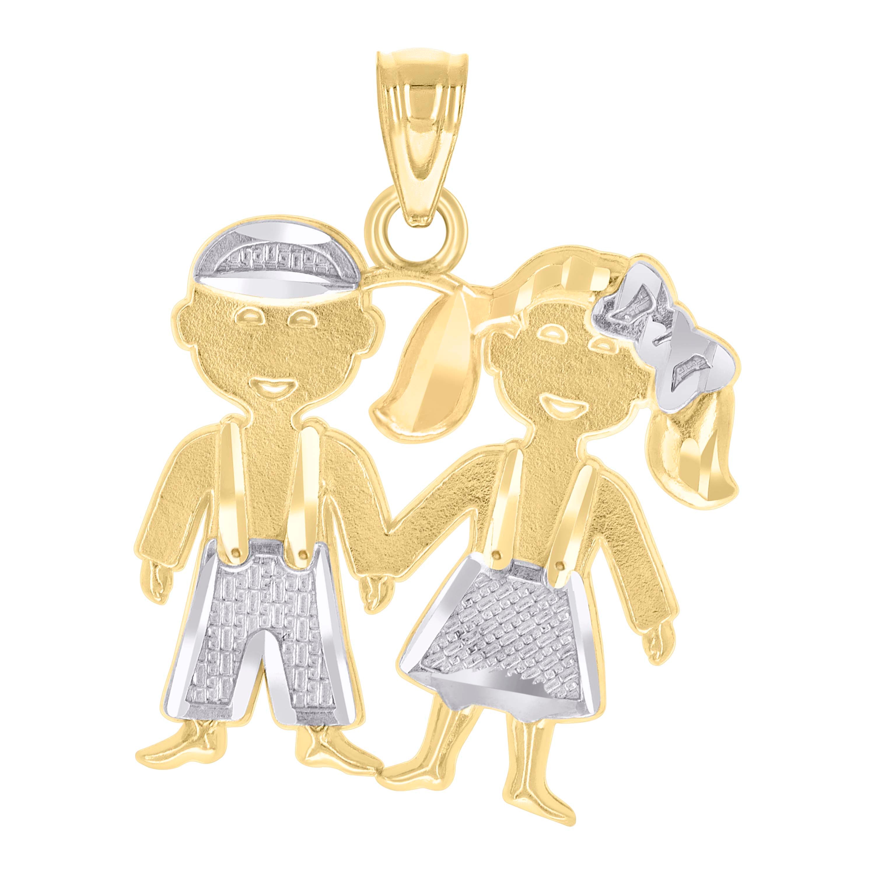 Celebrate new arrivals with this delicate 10kt gold charm pendant, expertly crafted in a striking two-tone design. Featuring distinct boy and girl motifs, this versatile piece works beautifully as a standalone pendant or adds sentimental charm to a bracelet. The combination of white and yellow gold creates sophisticated contrast while the lightweight construction ensures comfortable everyday wear. Perfect for parents, godparents, or anyone marking a special milestone, this timeless charm captures the joy of welcoming a baby.